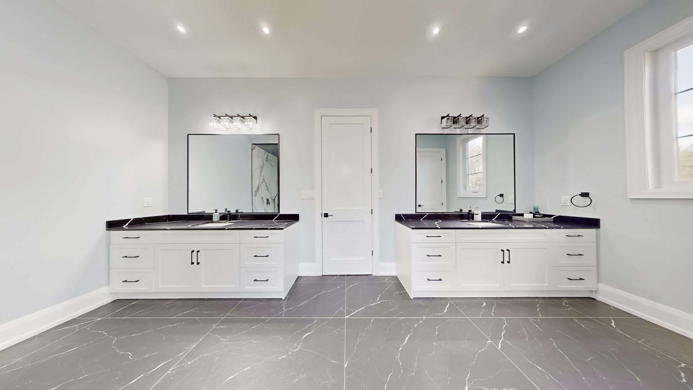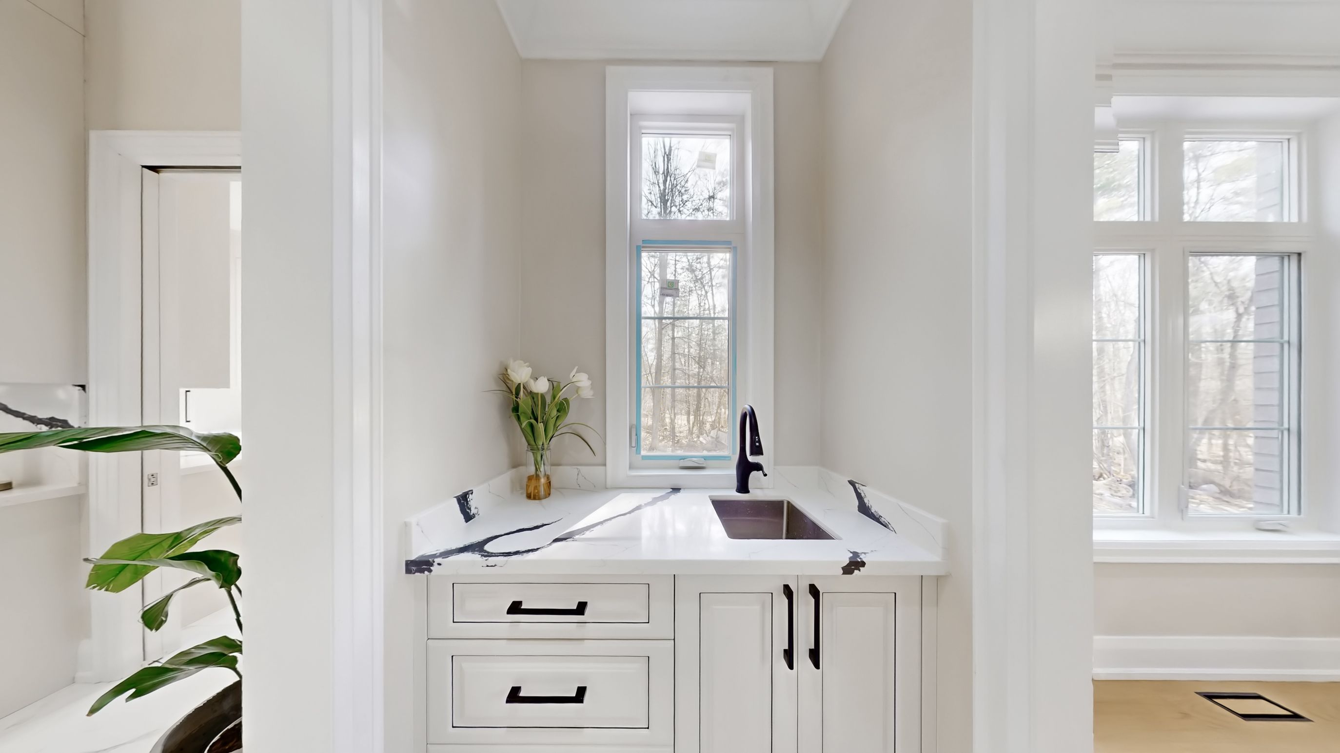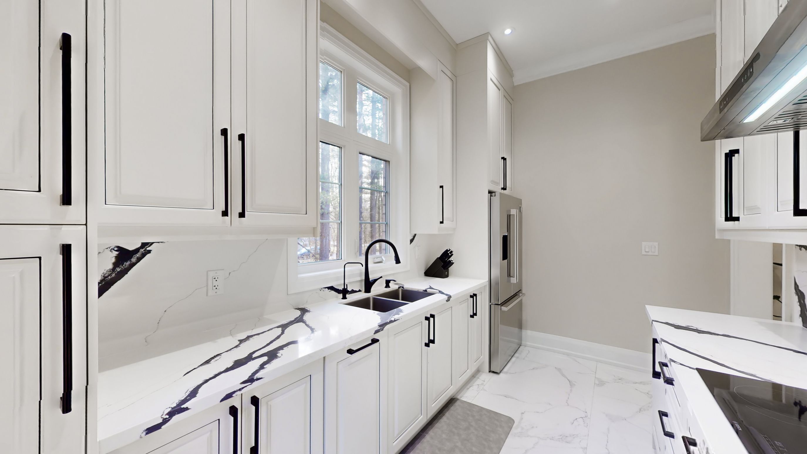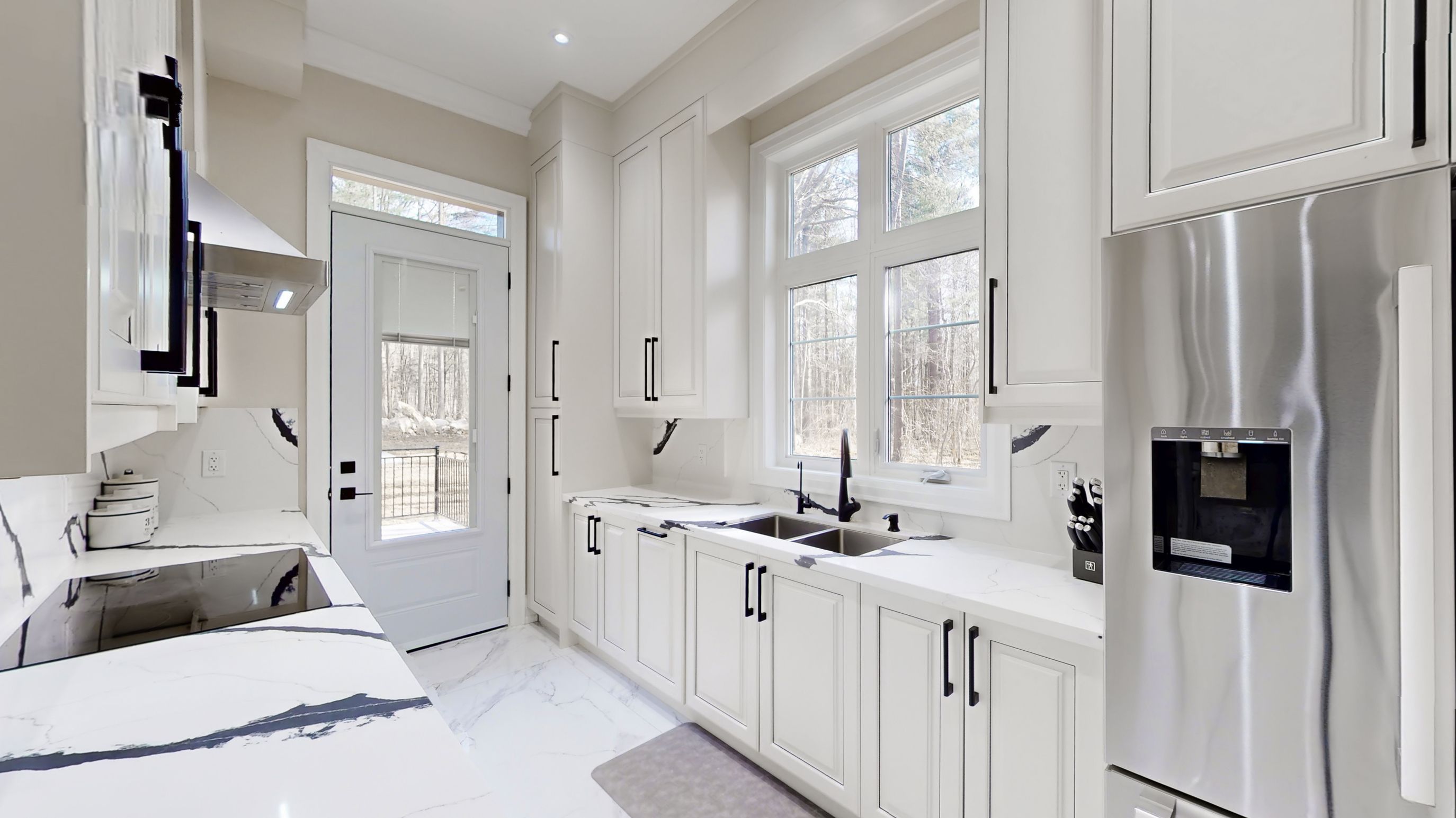 • Chef's kitchen equipped with double wall ovens and a full spice kitchen.