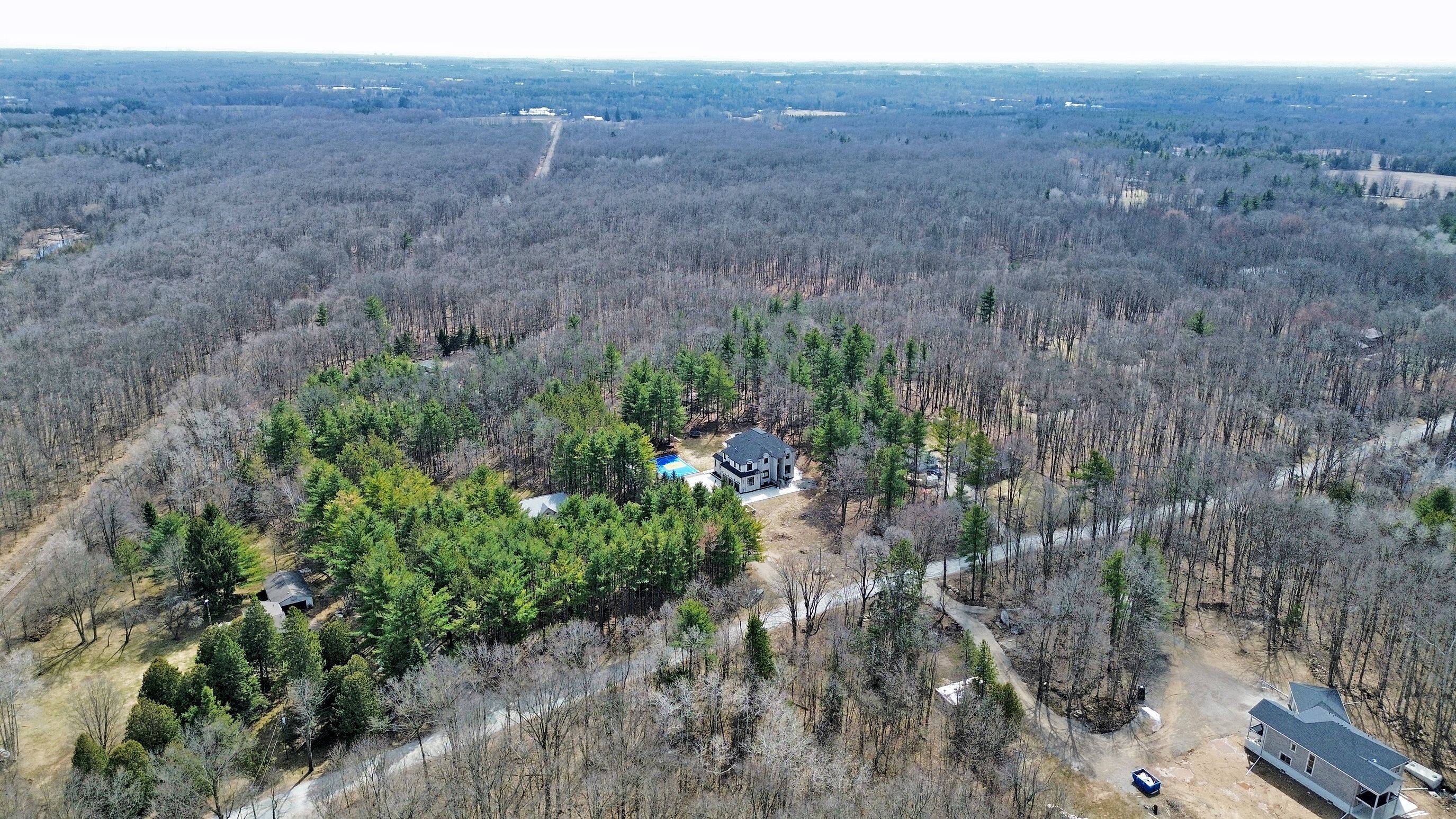 Stunning newly built custom estate on 4+ acres in milton's rural corridor! 5,103 sq. Ft. Above grade, finished walk-out basement - over 7,600 sq. Ft. Of total luxury living. Grand double-height foyer with marble porcelain tile and curved staircase with wrought-iron spindles. Formal living with soaring open-to-above ceilings. Dining room with coffered ceiling, wainscoting and crystal chandelier. Great room with coffered ceilings, marble feature wall, gold sconces and stunning forest views. Chef's kitchen: full-height cabinetry, quartz waterfall island seating five, double wall ovens, built-in fridge and coffee maker. Full spice kitchen with cabinetry, quartz counters, double sink, fridge and range hood - ideal for entertaining! Main floor guest bed for in-laws. Primary suite with tray ceiling, french doors to a private balcony, custom walk-in closet and spa ensuite with dual vanities, soaker tub, heated towel bar and glass shower with gold marble surround. Three additional beds with tray ceilings, hardwood floors and private ensuites. Upper laundry with full cabinetry. Finished w/o basement: home theatre, gym, games area, rec room, guest bed, full marble bath, cold room and private walk-out entrance. Backyard paradise: covered rear deck, concrete fire pit patio with stone surround, full-size outdoor basketball and sports court with custom logo, children's treehouse and play structure in the forest, trampoline area and sprawling lawn - all surrounded by mature trees with complete privacy and no rear neighbors. Drone photos reveal the remarkable scale of this private compound, minutes from milton amenities. 5+1 bed, 6+ bath, triple garage, 5,103 sq. Ft. Mpac | spice kitchen, w/o basement, 4. 2-acre lot, marble & hardwood floors, designer ensuites, home theatre, gym, basketball court, fire pit, existing well, future elevator. Main and second floor laundry. Pot lights in side and out side the house.