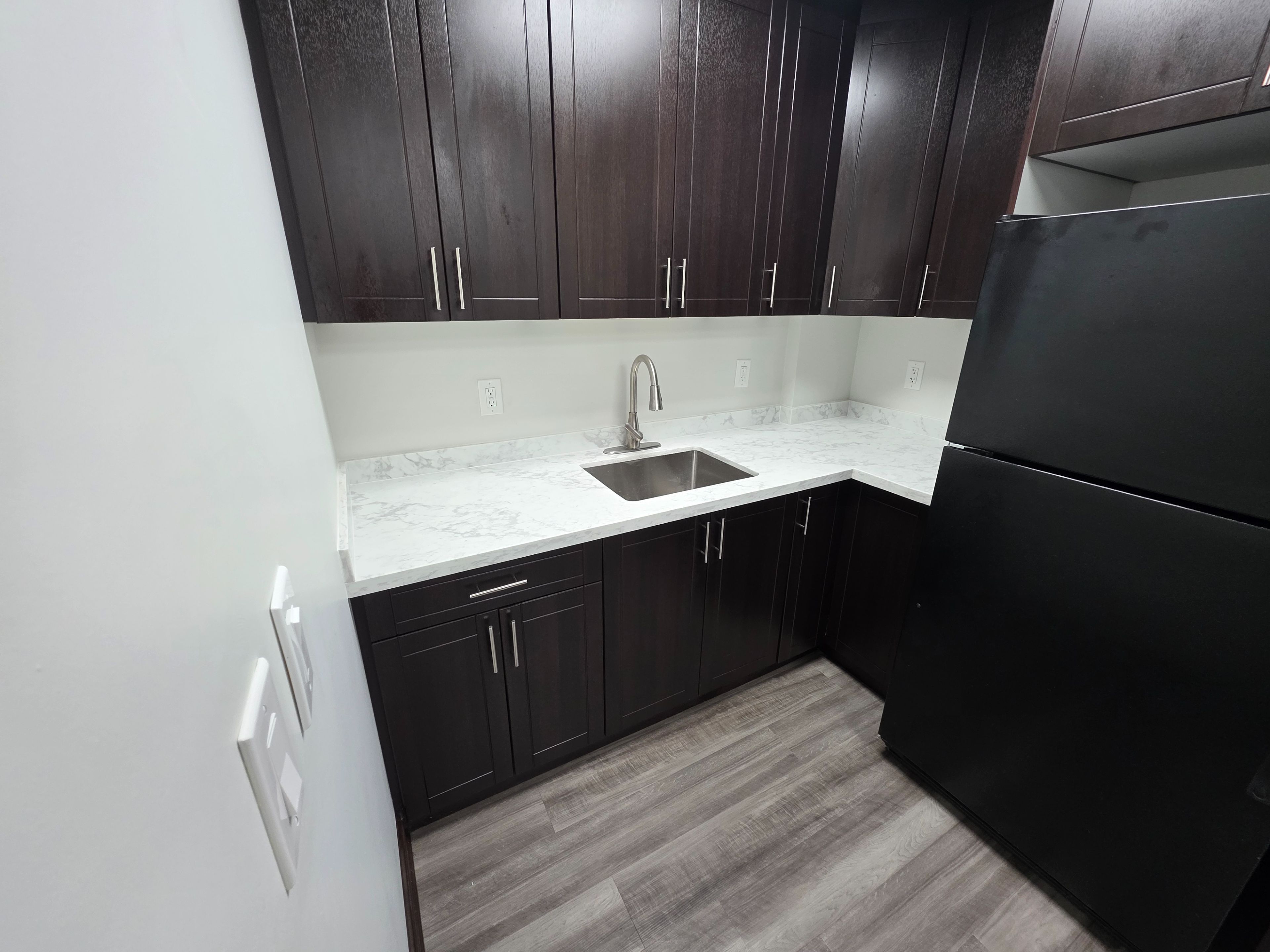 • Convenient amenities include a fully equipped kitchen and separate washrooms.