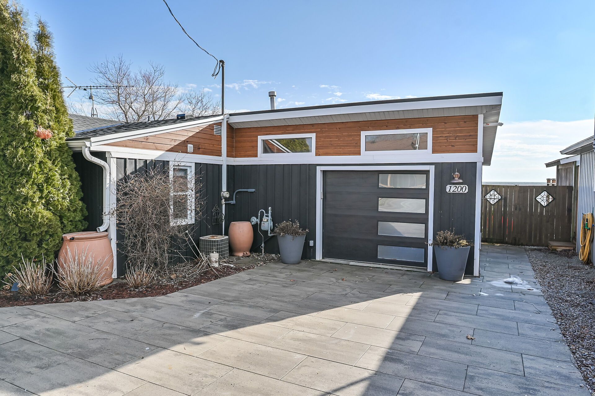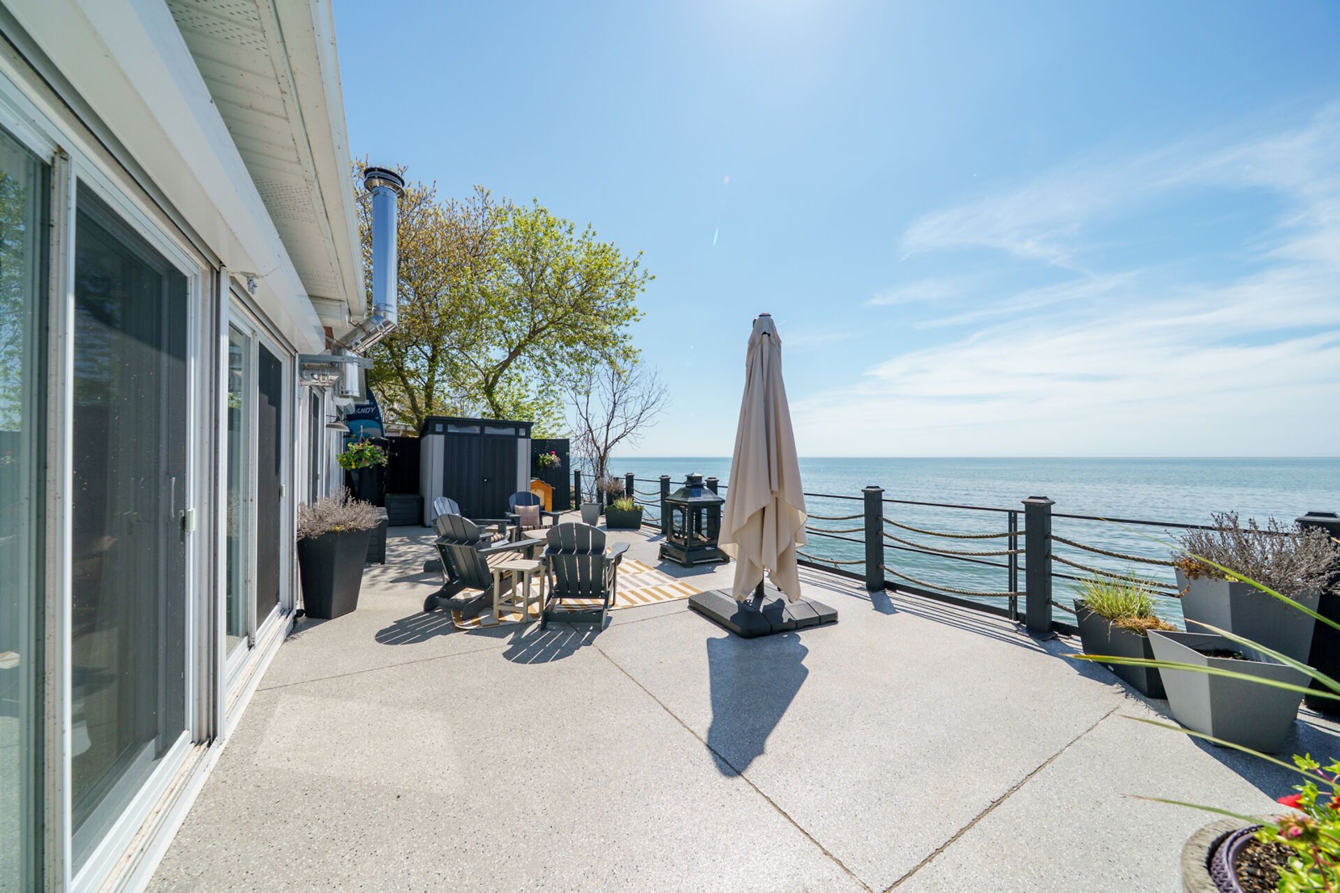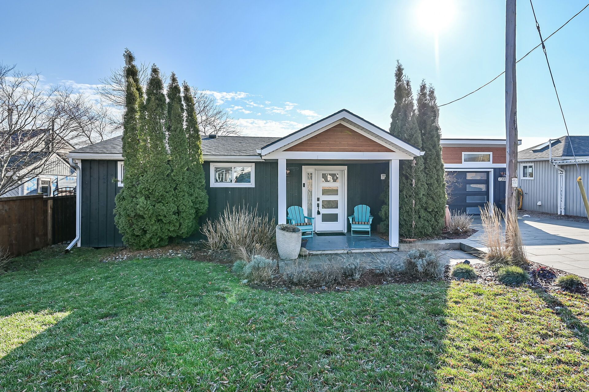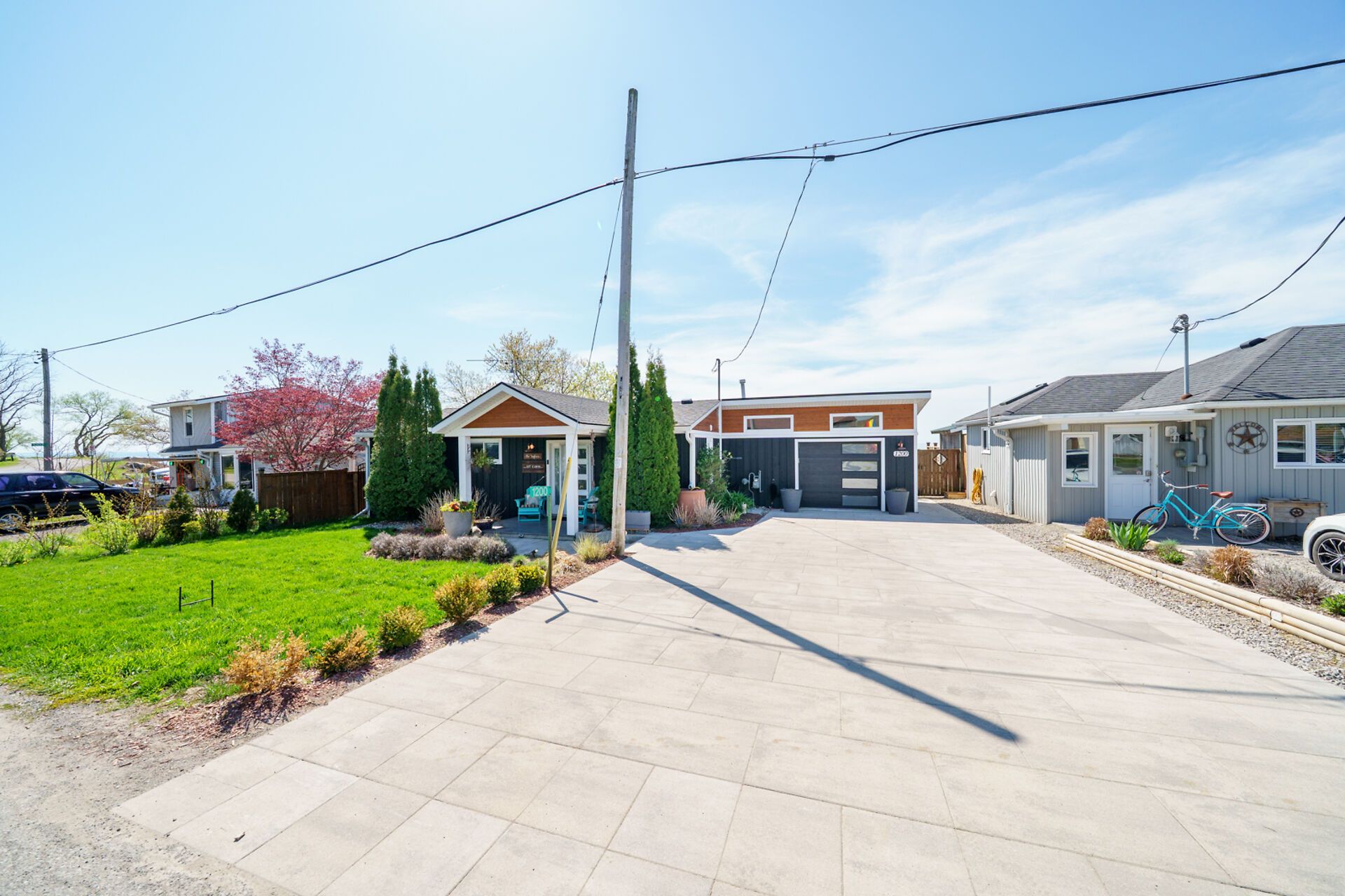 Truly irreplaceable, exquisitely presented waterfront "lake house" on the sought after south shore of lake erie offering a masterfully planned, beautifully renovated 3 bedroom+1 bathroom bungalow with attention to detail evident throughout. Rarely do properties capture & embrace the true feel of lakefront living! Incredible curb appeal with extensive concrete paver stone driveway & walkways. Backyard oasis complete with stone effect concrete patio, pergola with decked entertaining area, solid breakwall, lakeside shed, & private stair access to sand bottom beach. The gorgeous interior layout emphasizes the stunning waterview's, five sets of sliders, custom kitchen, bright dining area (fits 10+), vaulted great room with both corner gas fireplace & woodstove, 3 large bedrooms, additional bedroom / den area, welcoming foyer, upgraded 3 pc bathroom, & desired mf laundry. Bonus attached garage/utility room ideal for workshop & storage with auto garage door. Experience waterfront living.