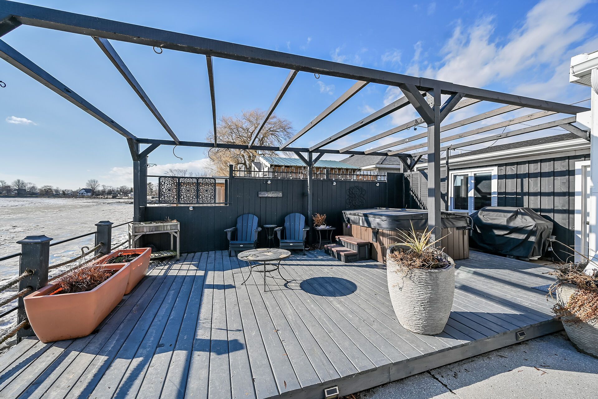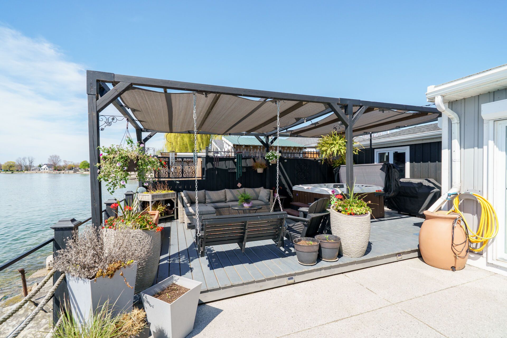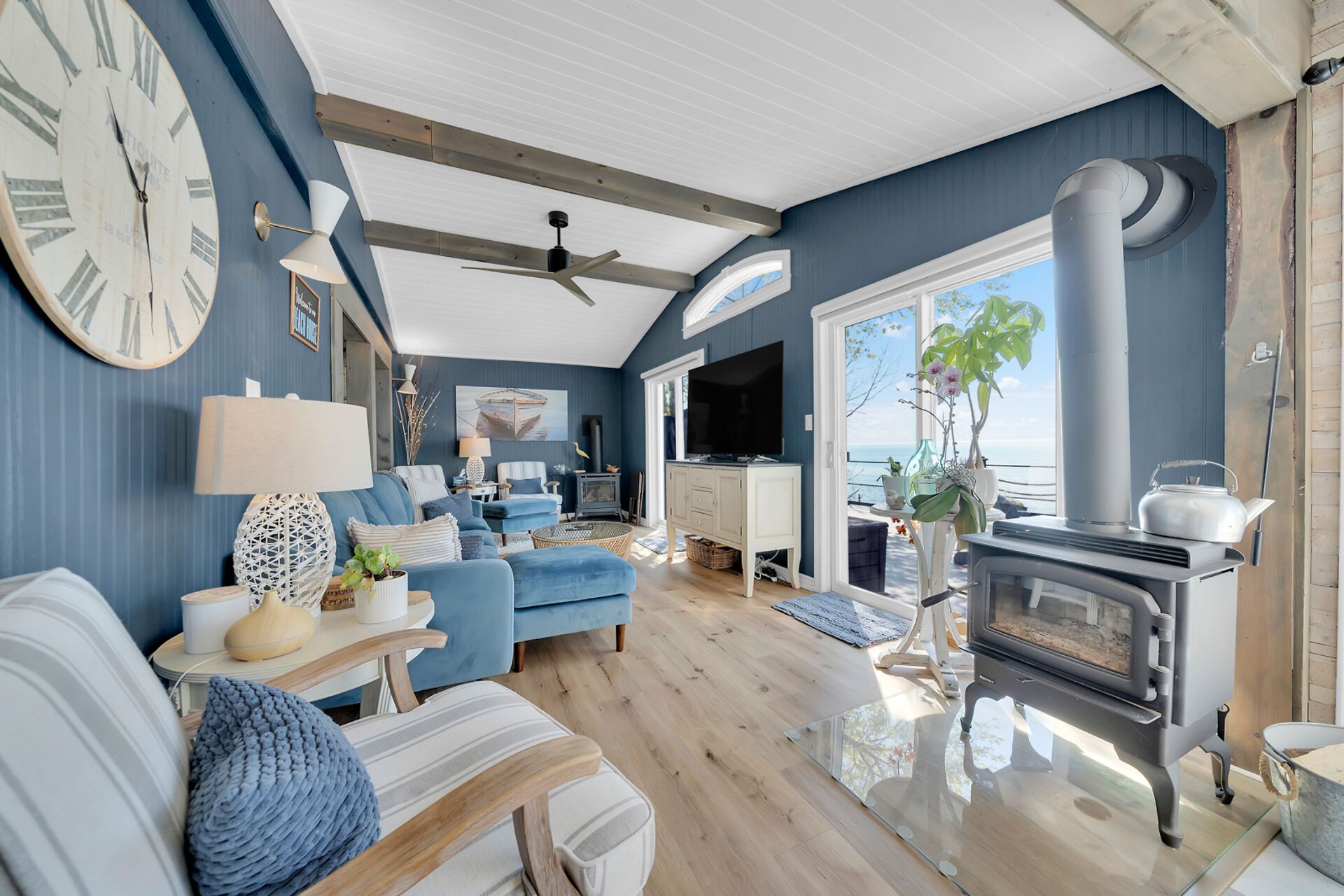 Truly irreplaceable, exquisitely presented waterfront "lake house" on the sought after south shore of lake erie offering a masterfully planned, beautifully renovated 3 bedroom+1 bathroom bungalow with attention to detail evident throughout. Rarely do properties capture & embrace the true feel of lakefront living! Incredible curb appeal with extensive concrete paver stone driveway & walkways. Backyard oasis complete with stone effect concrete patio, pergola with decked entertaining area, solid breakwall, lakeside shed, & private stair access to sand bottom beach. The gorgeous interior layout emphasizes the stunning waterview's, five sets of sliders, custom kitchen, bright dining area (fits 10+), vaulted great room with both corner gas fireplace & woodstove, 3 large bedrooms, additional bedroom / den area, welcoming foyer, upgraded 3 pc bathroom, & desired mf laundry. Bonus attached garage/utility room ideal for workshop & storage with auto garage door. Experience waterfront living.