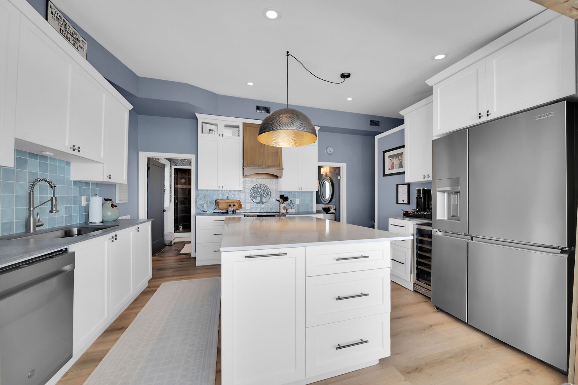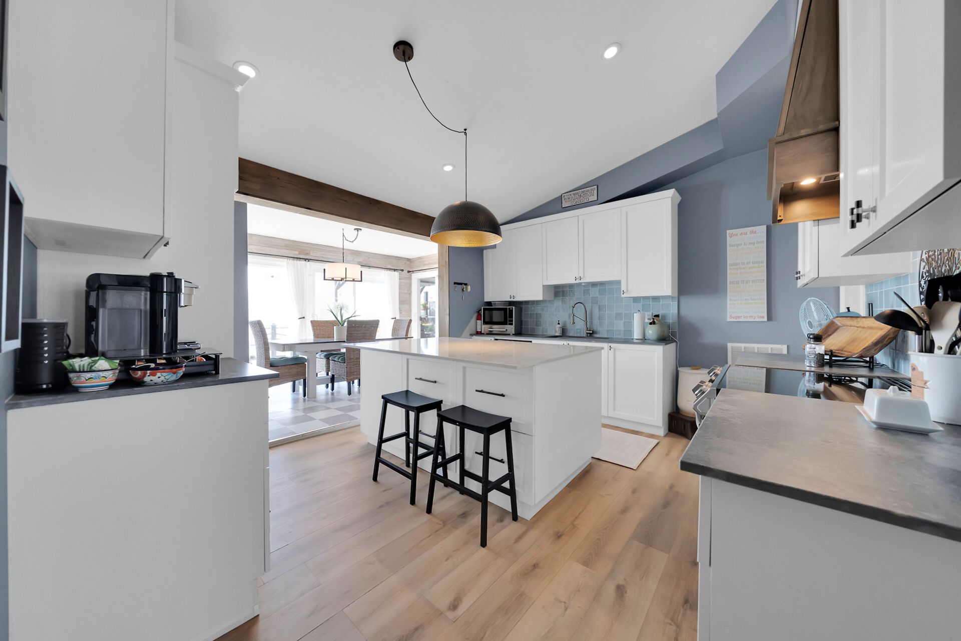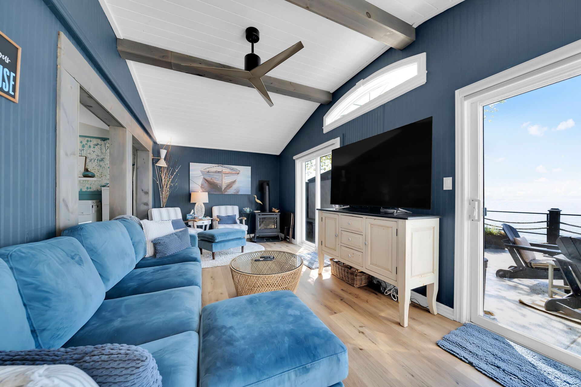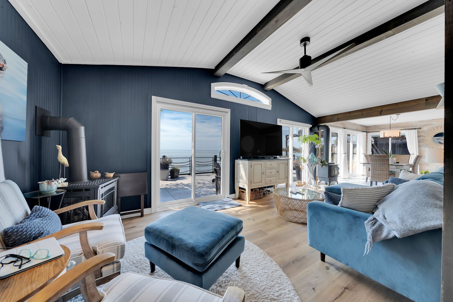 Truly irreplaceable, exquisitely presented waterfront "lake house" on the sought after south shore of lake erie offering a masterfully planned, beautifully renovated 3 bedroom+1 bathroom bungalow with attention to detail evident throughout. Rarely do properties capture & embrace the true feel of lakefront living! Incredible curb appeal with extensive concrete paver stone driveway & walkways. Backyard oasis complete with stone effect concrete patio, pergola with decked entertaining area, solid breakwall, lakeside shed, & private stair access to sand bottom beach. The gorgeous interior layout emphasizes the stunning waterview's, five sets of sliders, custom kitchen, bright dining area (fits 10+), vaulted great room with both corner gas fireplace & woodstove, 3 large bedrooms, additional bedroom / den area, welcoming foyer, upgraded 3 pc bathroom, & desired mf laundry. Bonus attached garage/utility room ideal for workshop & storage with auto garage door. Experience waterfront living.