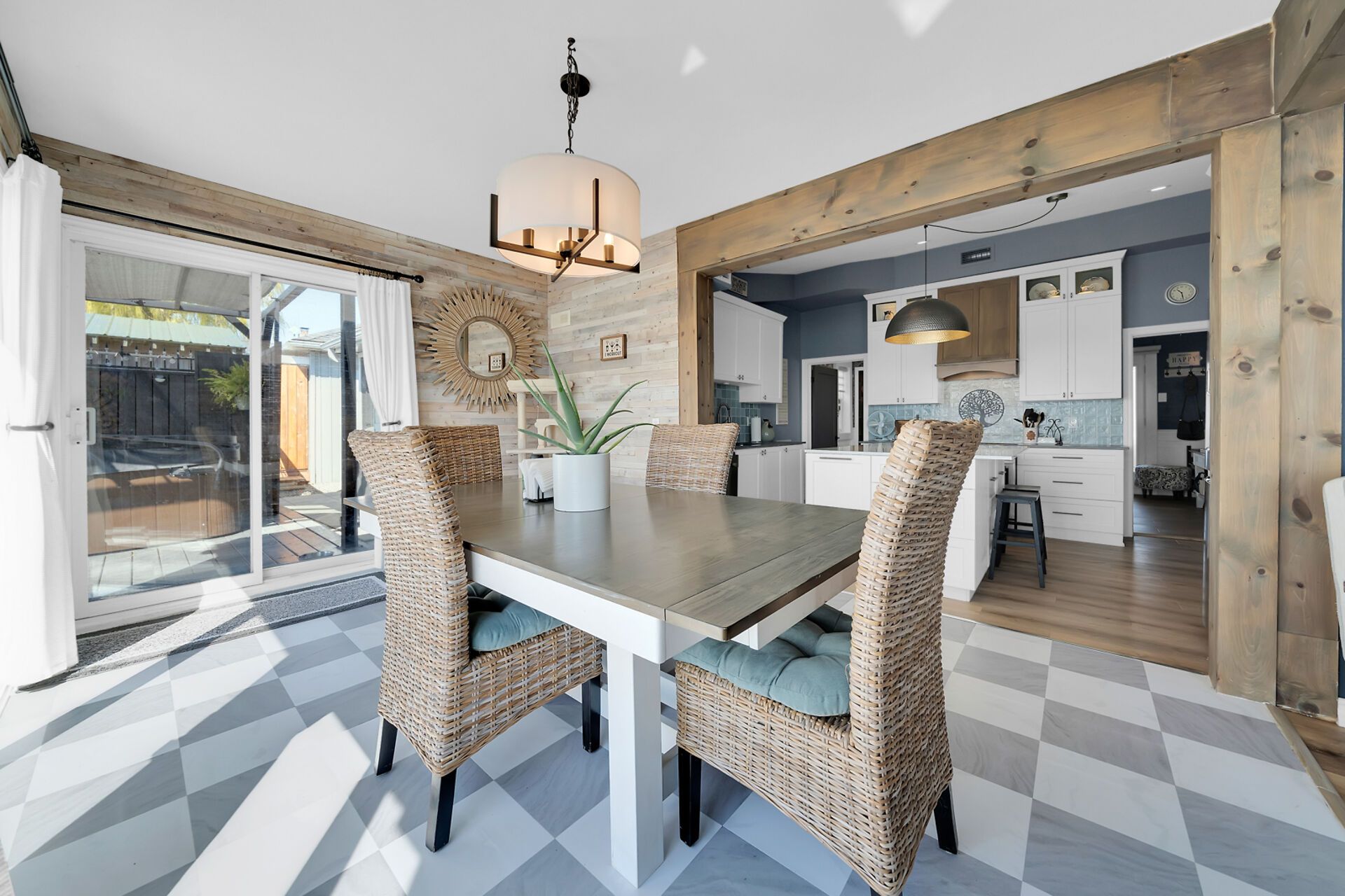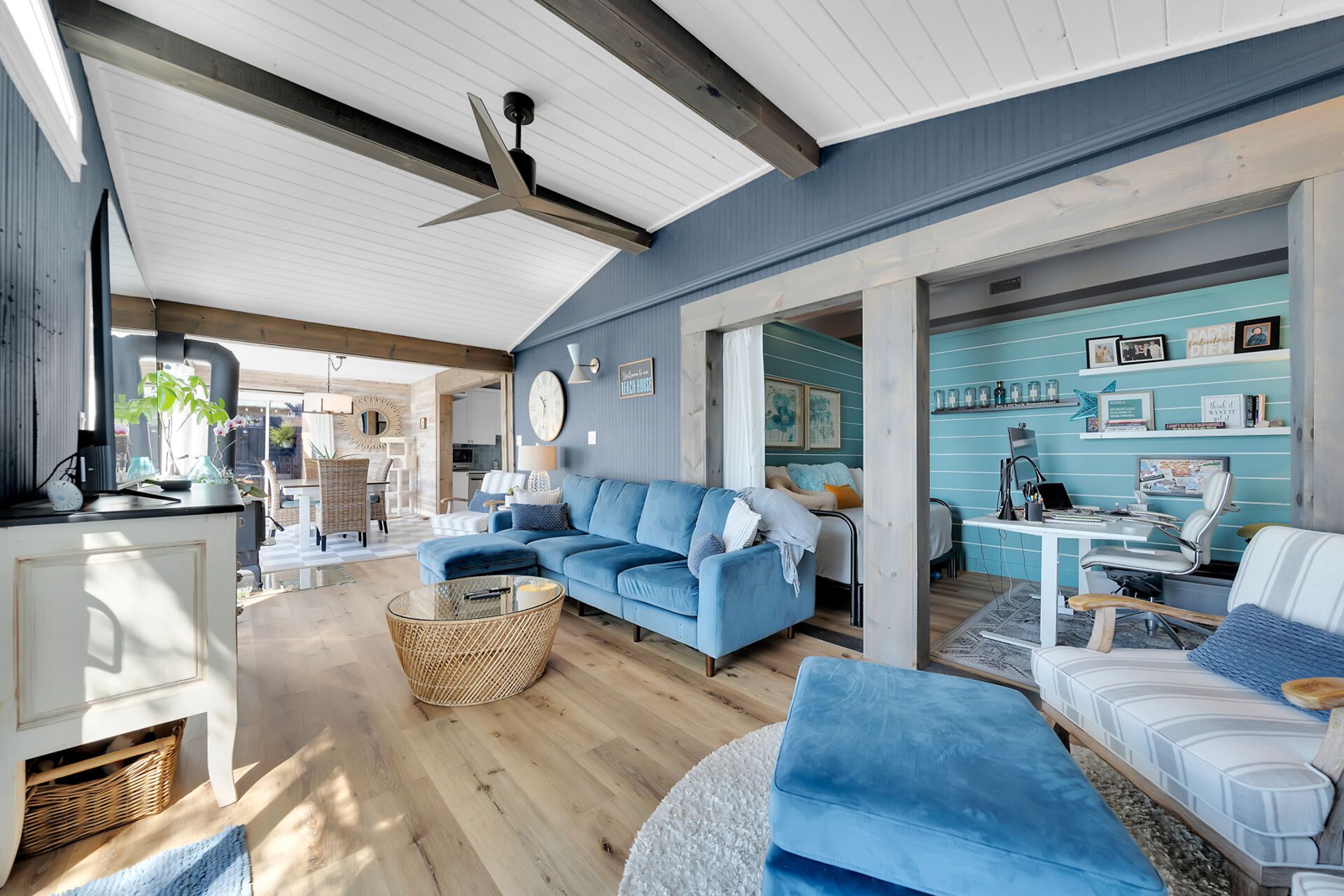 • Five sets of sliders create a seamless indoor-outdoor living experience.