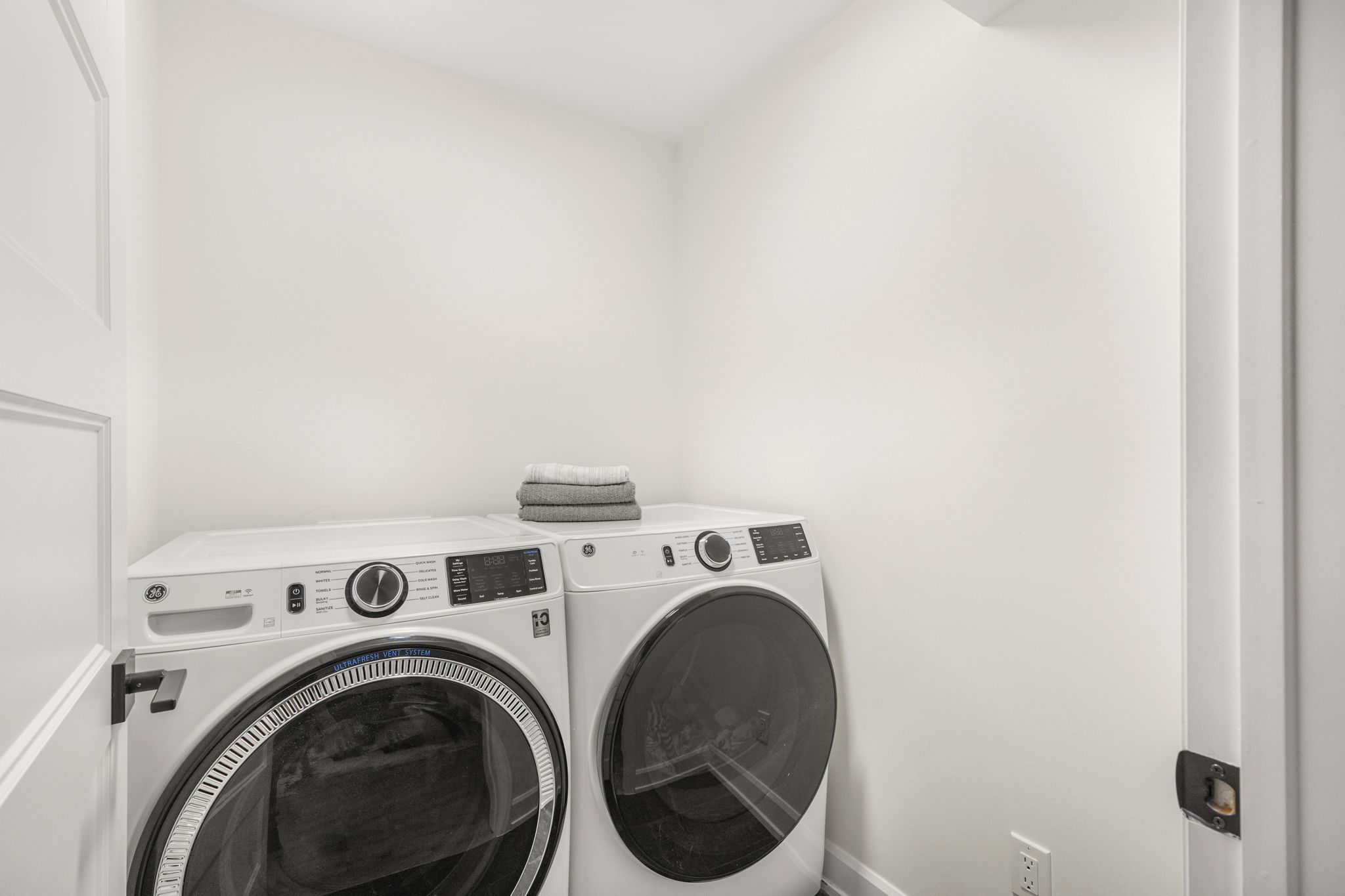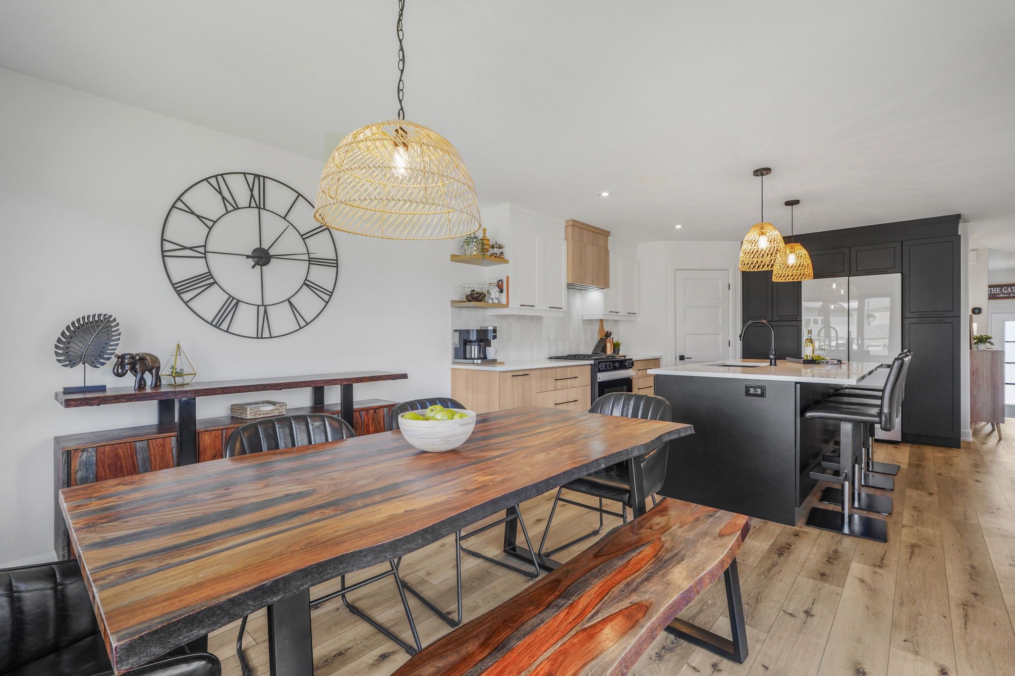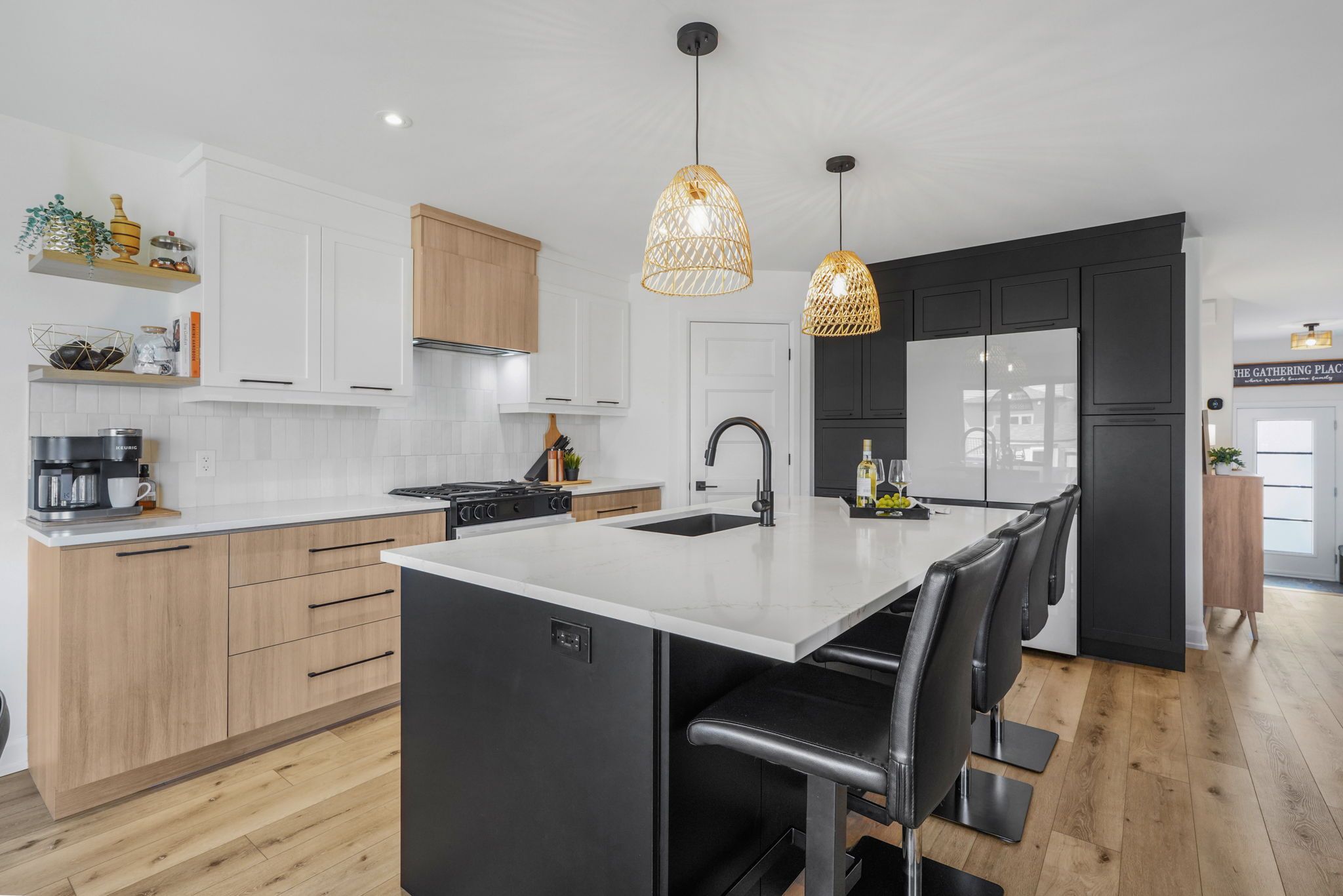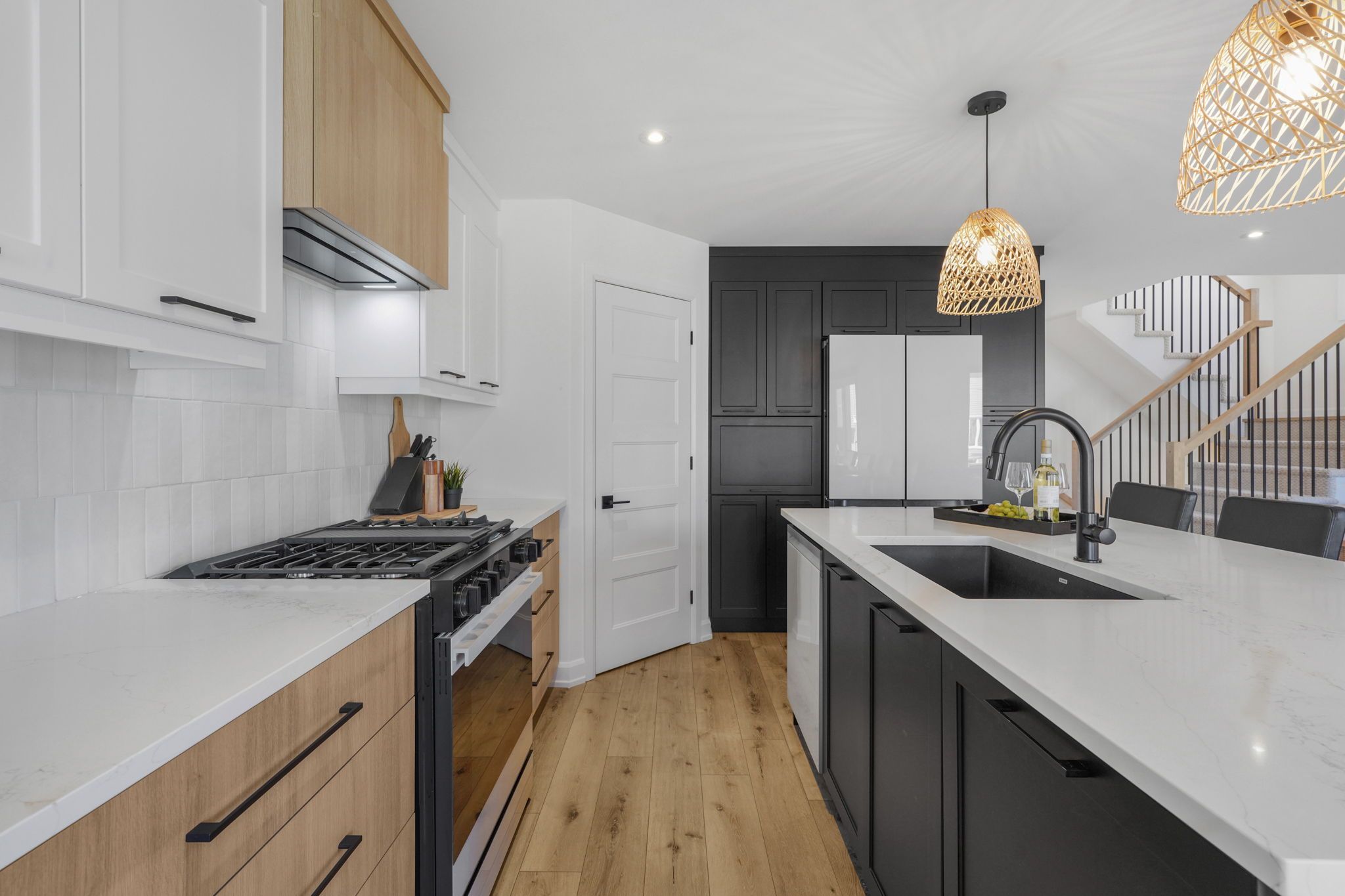 • Stylish designer kitchen with quartz countertops and a walk-in pantry.