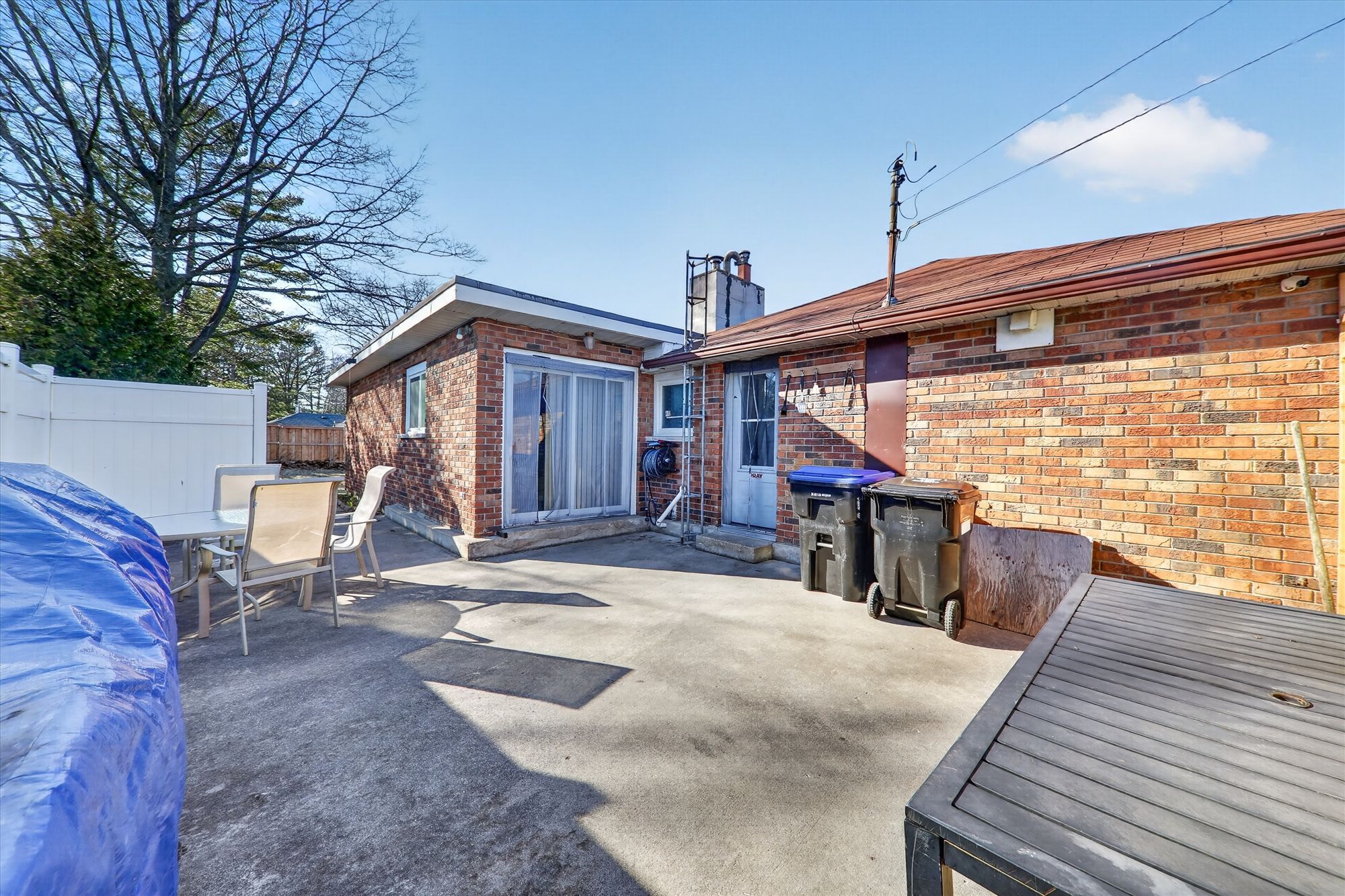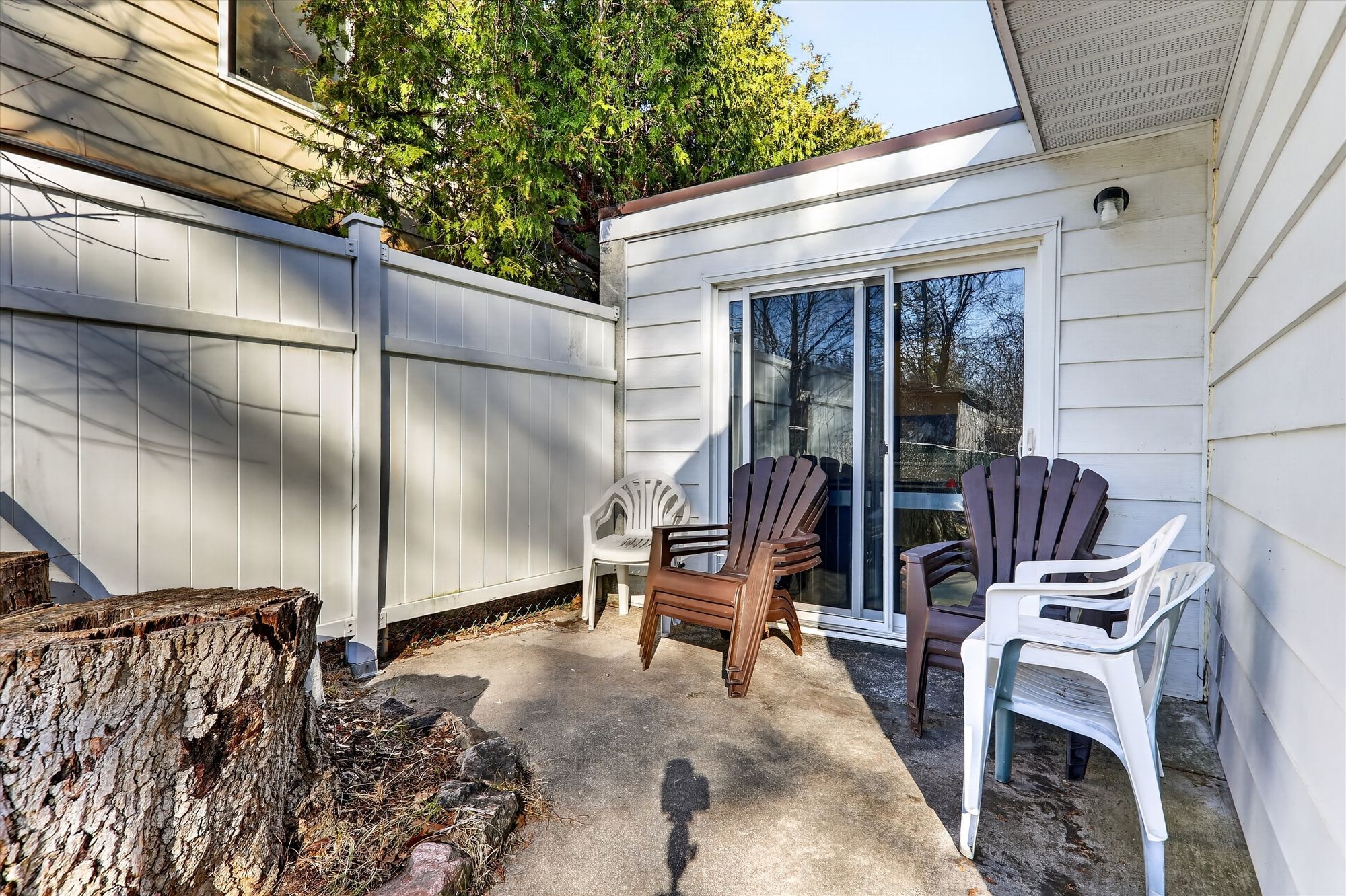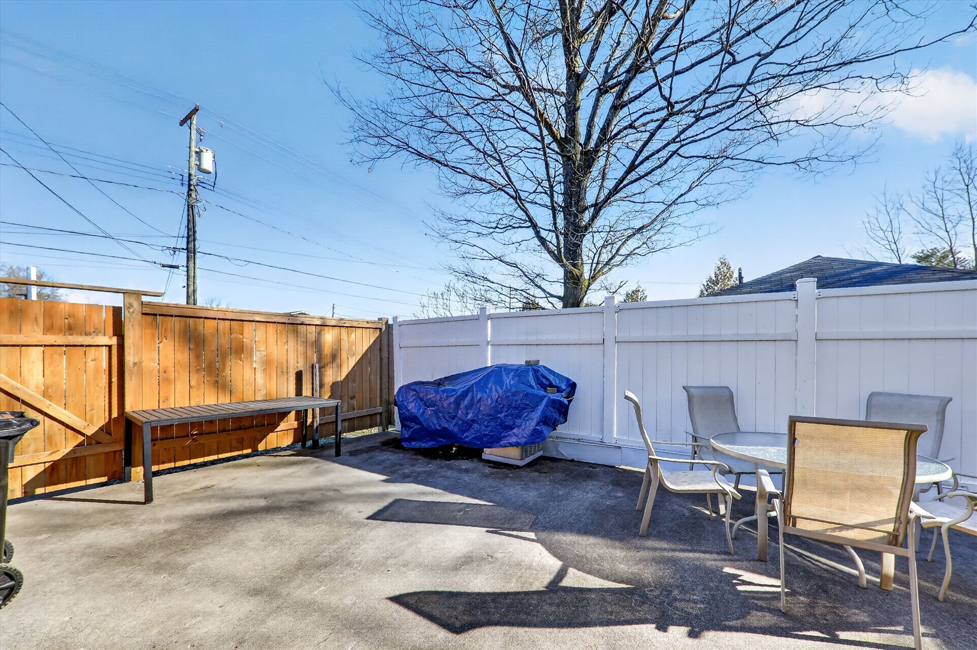 • Private landscaped yard with a huge concrete patio for gatherings.