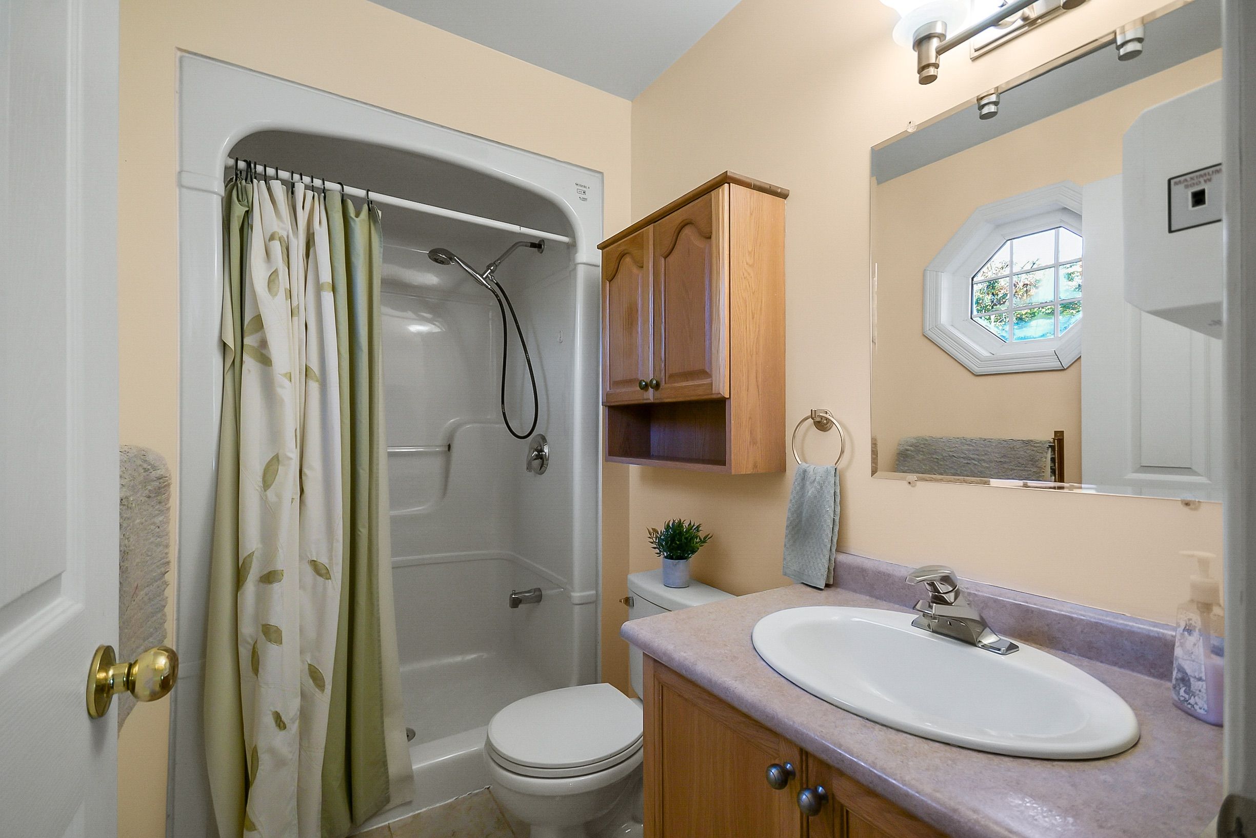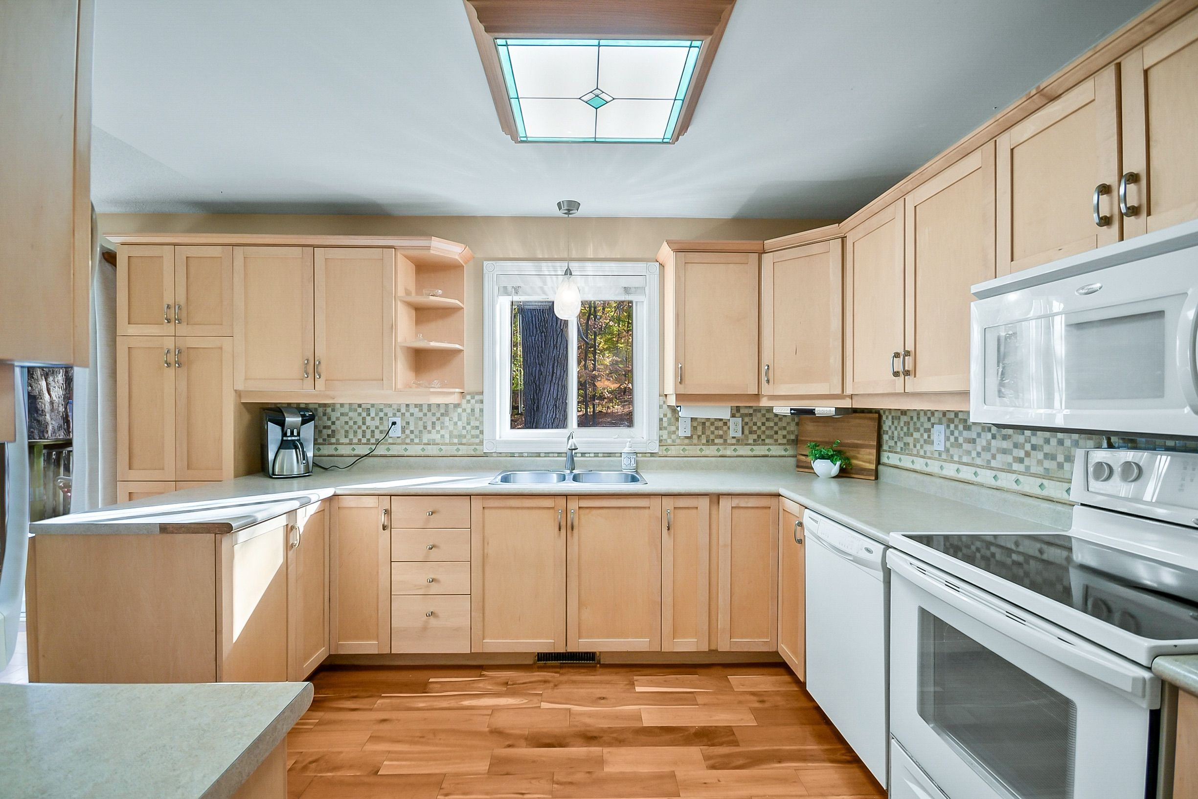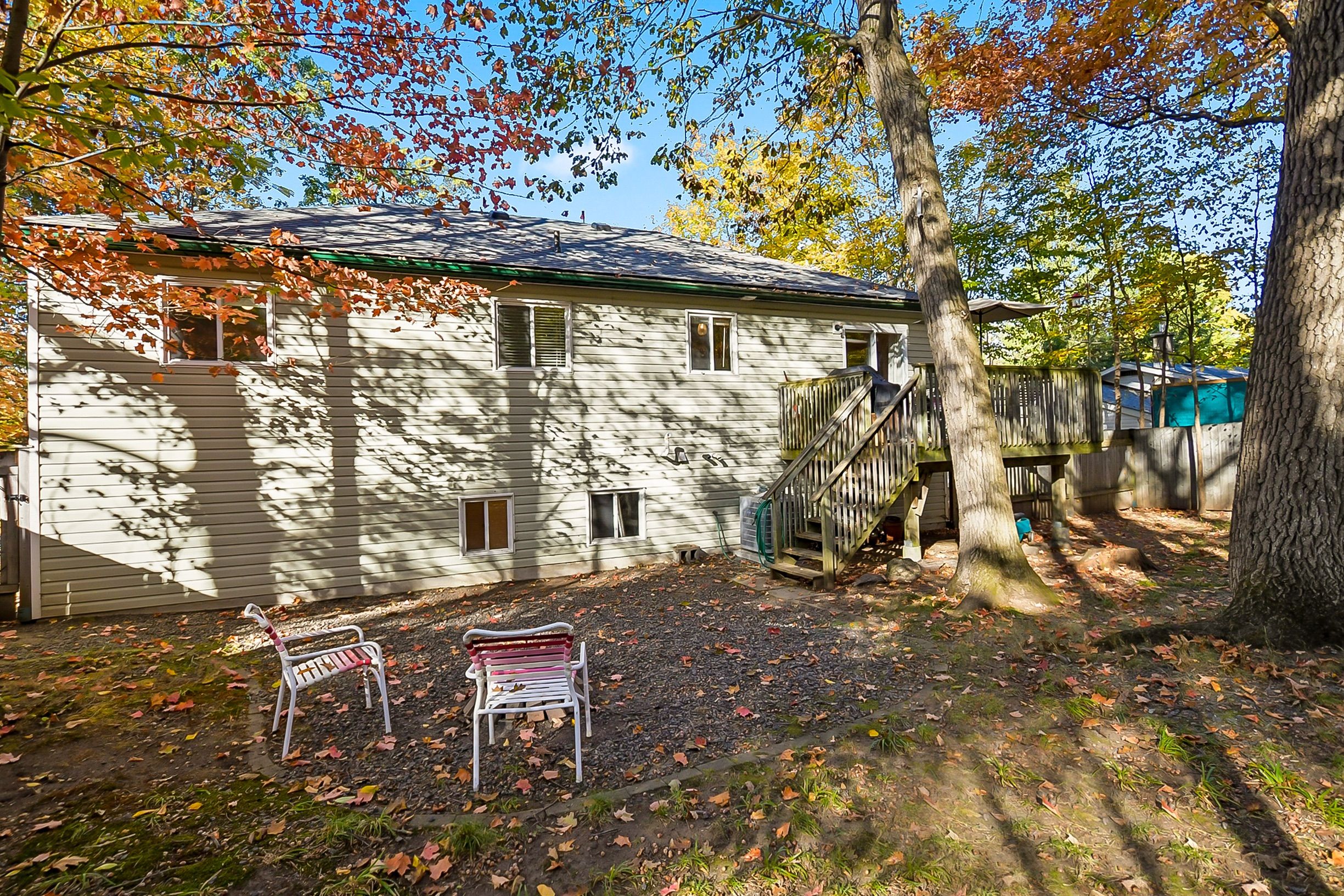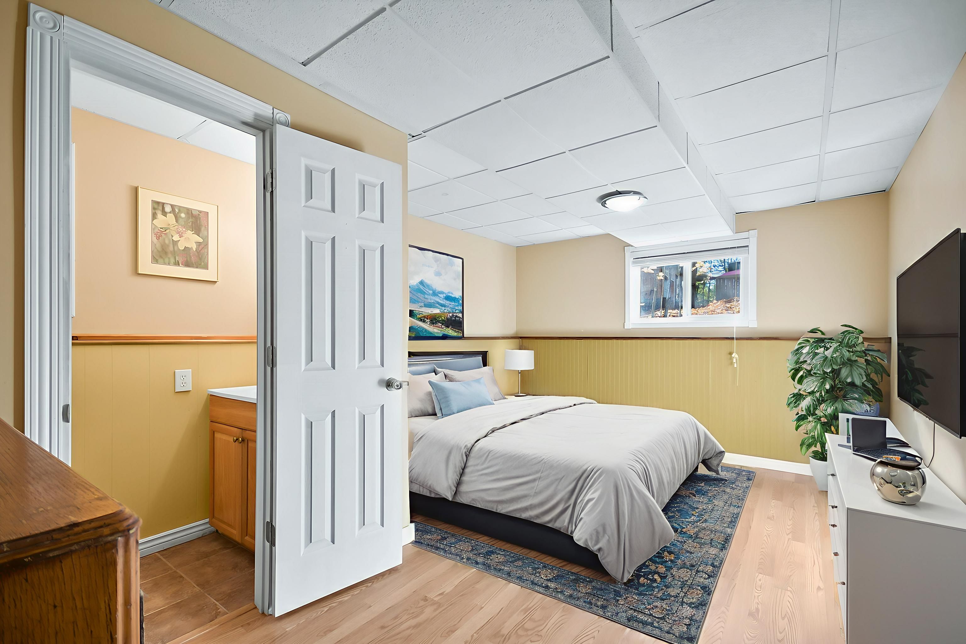 Welcome to this charming 3-bedroom raised bungalow with private backyard and finished basement. This beautifully maintained 3 bedroom, 2. 5 bathroom home on an oversized lot with municipal services, just minutes from beaches, parks, schools, and all town amenities. The main floor offers an inviting open-concept layout with a bright living room, spacious dining area, and a kitchen featuring plenty of cabinets and counter space. Large windows fill the space with natural light, and patio doors lead to a deck overlooking a private backyard surrounded by mature trees perfect for entertaining or relaxing. The primary suite boasts a large closet and a private 3-piece ensuite, while hardwood floors throughout the main level add warmth and character. The fully finished basement provides even more living space, complete with a recreation room, cozy wood stove, den with a 2-piece powder room (easily converted into a 4th bedroom with the addition of a door), large storage area, laundry/utility room, and convenient garage access. This property had a new roof completed in 2023. New furnace and a/c (2025) lease in place with reliance and hot water tank rental. Additional highlights include a double attached garage, central vac system and an oversized lot with mature trees. This home combines comfort, functionality, and a fantastic location ready to be enjoyed!