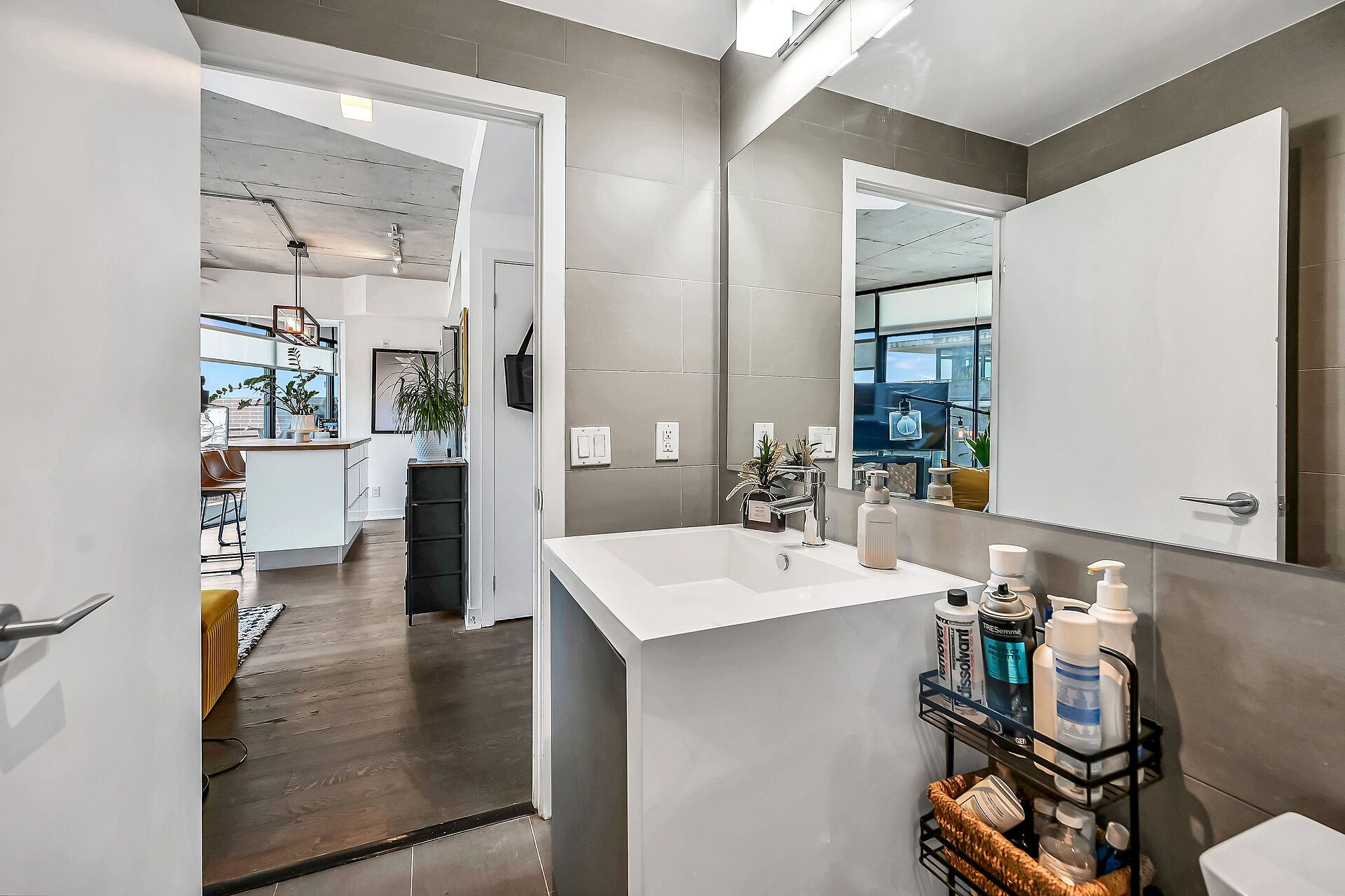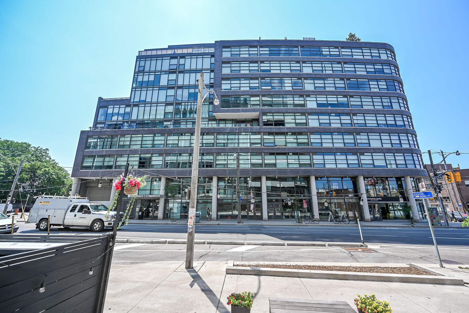 Welcome to suite 902 at the flat iron lofts, where modern design meets the vibrant charm of leslieville. This bright 1bedroom plus den, 1-bath corner suite features a smart, open-concept layout ideal for professionals or couples. Floor-to-ceiling, south-facing windows flood the space with natural light throughout the day. Exposed concrete ceilings, wide-plank hardwood floors, and sleek finishes blend industrial character with contemporary style. The modern kitchen offers full-sized stainless steel appliances, stone countertops, and generous storage-perfect for everyday living or entertaining. A standout feature is the expansive private terrace with gas bbq hookup, offering a seamless extension of the living space. Enjoy city views and stunning downtown sunsets, whether hosting friends or unwinding at the end of the day. Residents also have access to a rooftop terrace with panoramic skyline views. Steps to parks, transit, and leslieville's best cafés, shops, and restaurants along queen east and gerrard. Suite 902 is more than a condo-it's a lifestyle.
