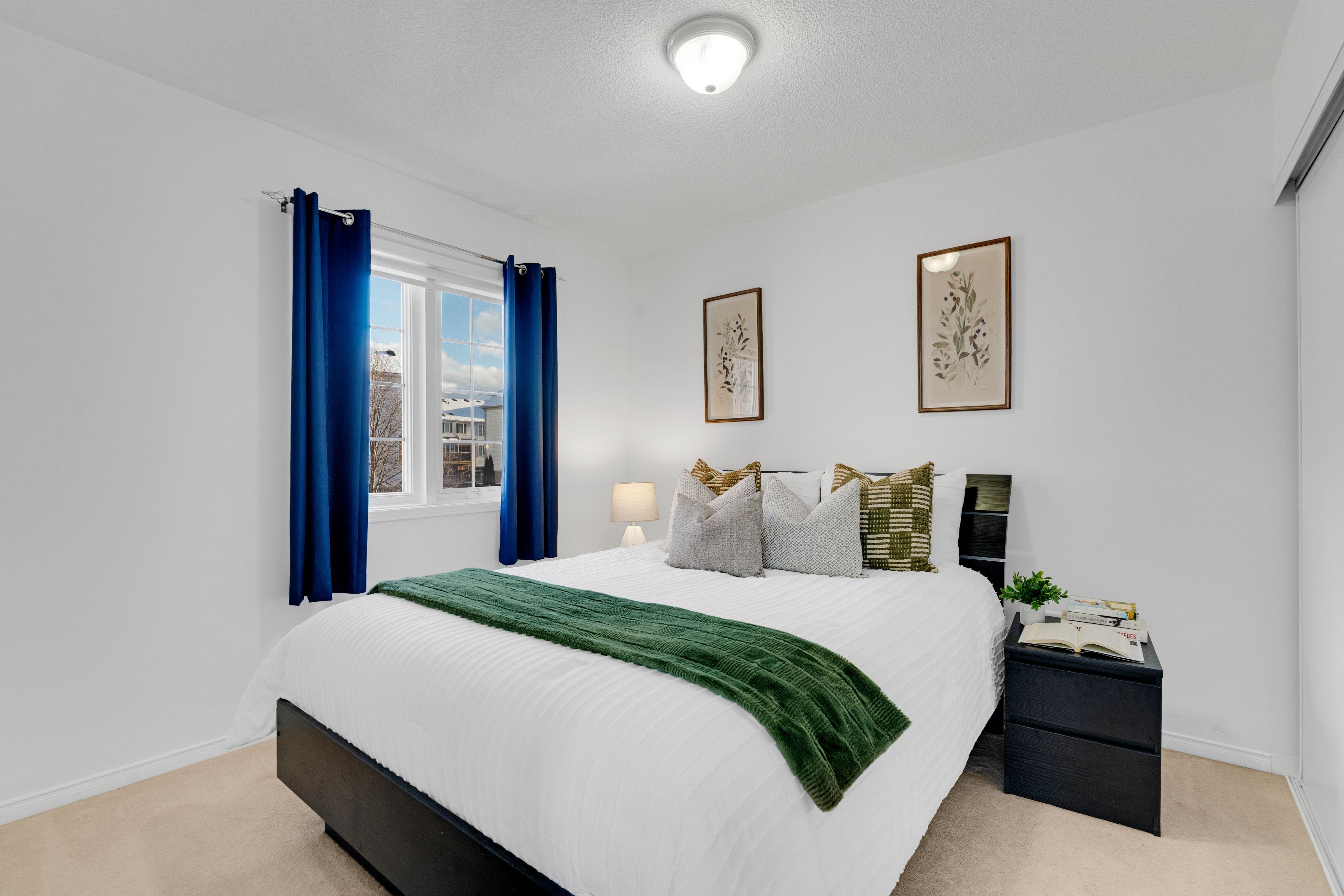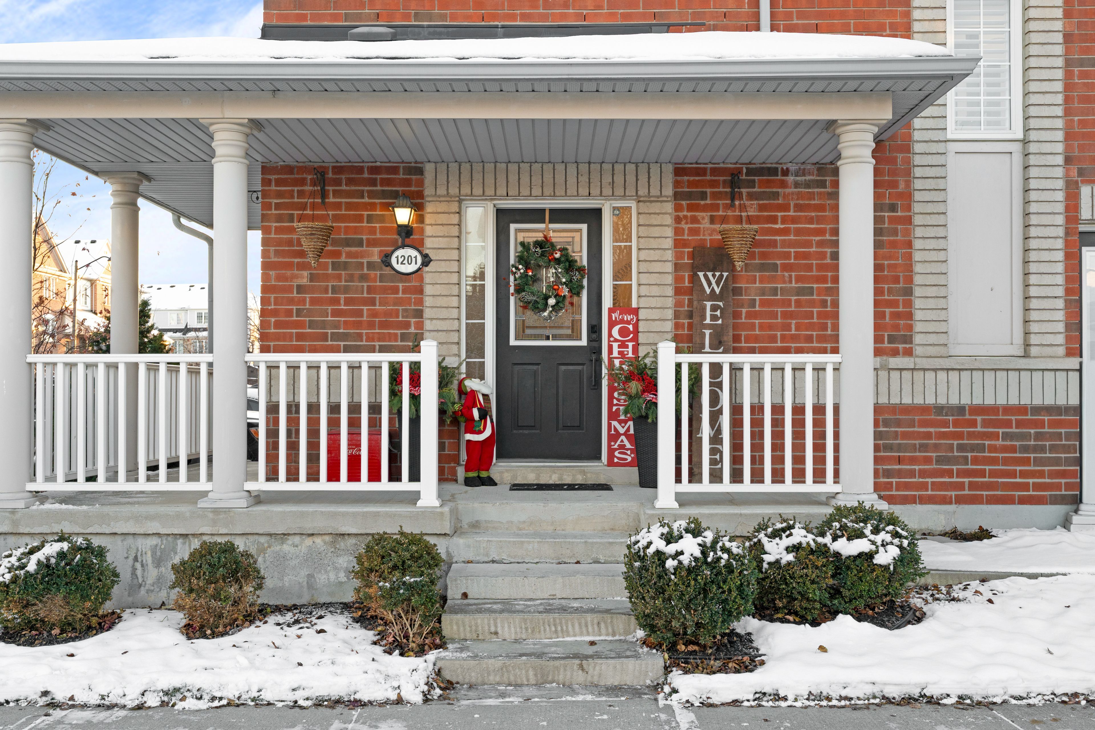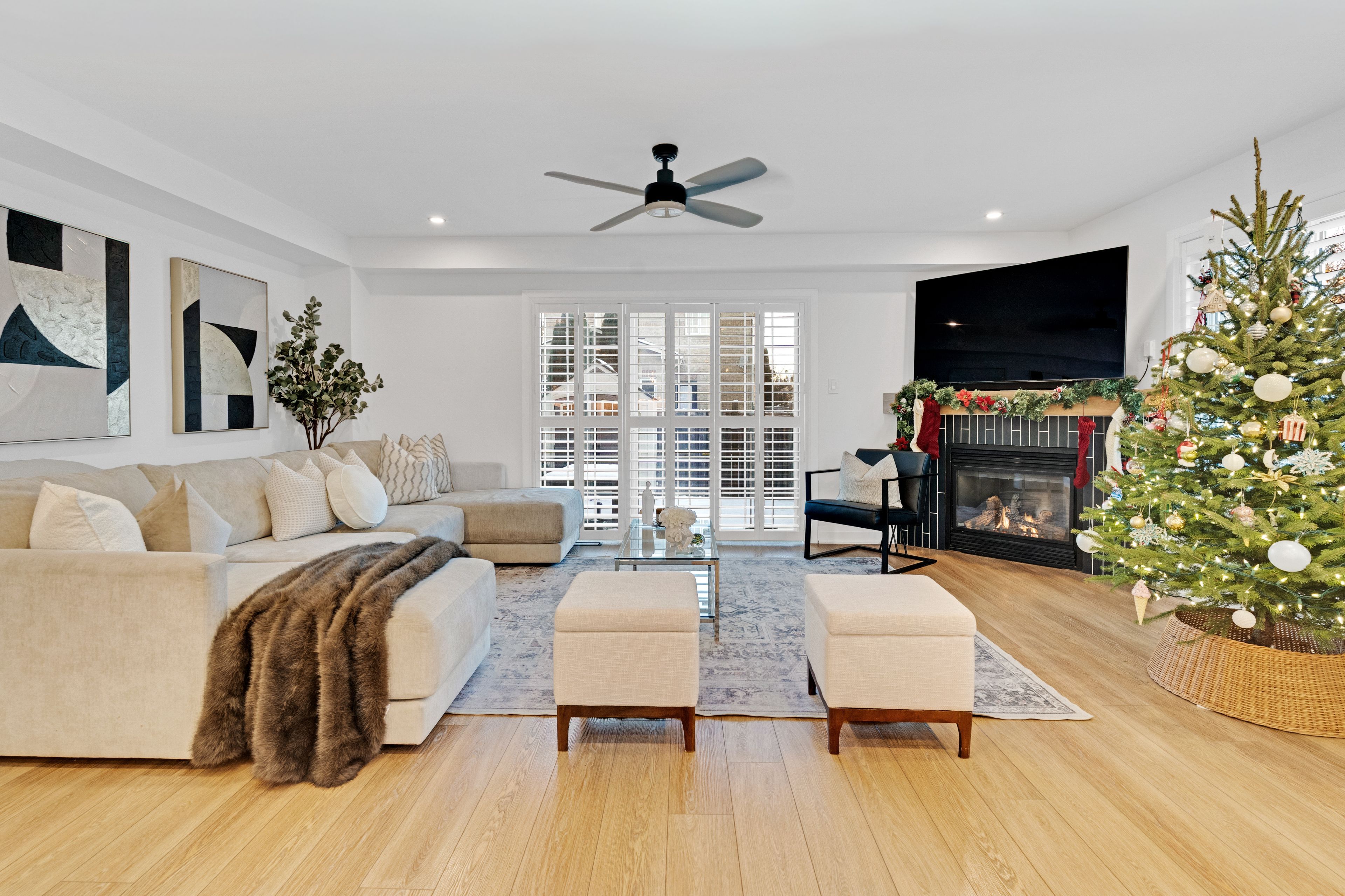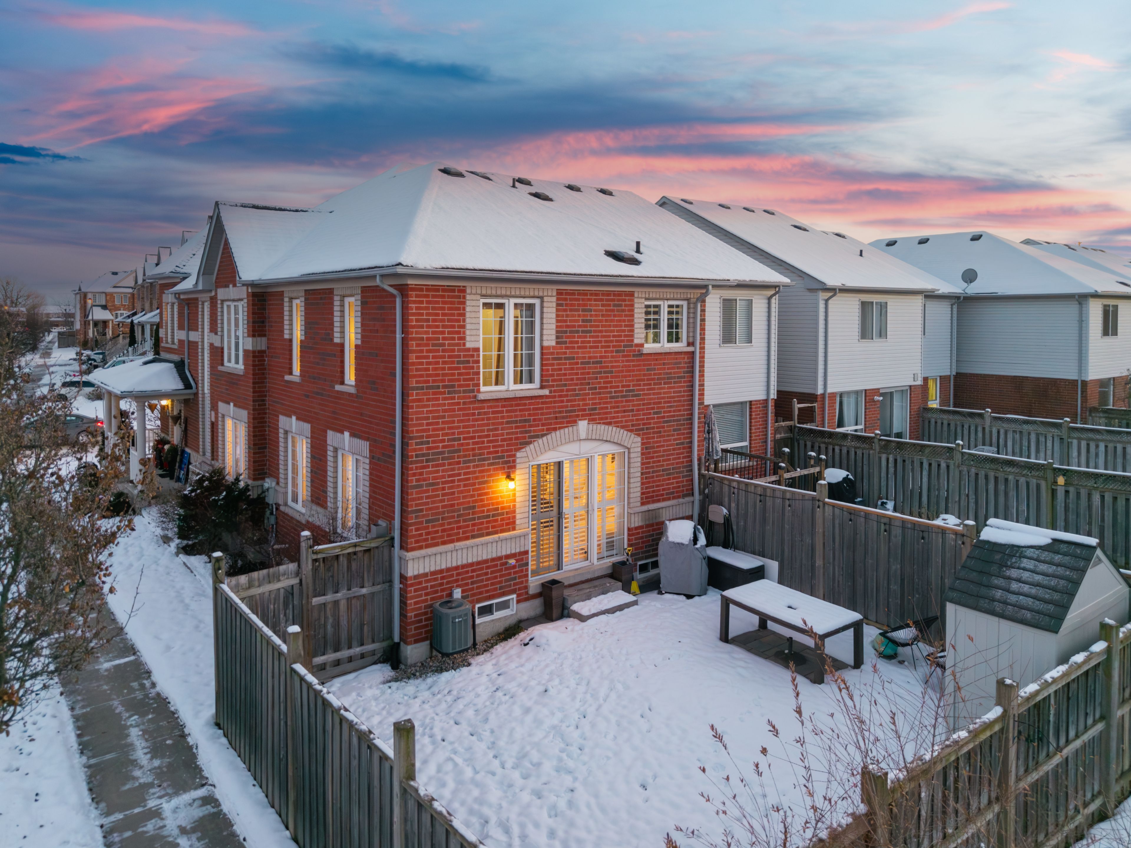 A truly exceptional & rare corner-lot freehold townhome with a larger-than-life presence that looks and feels more like a detached home while still offering the incredible value of a townhouse price point. This home instantly commands attention, featuring a beautiful brick architecture & a charming wraparound porch, step inside to a grand and welcoming foyer finished with gleaming tile that sets the tone for the extensive renovations throughout, including a complete main floor transformation completed in 2021 where walls were opened and every detail thoughtfully reimagined to create a bright, expansive, fully open-concept layout that genuinely feels like a detached home, showcasing new flooring, an updated staircase, a stunning new powder room, and seamless flow between the living, dining, and family spaces, at the heart of the home is a custom-built chef's kitchen designed for entertaining on any scale, featuring a massive centre island, quartz stone countertops, high-end stainless steel appliances, an electric range, a wine fridge, custom backsplash, extensive custom millwork, and striking exposed beams beautifully capped with wood detailing, the oversized dining and living areas are flooded with natural light from abundant windows and enhanced by california shutters throughout the entire main floor and stairwell, flowing effortlessly into a spacious family room anchored by a gas fireplace and a walkout to a huge private corner-lot backyard with a patio stone upgrade completed in 2019, making this home a true entertainer's dream both inside and out, upstairs you'll find an oversized primary bedroom retreat with a walk-in closet and a spacious spa-style 4 pc ensuite, along with generous secondary bedrooms and a highly functional family-friendly layout. The home also offers a builder-installed separate entrance to a partially finished basement featuring a 5th bedroom, providing exceptional flexibility for extended family, guests, or future income potential!
