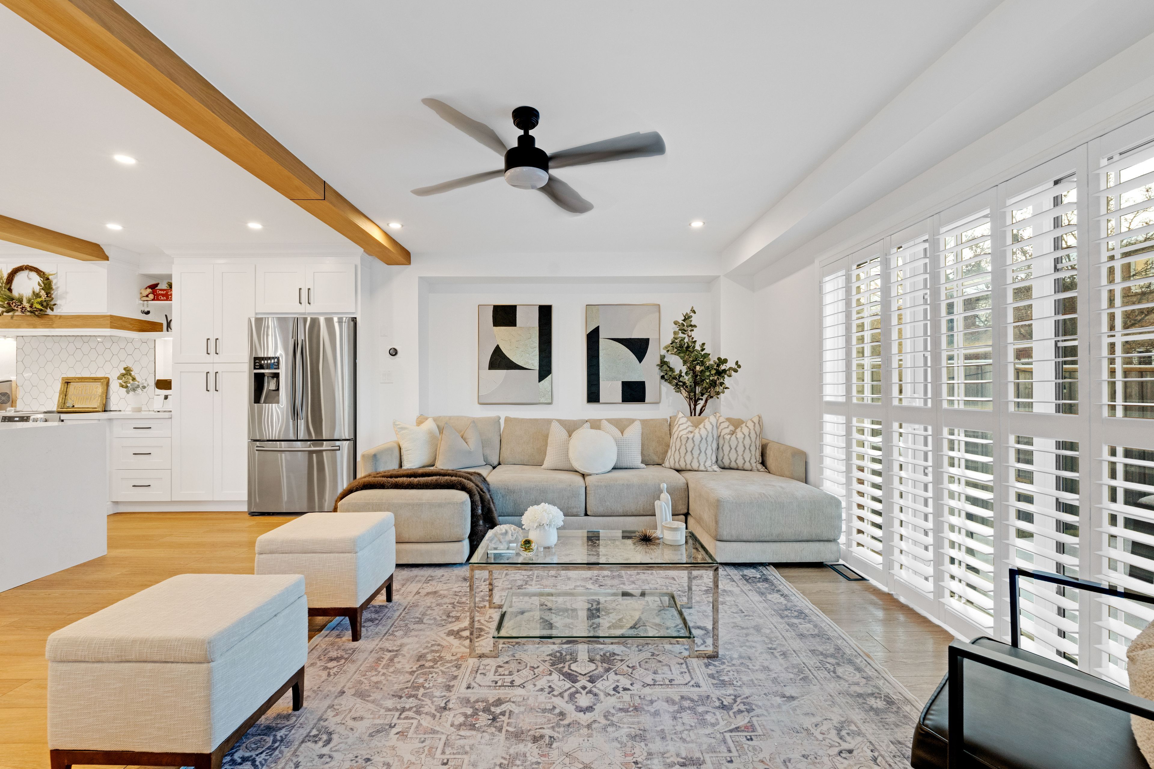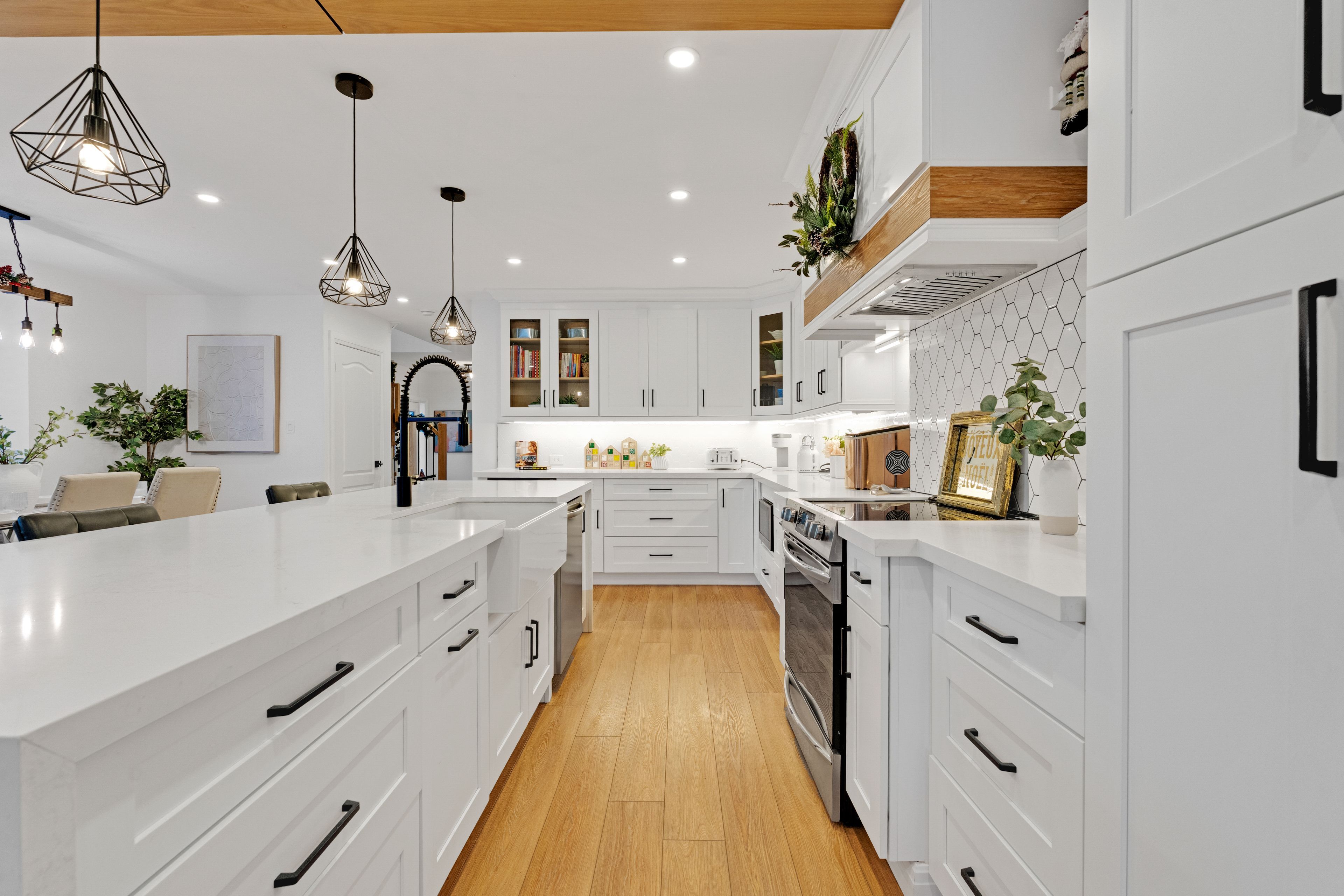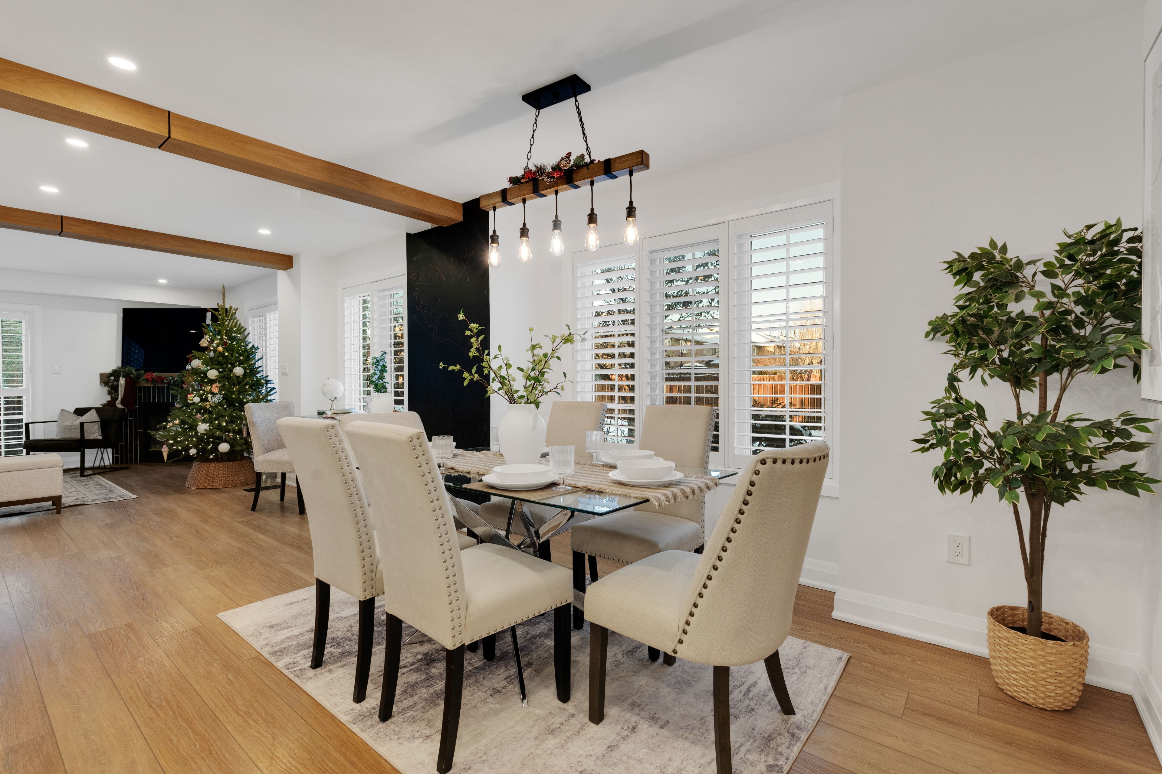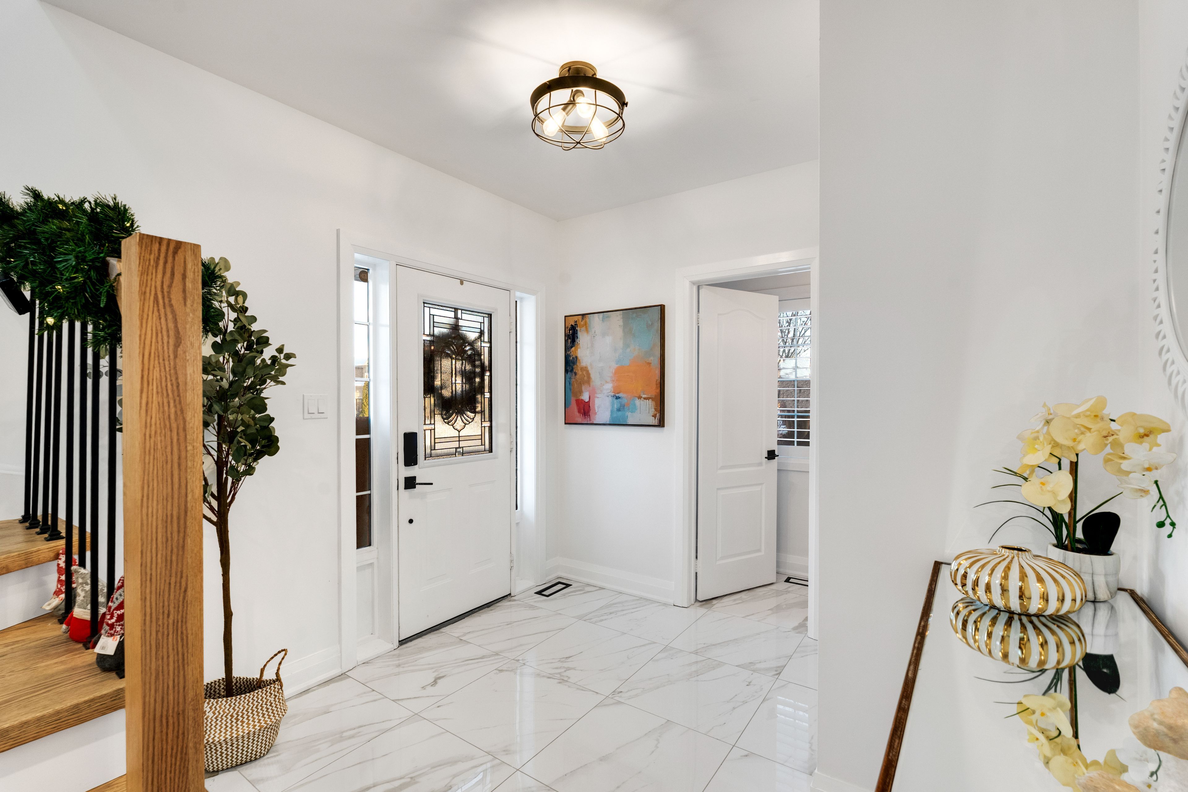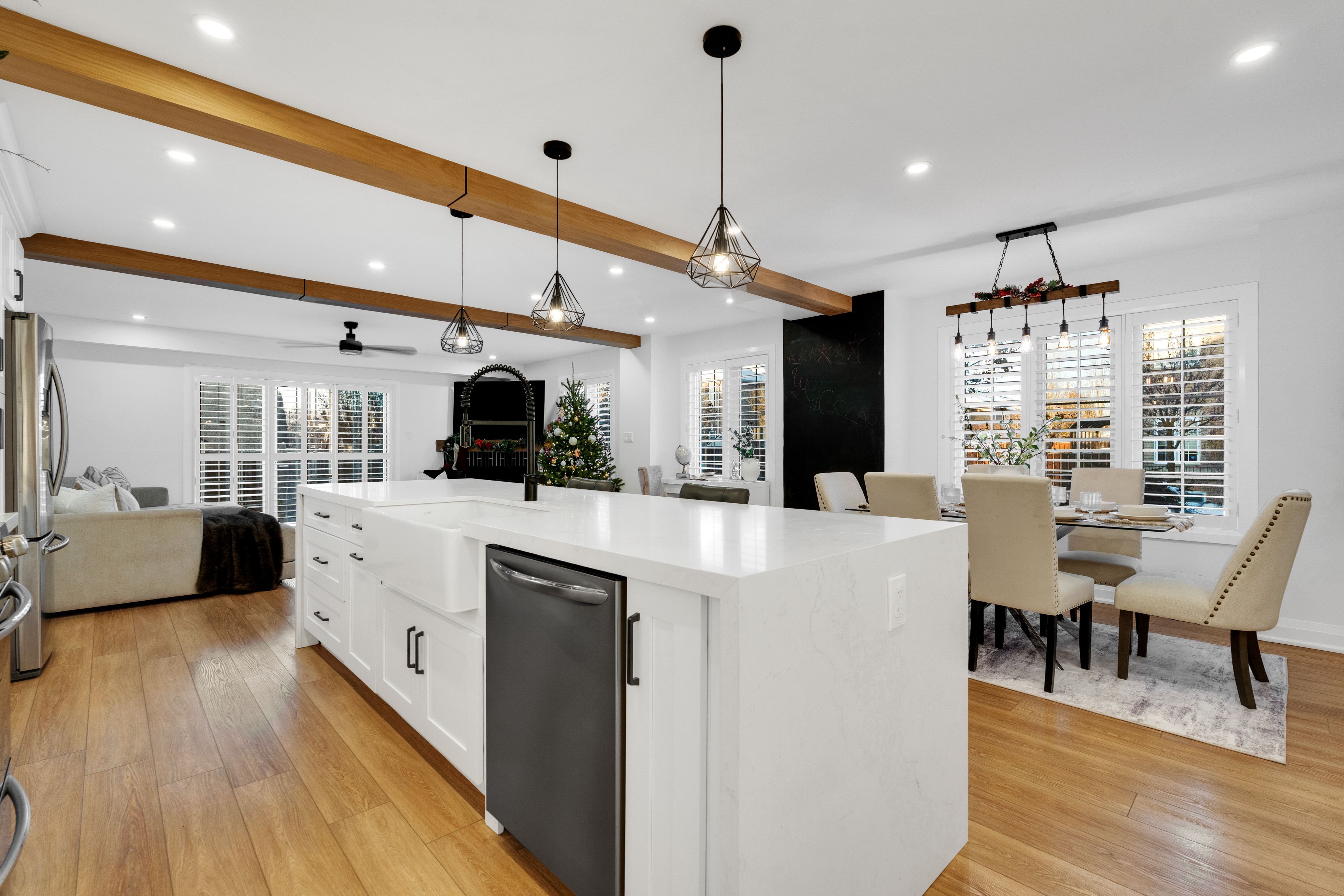 A truly exceptional & rare corner-lot freehold townhome with a larger-than-life presence that looks and feels more like a detached home while still offering the incredible value of a townhouse price point. This home instantly commands attention, featuring a beautiful brick architecture & a charming wraparound porch, step inside to a grand and welcoming foyer finished with gleaming tile that sets the tone for the extensive renovations throughout, including a complete main floor transformation completed in 2021 where walls were opened and every detail thoughtfully reimagined to create a bright, expansive, fully open-concept layout that genuinely feels like a detached home, showcasing new flooring, an updated staircase, a stunning new powder room, and seamless flow between the living, dining, and family spaces, at the heart of the home is a custom-built chef's kitchen designed for entertaining on any scale, featuring a massive centre island, quartz stone countertops, high-end stainless steel appliances, an electric range, a wine fridge, custom backsplash, extensive custom millwork, and striking exposed beams beautifully capped with wood detailing, the oversized dining and living areas are flooded with natural light from abundant windows and enhanced by california shutters throughout the entire main floor and stairwell, flowing effortlessly into a spacious family room anchored by a gas fireplace and a walkout to a huge private corner-lot backyard with a patio stone upgrade completed in 2019, making this home a true entertainer's dream both inside and out, upstairs you'll find an oversized primary bedroom retreat with a walk-in closet and a spacious spa-style 4 pc ensuite, along with generous secondary bedrooms and a highly functional family-friendly layout. The home also offers a builder-installed separate entrance to a partially finished basement featuring a 5th bedroom, providing exceptional flexibility for extended family, guests, or future income potential!