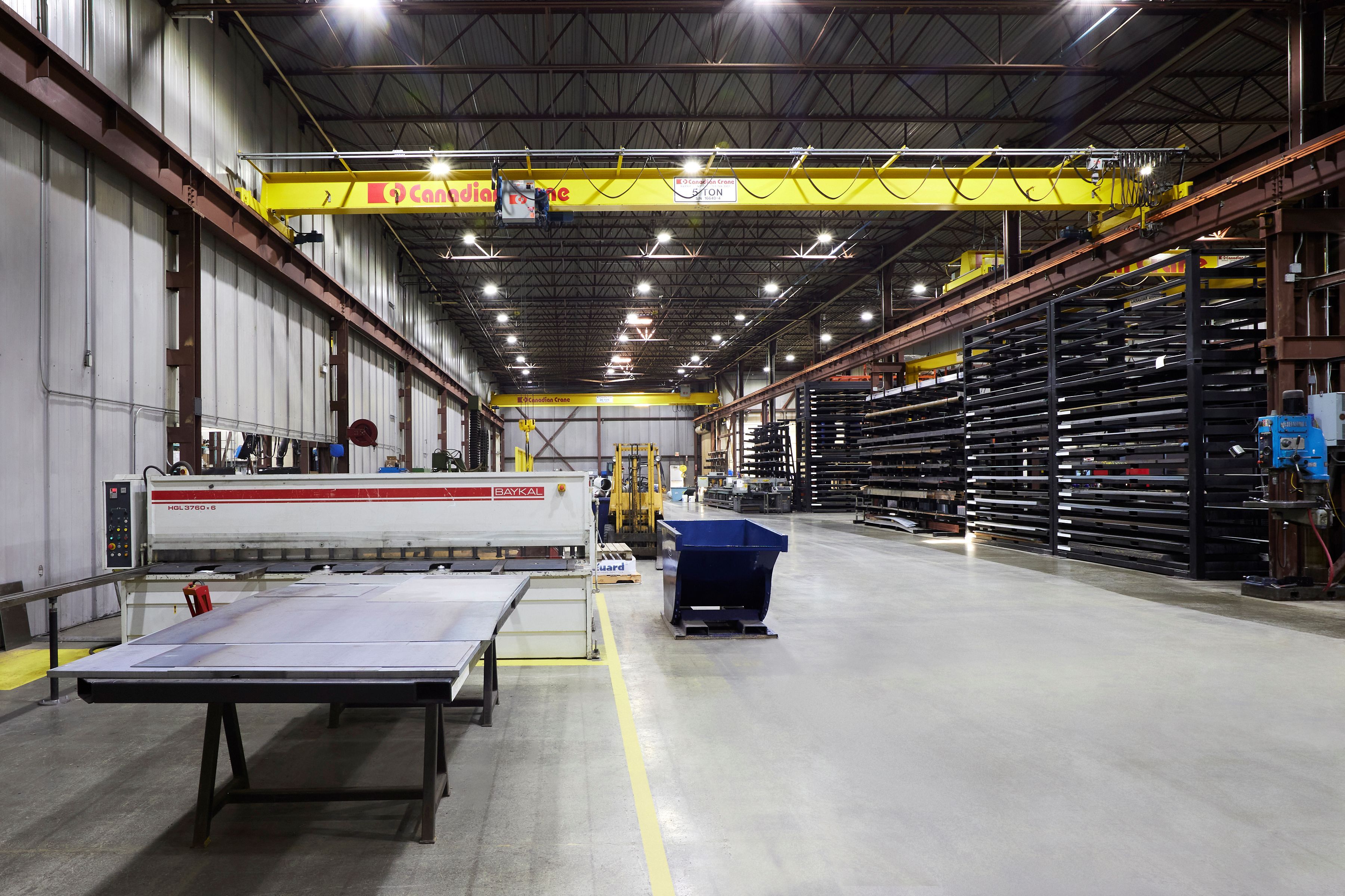 • Includes multiple overhead cranes for efficient operations and workflow.