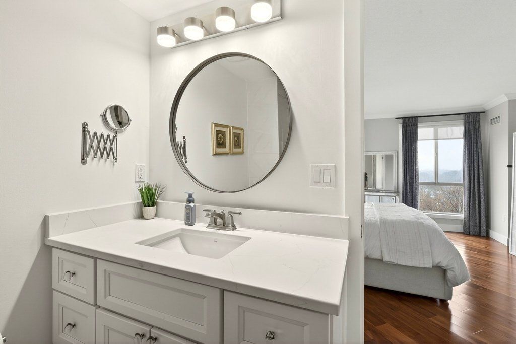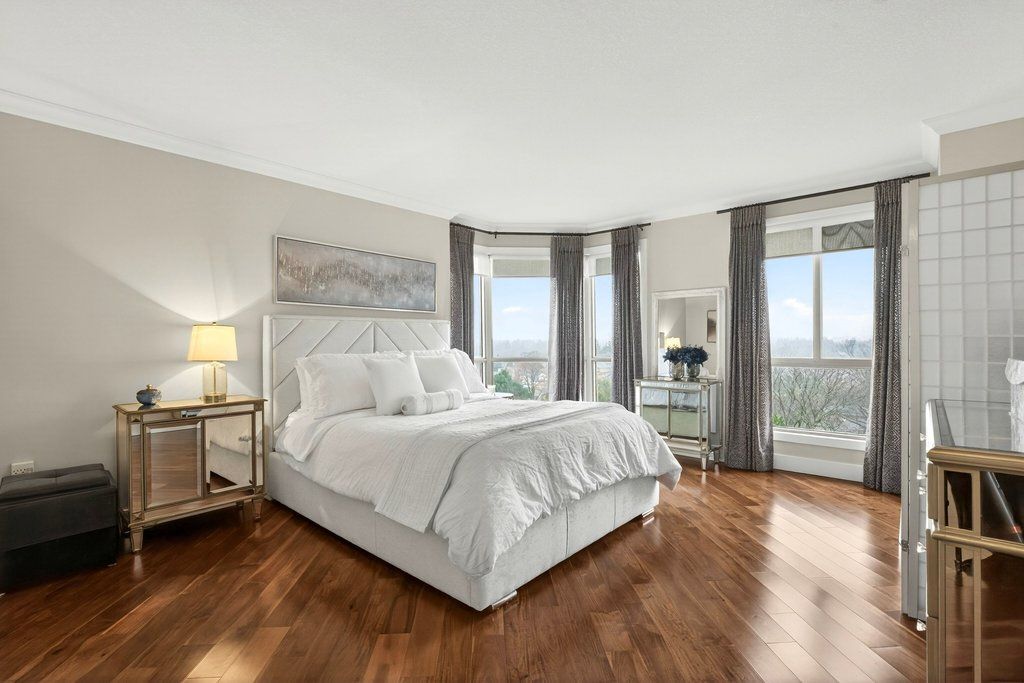 Beautifully updated 2 bedroom corner suite at 'lake winds' in prime downtown core location! Just steps to the lake, waterfront park, restaurants, shops, hospital and highway access. 1,532 sq. Ft. Loaded with natural light featuring southwest exposure and gorgeous views of the lake, bay, bridge, escarpment and beyond! Upgraded eat-in kitchen with granite, stainless steel appliances, glass subway tile backsplash and pantries for extra storage. The primary bedroom features a 4-piece ensuite with soaker tub and custom closet, while the second bedroom is highlighted by a large built-in wardrobe and easy access to an updated 3-piece bathroom with oversized walk-in glass shower. Open living/dining area exudes sophistication with rich engineered hardwood floors, crown moulding, bay windows, electric fireplace, custom window coverings, modern light fixtures, walkout to a private balcony and access to a spacious in-suite laundry with built-in cabinetry. Building amenities include a heated outdoor pool, tennis court, sauna, fitness centre, car wash bay, social room, bicycle storage, workshop and ample visitor parking. Traffic light located at building entrance for safe and easy entering and exiting. 2 underground parking spaces and 1 storage locker. Condo fee includes all utilities.