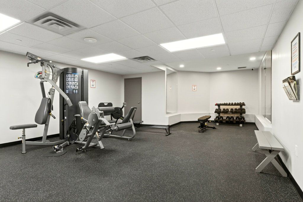 • Building amenities include a heated pool, fitness center, and tennis court.