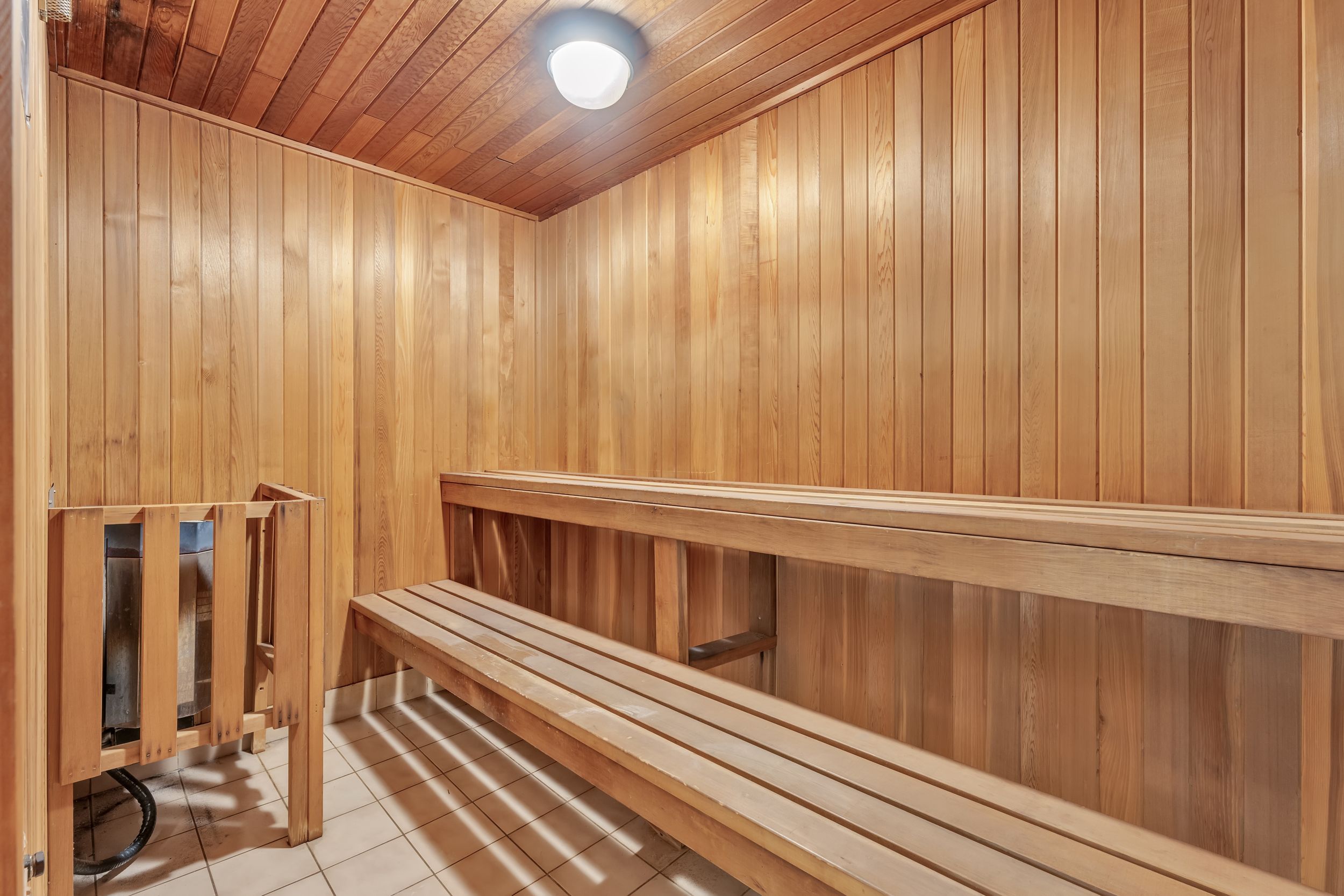 • Building features include fitness room, sauna, party room, and BBQ areas.