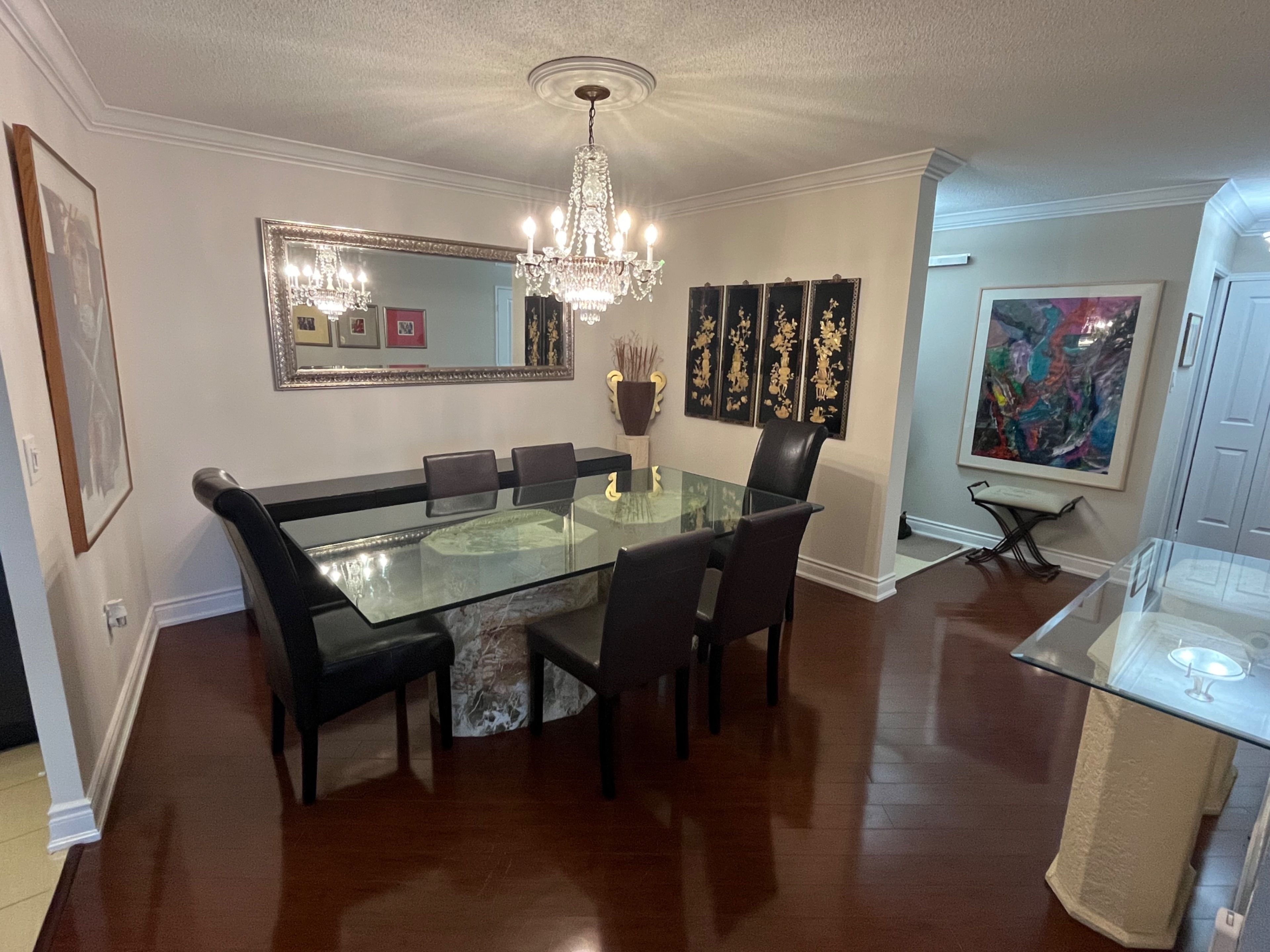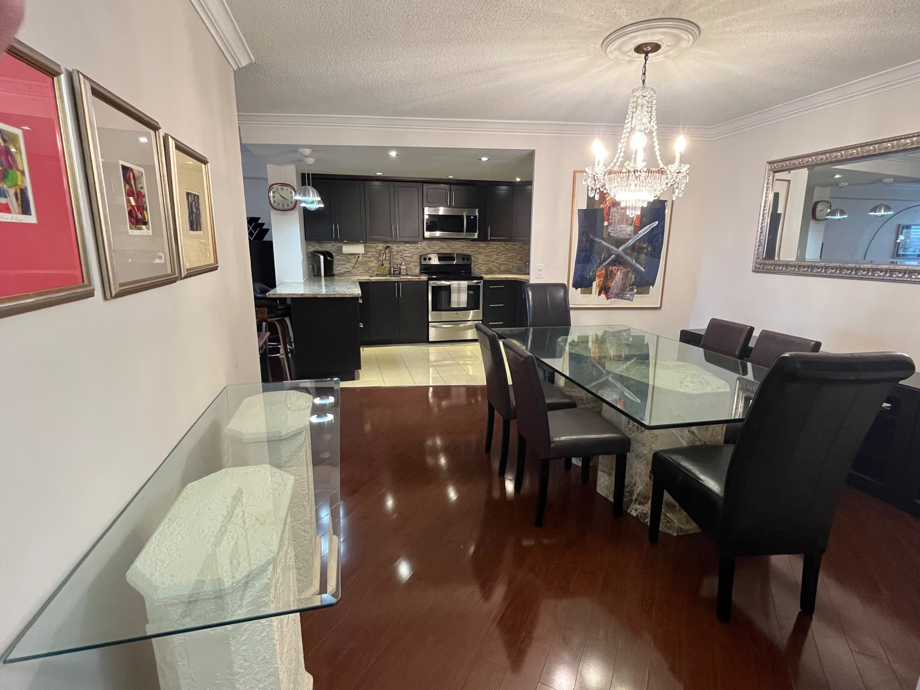 Spacious and bright with large windows and spectacular view. Fully furnished. Eat-in kitchenand separate dining room space. Modern bathrooms. Beautiful grounds with fantastic amenities:out-door pool, indoor saunas, exercise room, and more. 24 hr security at gatehouse, steps toparks, transit, shopping, lots of visitor parking
