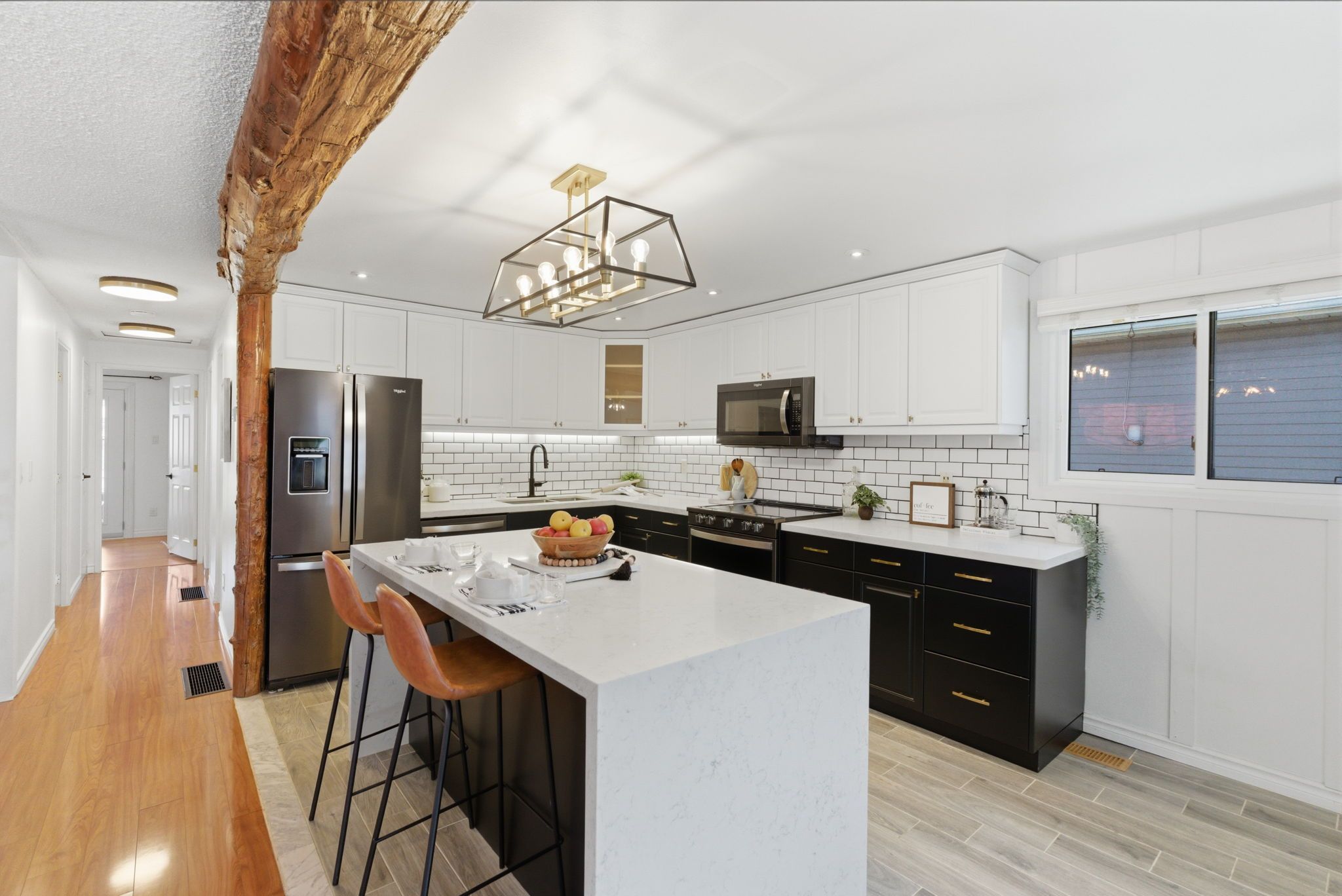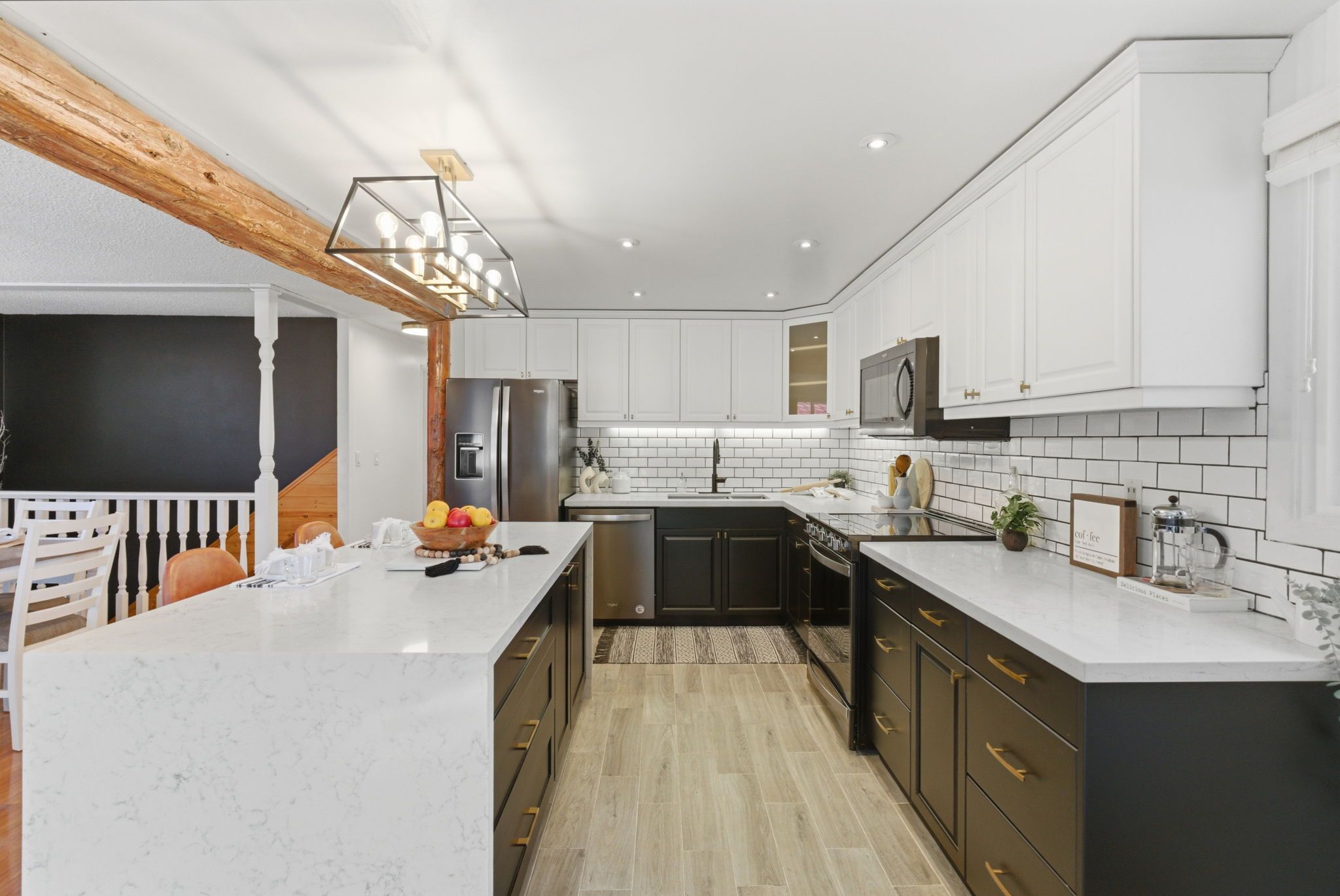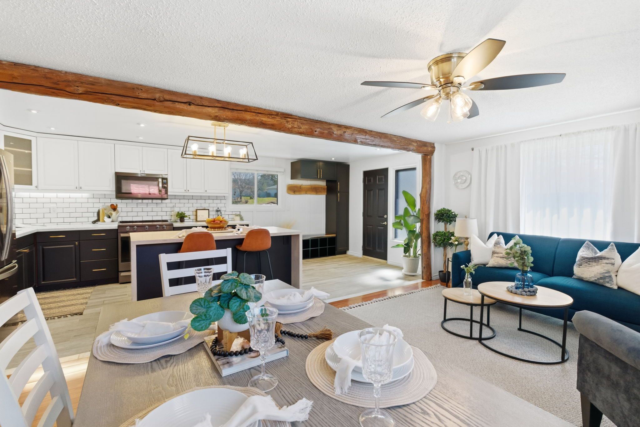 Welcome to this beautifully updated 3+1 bedroom bungalow featuring a fully finished basement and an impressive detached 1. 5 car heated shop-perfect for hobbyists, entrepreneurs, or extra storage. Thoughtfully designed with both style and function in mind, this home offers a seamless blend of modern finishes and warm, custom details throughout. The heart of the home is the stunning, newly refinished kitchen showcasing a double waterfall quartz island, custom cabinetry, and ample counter space-ideal for both everyday living and entertaining. The open-concept layout flows effortlessly into the bright and inviting living and dining areas, creating a spacious and airy feel. Unique design elements including a real barn beam, wainscoting, and tasteful wood paneling add character and charm, making the space feel both elevated and cozy. With three bedrooms on the main level and an additional bedroom in the fully finished basement, this home offers flexibility for families, guests, or a home office setup. Step outside to enjoy the fully fenced, generously sized backyard featuring a newly built deck with a gazebo-perfect for outdoor dining, entertaining, or relaxing in your own private retreat. A must see!