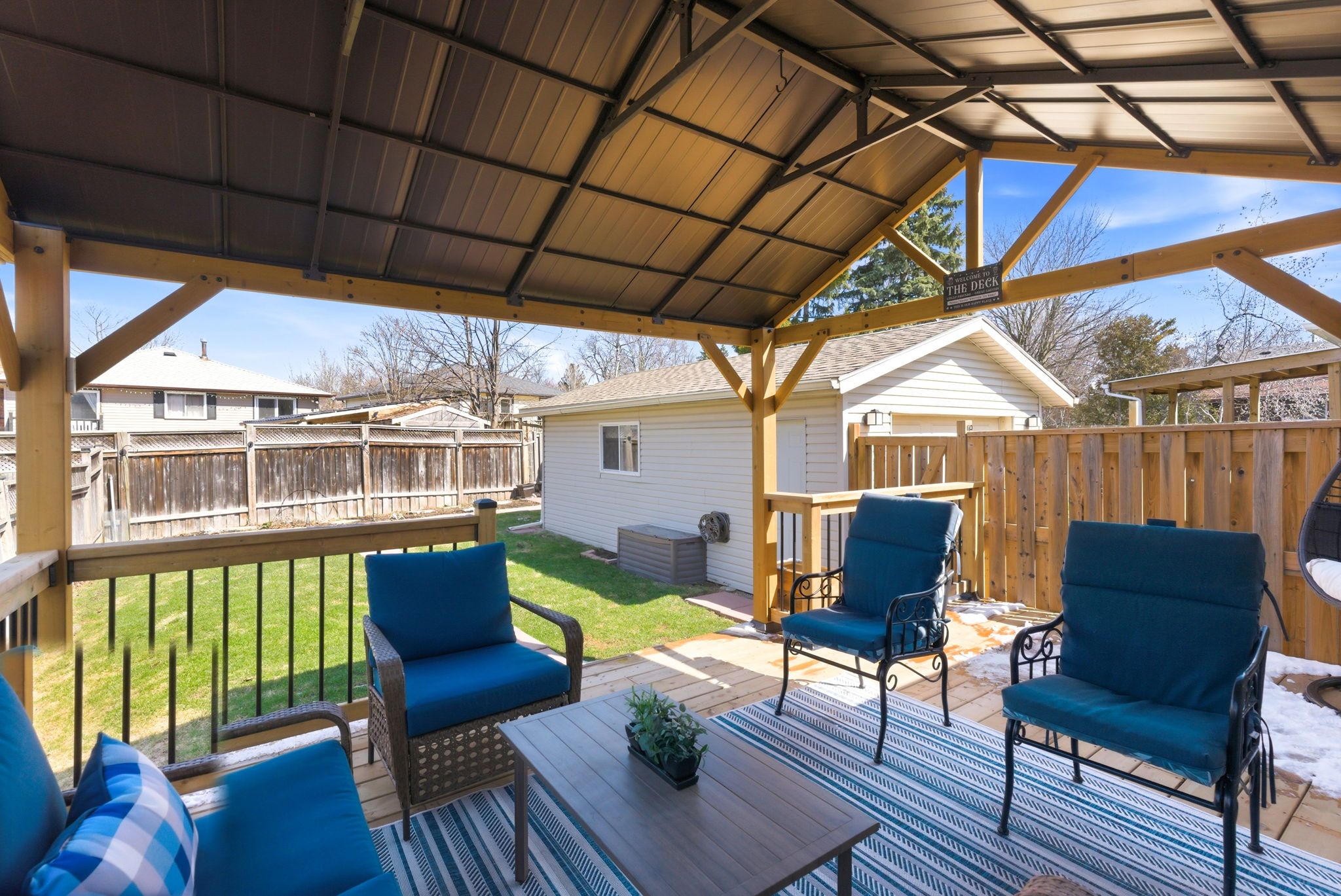 • Spacious fenced backyard with newly built deck and gazebo for outdoor fun.