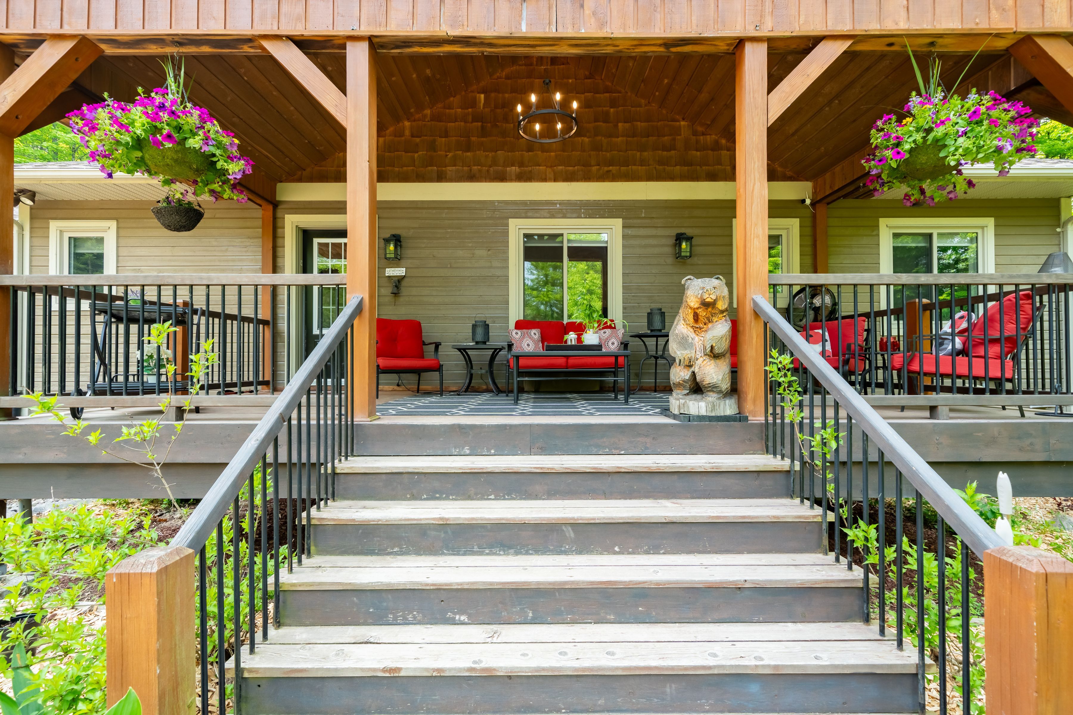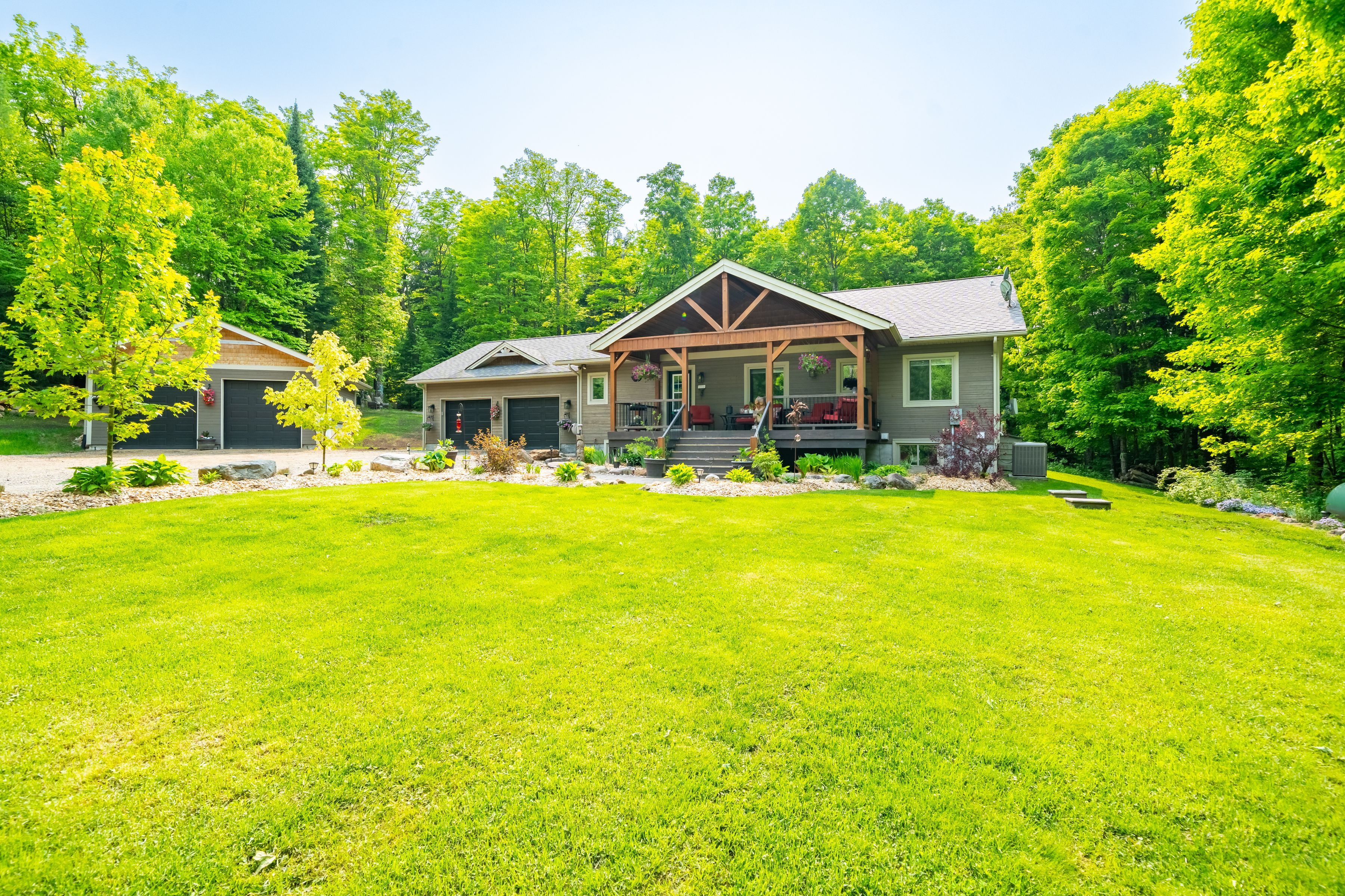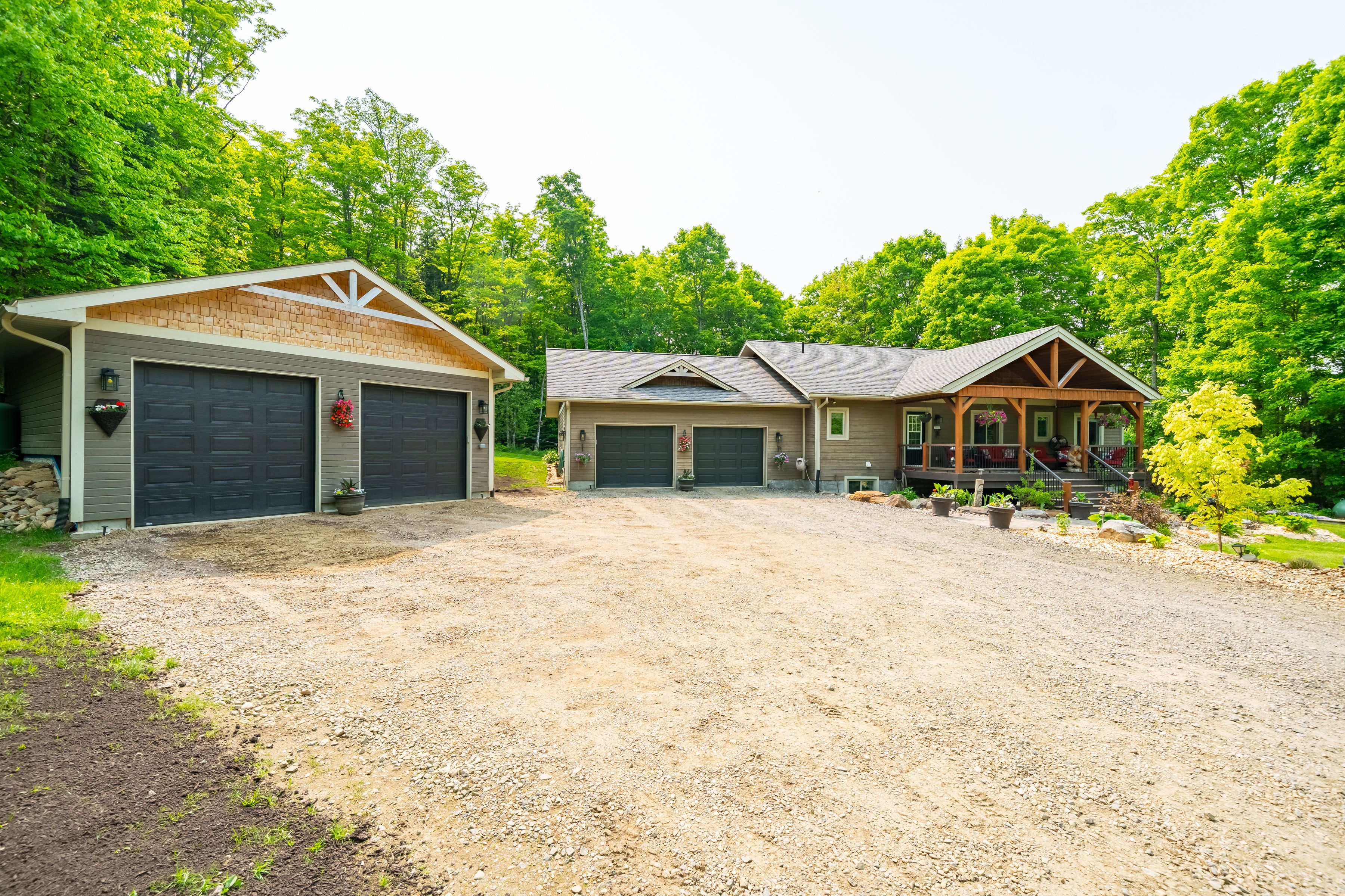 Wow! A lifestyle you've dreamed of for very affordable price!!! Rarely available private 5. 5 acres lot - where nature and comfort live in harmony, here life slows down and peace begins! Welcome to a rare gem that's more than just a home, it's a lifestyle. Charming, maintained with love and tucked away on a stunning, very private and peaceful 5. 5 acre lot, this charming bungalow offers full connection with nature with deer visiting your backyard from time to time and birdsong as your daily soundtrack. Step into your dream with this character-filled bungalow boasting 3+1 bedrooms & 3 full bathrooms, a layout perfect for comfort and flexibility. Approximately 3,000 sq ft of living space. The cathedral ceilings in the open-concept living area and kitchen create an airy, inviting space centred around a stunning gas fireplace, perfect for cozy evenings. The primary suite is a private retreat featuring a walk-in closet and a luxurious 5-piece ensuite overlooking serene greenery. Whether you're a car enthusiast or a collector of big toys - this property has room for it all! You'll be thrilled with the attached 27'6"x27' garage plus a newly built 24'x24' heated detached workshop/garage with concrete slab, ideal for year-round projects, storage, or hobbies. The finished basement offers a huge great room with a solid wood bar, large above-grade windows, an extra bedroom, and plenty of storage to customize for your needs. Pet parents, rejoice! A dedicated mudroom with a dog shower makes daily life cleaner, easier, and even more pet-friendly. Step outside to your stunning front and backyard oasis, where peace, privacy, and panoramic nature views await. Sip your morning coffee on the deck as the forest whispers around you, its pure paradise. Enjoy the convenience of dual driveways and easy commutes on fully paved roads. You're just a short drive to shopping, public beaches, lakeside golf club, groceries, and much more. This isn't just a move it's a rare opportunity!