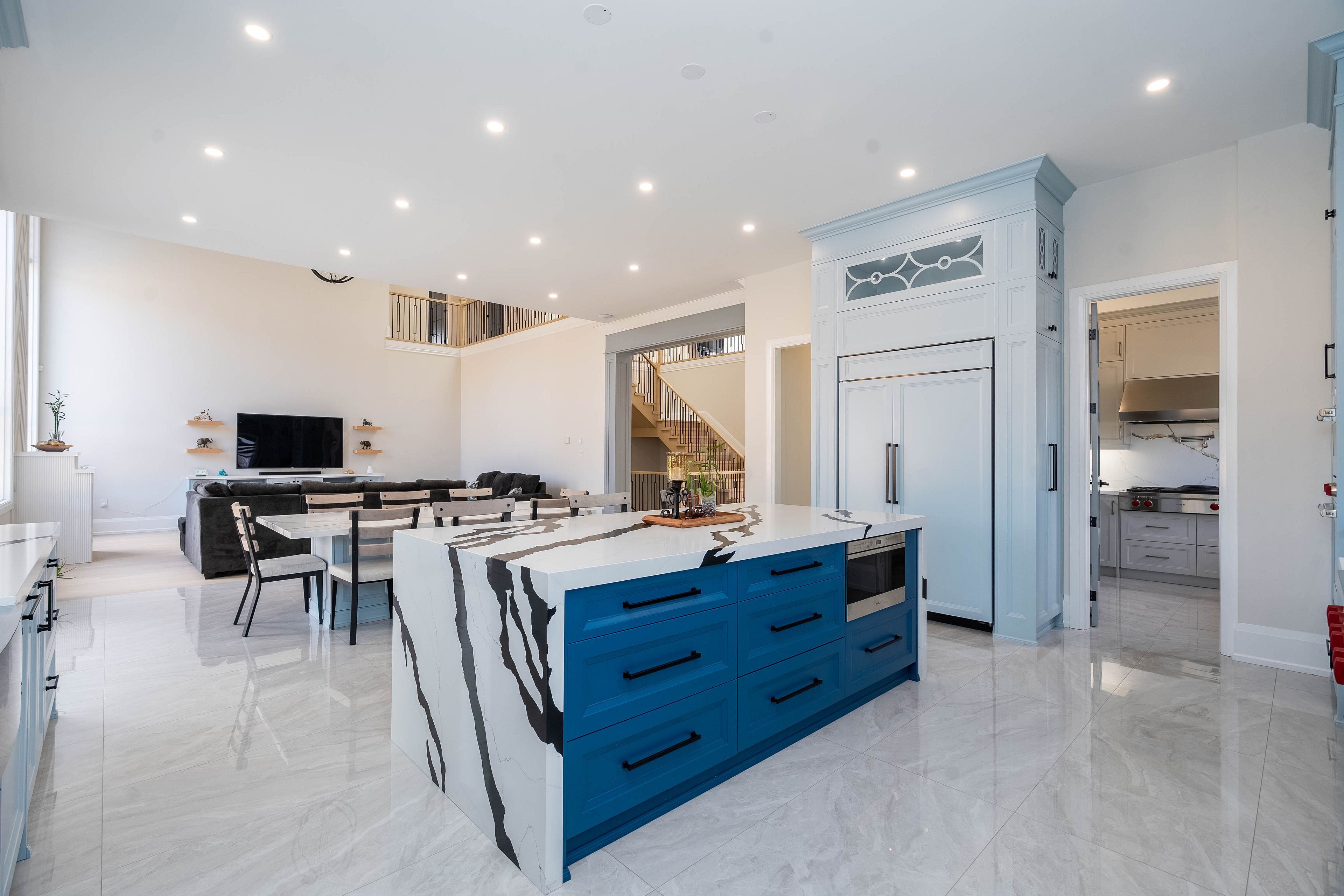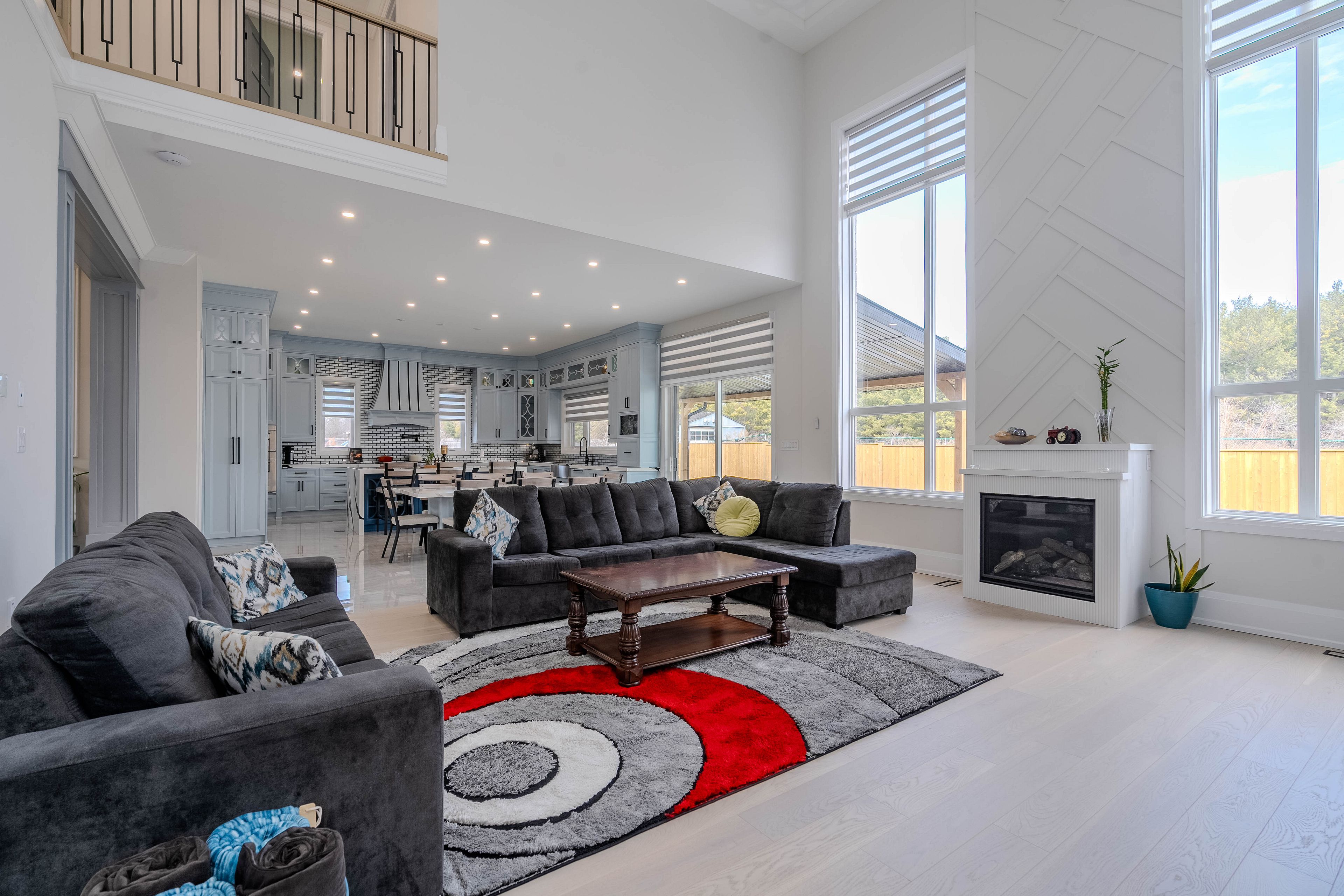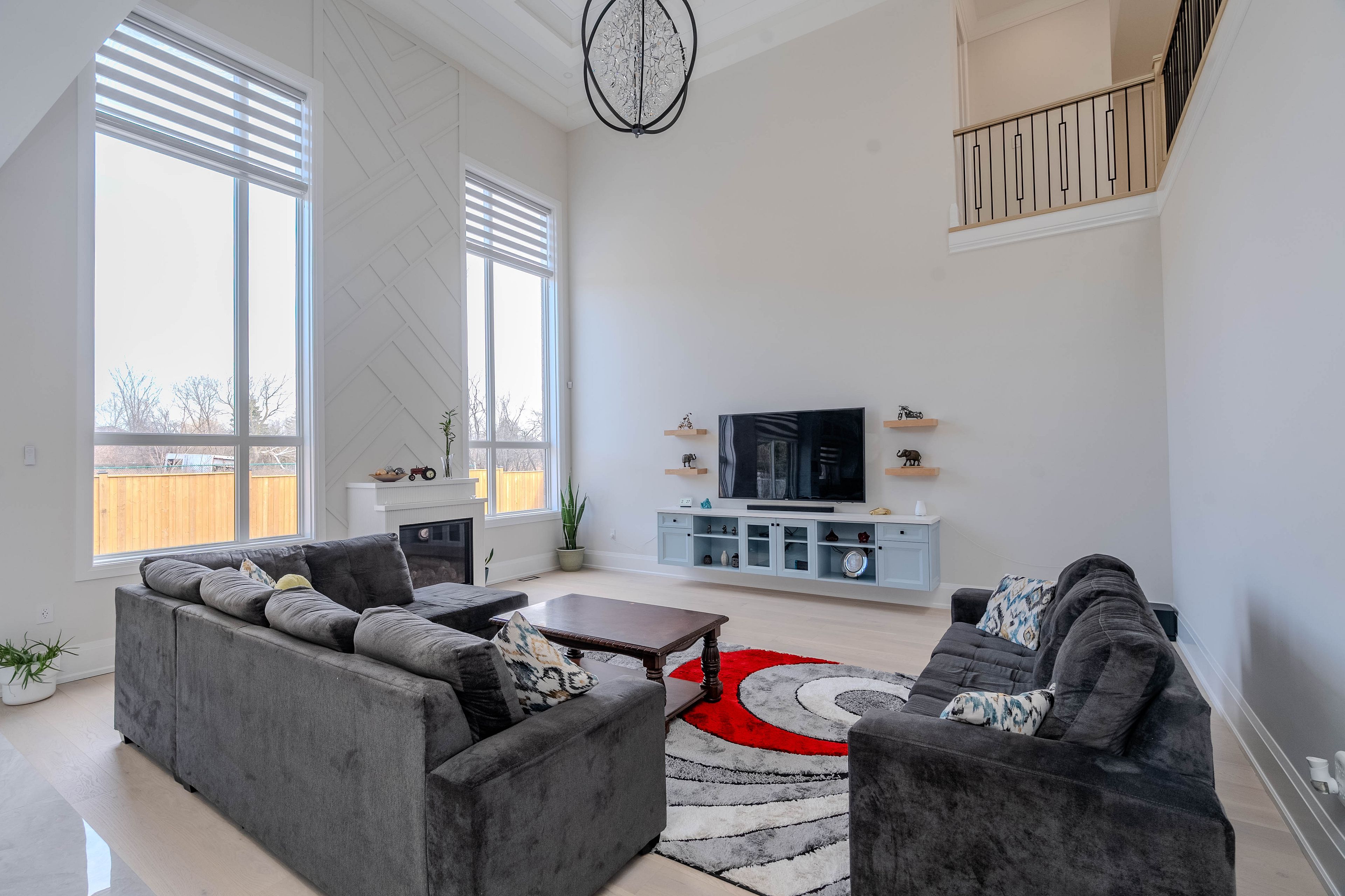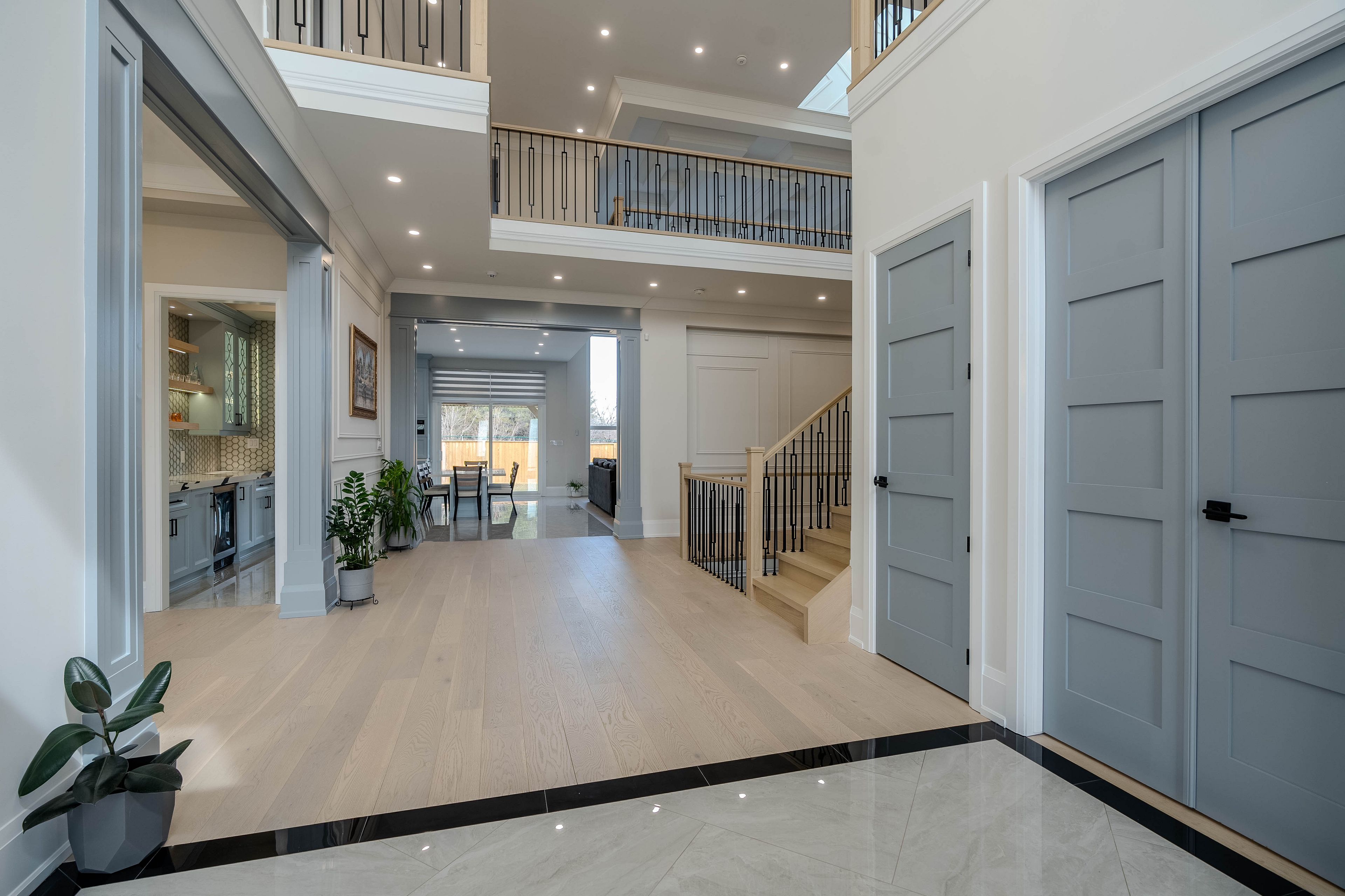 • Expansive living and family rooms feature impressive 20-foot ceilings.