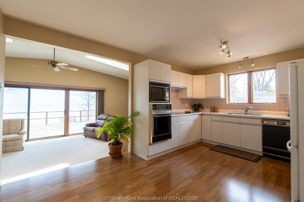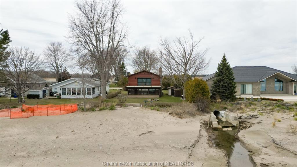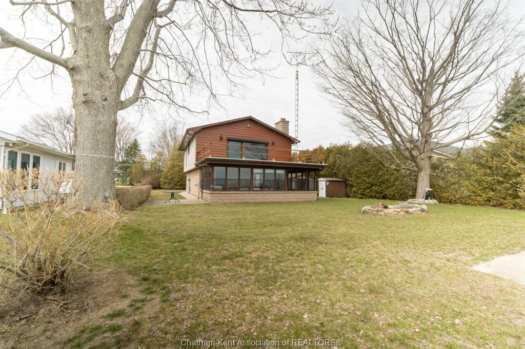 Don’t miss this rare opportunity to own a true beachfront paradise and start creating lifelong memories. This one-owner, charming raised bungalow offers the perfect blend of year-round lakefront living or an ideal summer getaway. Nestled along the shores of lake erie, you’ll enjoy breathtaking sunrises and the calming sounds of the waves right at your doorstep. Thoughtfully designed to showcase its incredible setting, the upper level features a bright kitchen, 2 bedrooms, 1 bathroom, and a stunning living room filled with natural light from elegant skylights. Step through the sliding patio doors—complete with a retractable storm shutter—onto the full balcony overlooking the yard and beach, an ideal spot for morning coffee or evening relaxation. The main level offers a 2nd bath, a spacious family room and a large sunroom, providing plenty of room to entertain or unwind while taking in the views. Additional highlights include an attached garage, generac backup system, central vacuum, and the convenience of municipal water. Recent improvements include freshly painted exterior wood siding, along with the garage door, entry door, and storm door, plus new shingles on the shed—adding both value and peace of mind. Step outside and find yourself just moments from your own stretch of beach. Whether it’s boating, fishing, or simply soaking up the sun, this property is a dream for water lovers. Located approximately one hour from windsor and london, and just three hours from the gta, this home offers the perfect escape from city life. Experience waterfront living at its finest!
