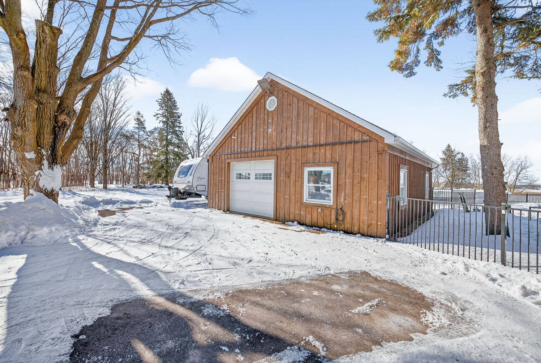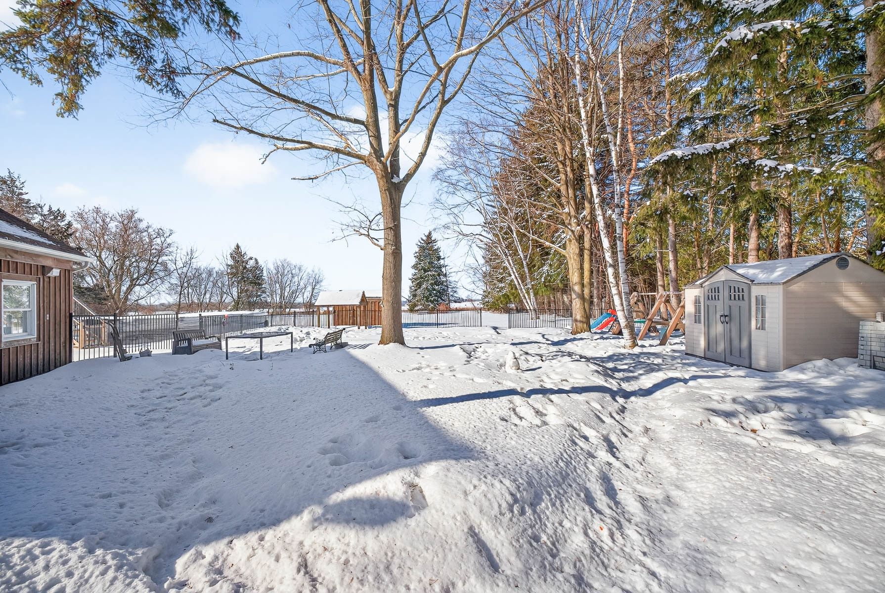 Situated on a generous lot surrounded by open farmland, this well maintained 4 bedroom, 2 bathroom home offers privacy, wide open views, and a calm retreat while remaining just minutes to major retailers, dining, and essential amenities. Inside, the home features a comfortable family living connects to the outdoor entertaining, gated playground and enjoying the expansive setting with the dream garage and additional workshop space. The main floor showcases hardwood flooring throughout the kitchen, and living areas, creating a warm and cohesive atmosphere. The dining room connects to a sunroom filled with natural light through large windows, while the living room overlooks the front yard and provides an inviting space for everyday relaxation. A main floor bedroom with a 3pc adds flexibility for guests, extended family, or multi generational living. Upstairs, the primary bedroom features broadloom flooring, a ceiling fan, and ample closet space. Two additional bedrooms include hardwood floors, double closets, and bright windows, offering comfortable accommodations for family members. The lower level presents a large recreation room with above grade windows, providing abundant space for family gatherings, a games area, home office, or gym. A notable highlight of the property is the approximately 900 sq ft detached garage/workshop, complete with radiant heating, an ideal space for entrepreneurs, tradespeople, hobbyists, or additional storage. Thoughtfully cared for and full of potential, this property delivers versatile indoor and outdoor living. Whether for a growing family, hobbyist, or those seeking extra space to live and work, this property offers a rare opportunity to enjoy space, flexibility, and convenience in one exceptional setting.
