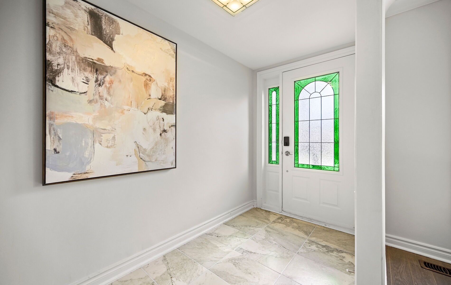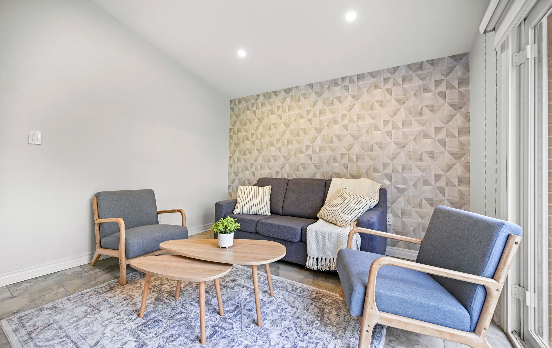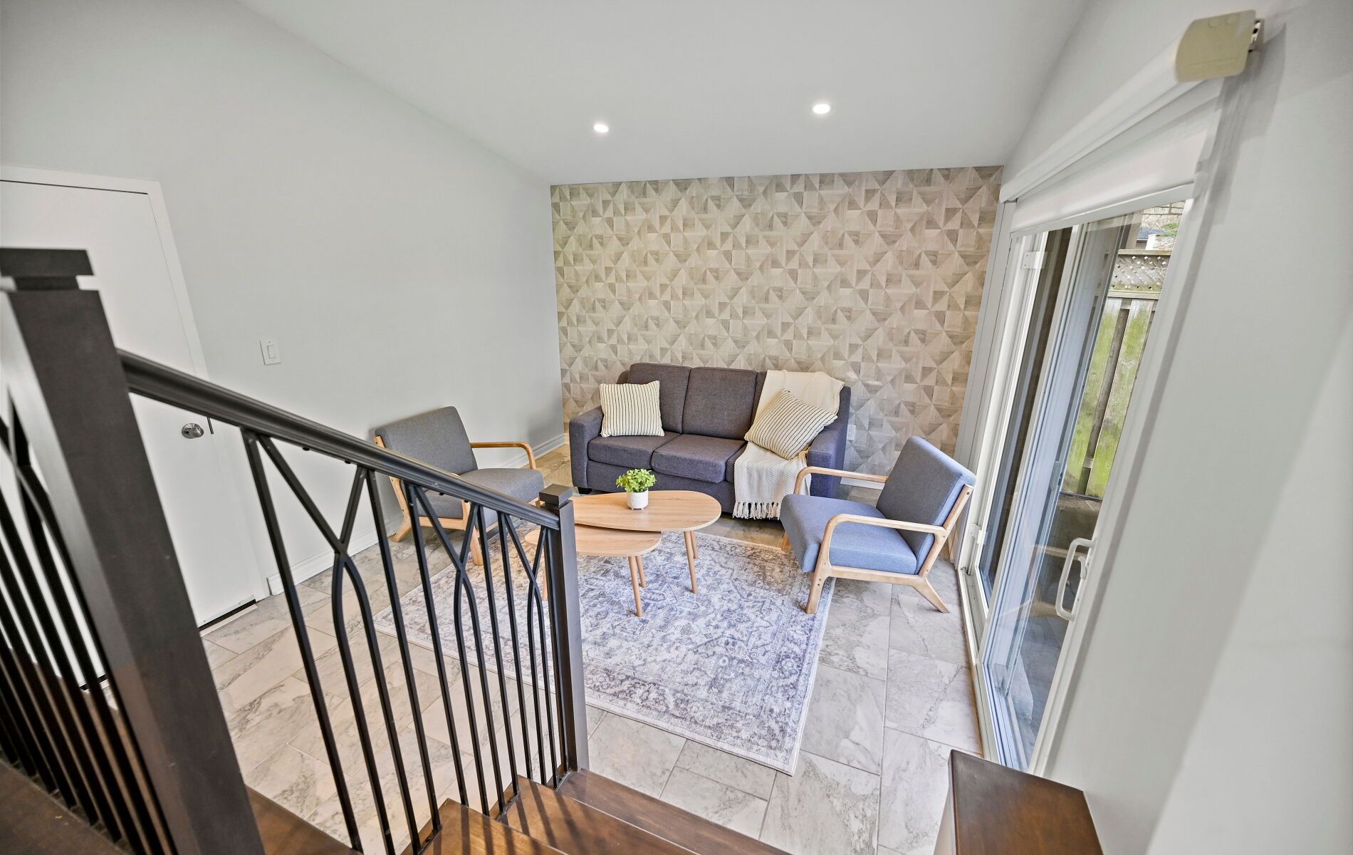 • Upgraded kitchen with stainless steel appliances and stylish herringbone backsplash.