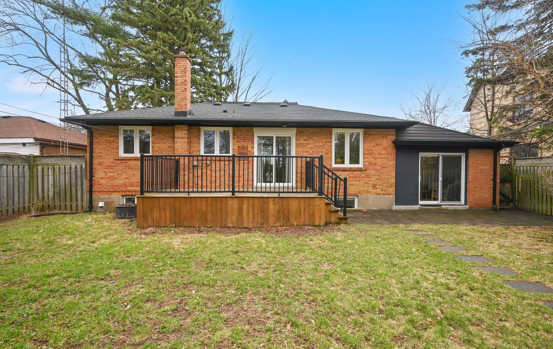 Shows 10/10! Welcome home to this beautifully renovated, sophisticated bungalow in bronte east, nestled among mature trees and ideally located near top-rated schools, parks, shopping, and everyday amenities. Offering generous living space, this bright and inviting home features 3+3 bedrooms and 3 bathrooms, along with a thoughtfully designed open-concept main floor. Large windows fill the space with natural light, highlighting the upgraded kitchen complete with stainless steel appliances and a stylish herringbone backsplash. The spacious dining area provides direct access to the back deck and overlooks the family room, which features a walkout to a beautiful stone patio perfect for entertaining. The main level also includes a spacious living room open to the dining area, enhanced with elegant wainscoting, crown moulding, and pot lights throughout. The fully finished basement adds incredible versatility, showcasing a stunning fireplace feature wall, a convenient kitchenette ideal for a guest or in-law suite, and an additional large room with a walk-in closet. Situated on a large, private lot with parking for up to six vehicles, this property also offers excellent potential for future development.