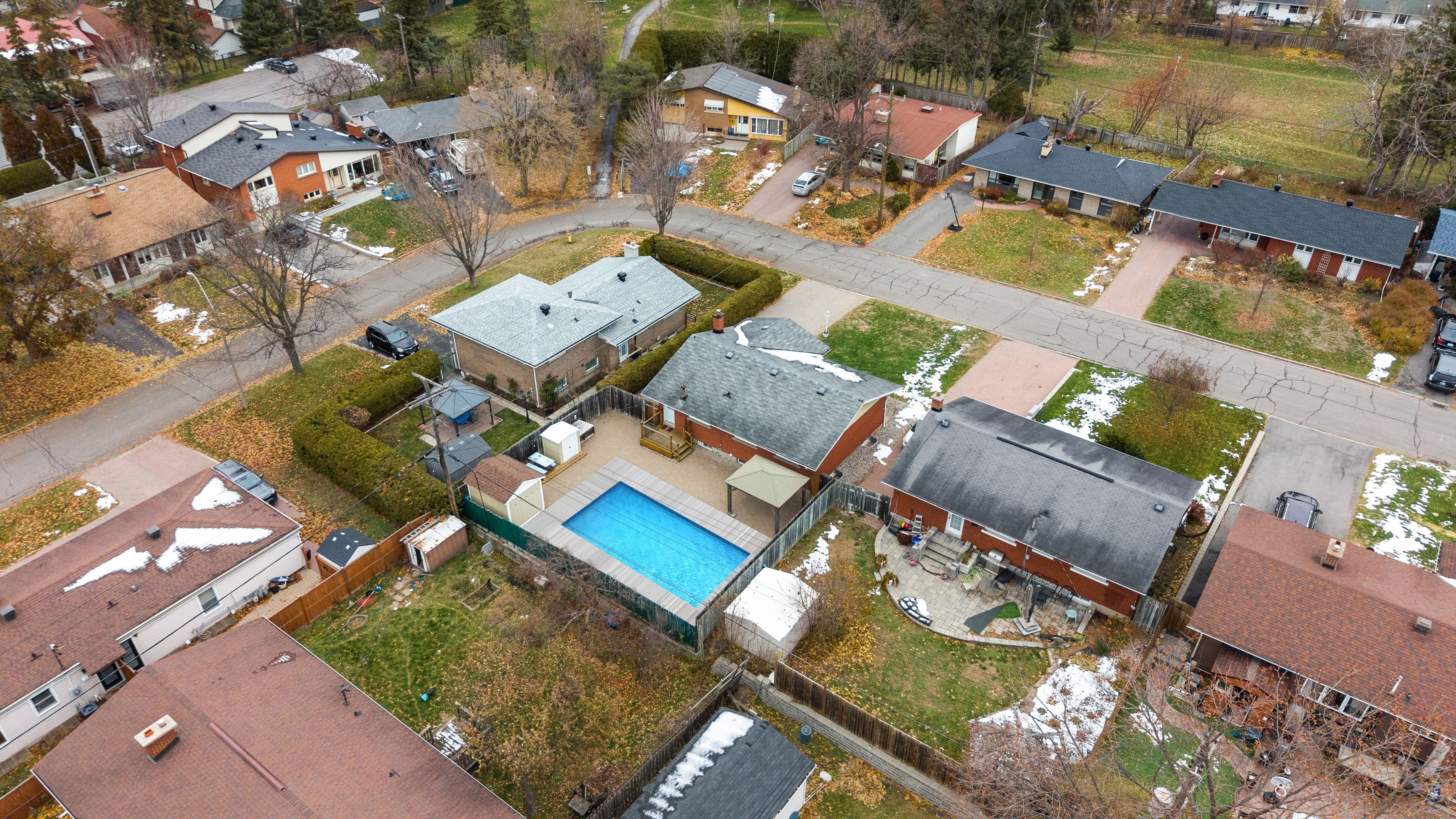 Welcome to 1208 stanton road, a well-kept all-brick bungalow offering 3 bedrooms, 2 bathrooms, and a private backyard retreat complete with an inground pool. The main level features a bright living and dining area, an updated kitchen with granite counters and modern cabinetry, and three comfortable bedrooms alongside a refreshed full bathroom. Hardwood and tile flooring are found throughout the principal living spaces. The finished lower level adds valuable living area with a spacious recreation room, a two-piece bathroom, laundry, and ample storage. The fenced backyard is ideal for relaxation and entertaining, offering a heated inground pool, deck, stone patio, and storage shed. Located in a family-friendly neighbourhood close to parks, schools, shopping, transit, and major amenities including bayshore mall, ikea, highway 417, and the queensway hospital. A terrific opportunity in a convenient central location!