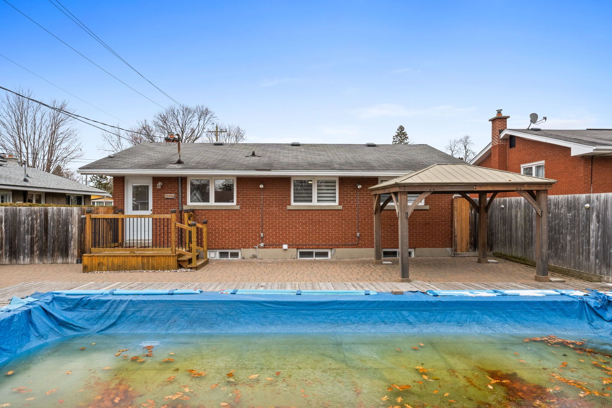 Welcome to 1208 stanton road, a well-kept all-brick bungalow offering 3 bedrooms, 2 bathrooms, and a private backyard retreat complete with an inground pool. The main level features a bright living and dining area, an updated kitchen with granite counters and modern cabinetry, and three comfortable bedrooms alongside a refreshed full bathroom. Hardwood and tile flooring are found throughout the principal living spaces. The finished lower level adds valuable living area with a spacious recreation room, a two-piece bathroom, laundry, and ample storage. The fenced backyard is ideal for relaxation and entertaining, offering a heated inground pool, deck, stone patio, and storage shed. Located in a family-friendly neighbourhood close to parks, schools, shopping, transit, and major amenities including bayshore mall, ikea, highway 417, and the queensway hospital. A terrific opportunity in a convenient central location!