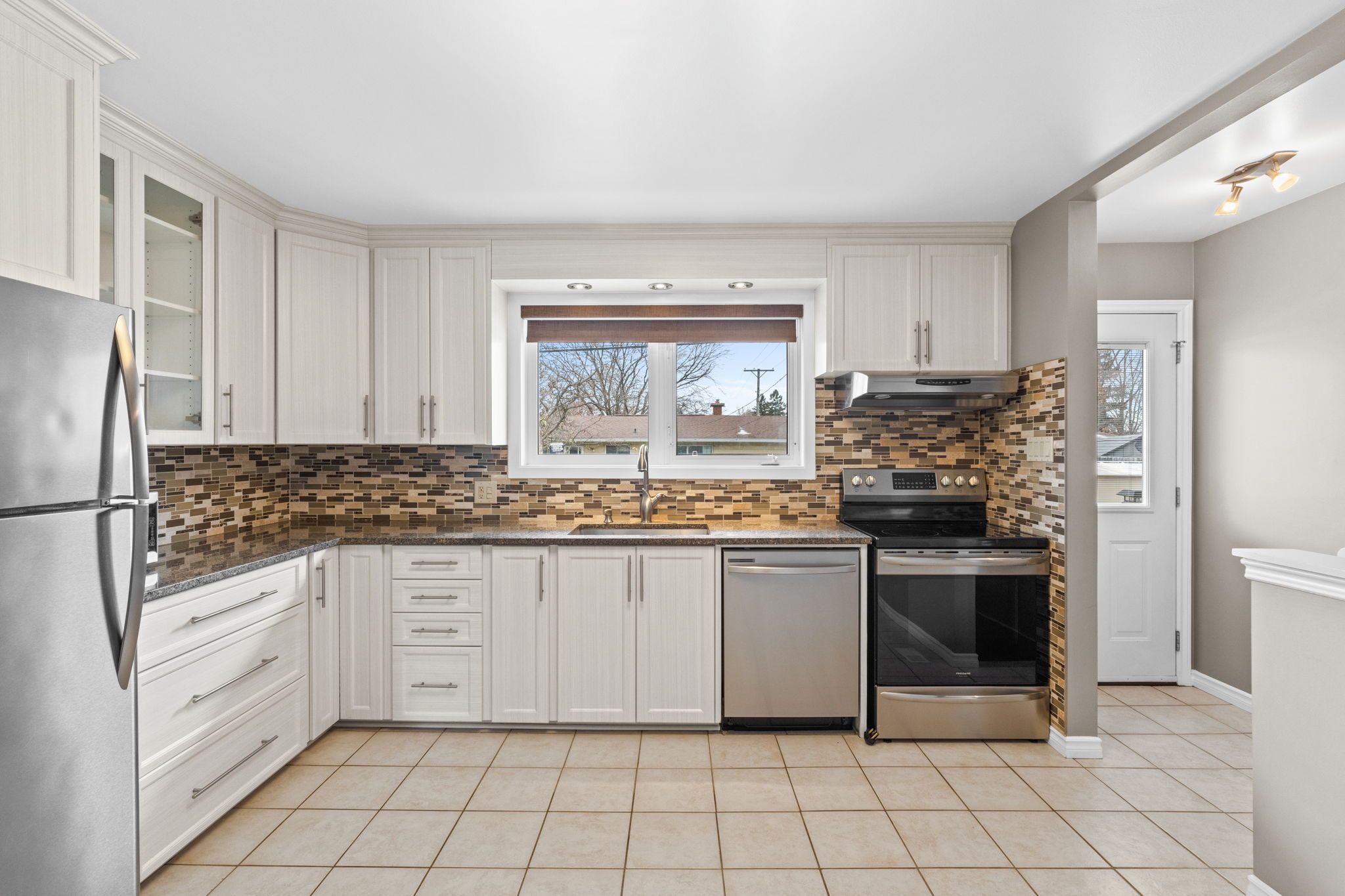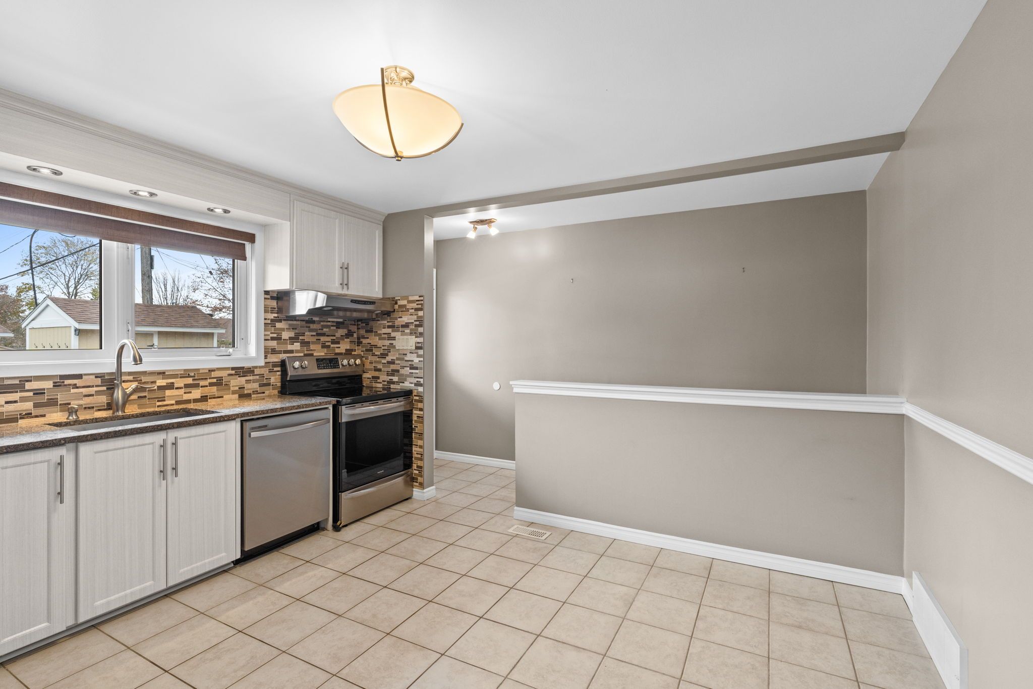 • Bright living and dining area with updated kitchen and modern finishes.