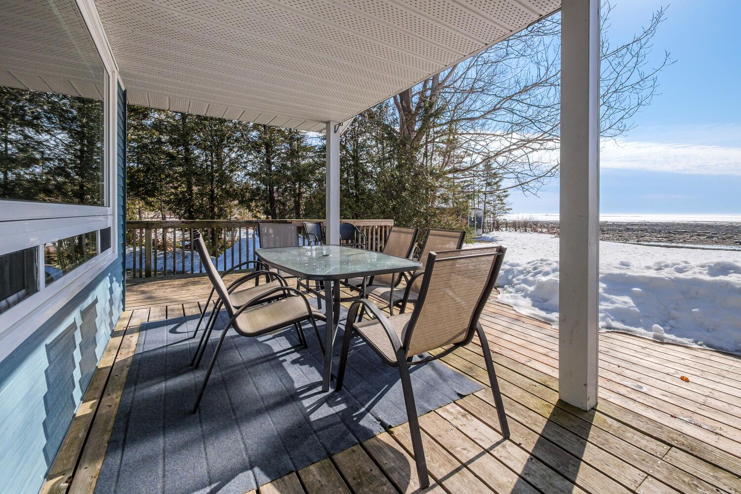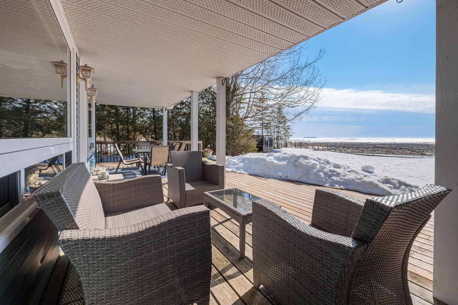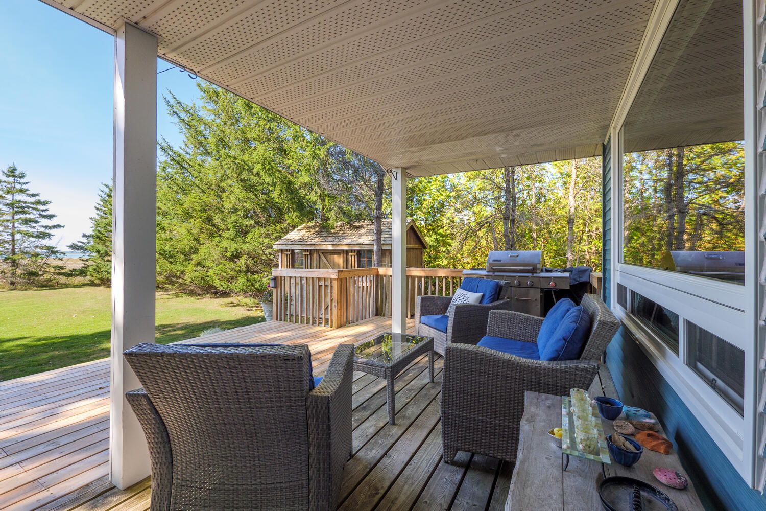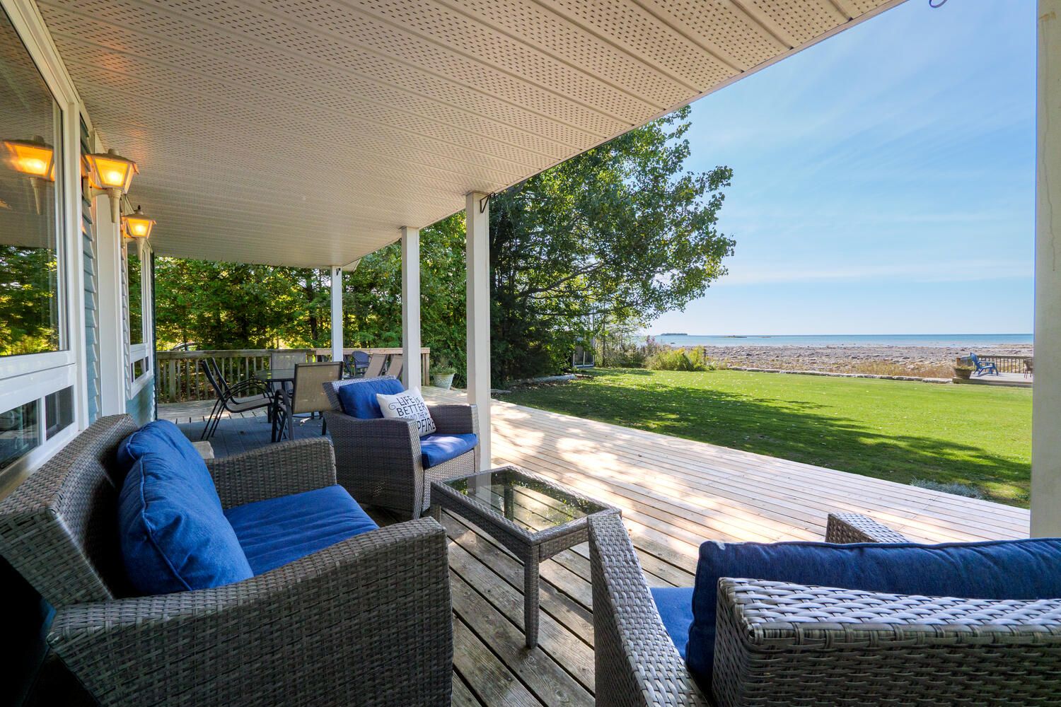 • Covered deck perfect for outdoor dining and gatherings by the water.