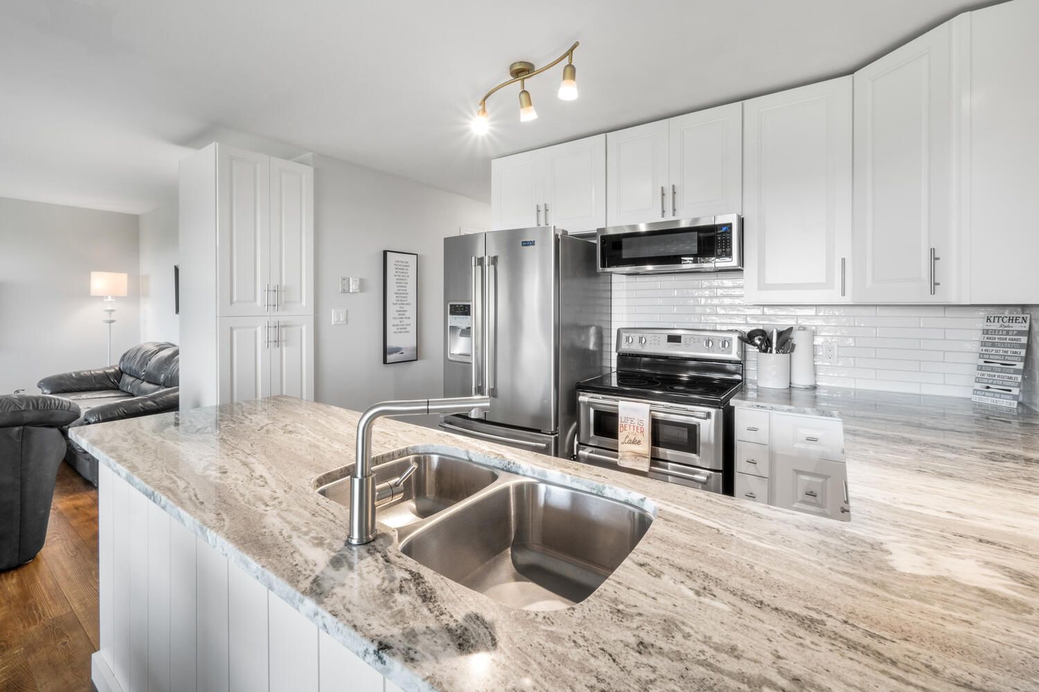 • Bright, open-concept layout with large windows for stunning lake views.