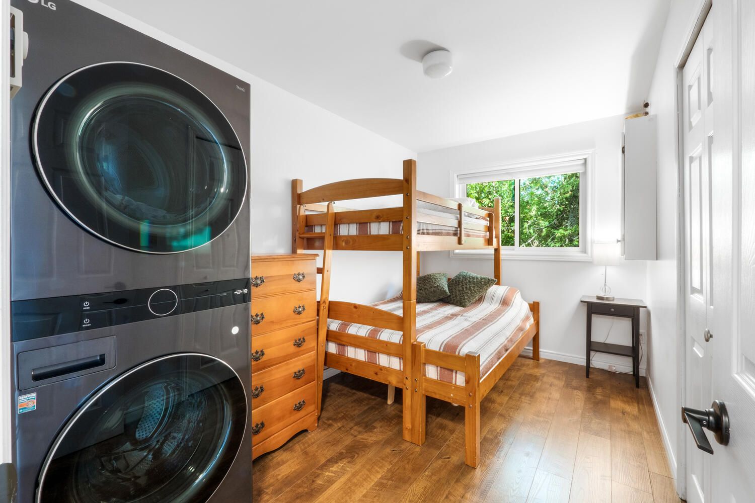 • Flexible main floor bedroom with laundry, great for home office.