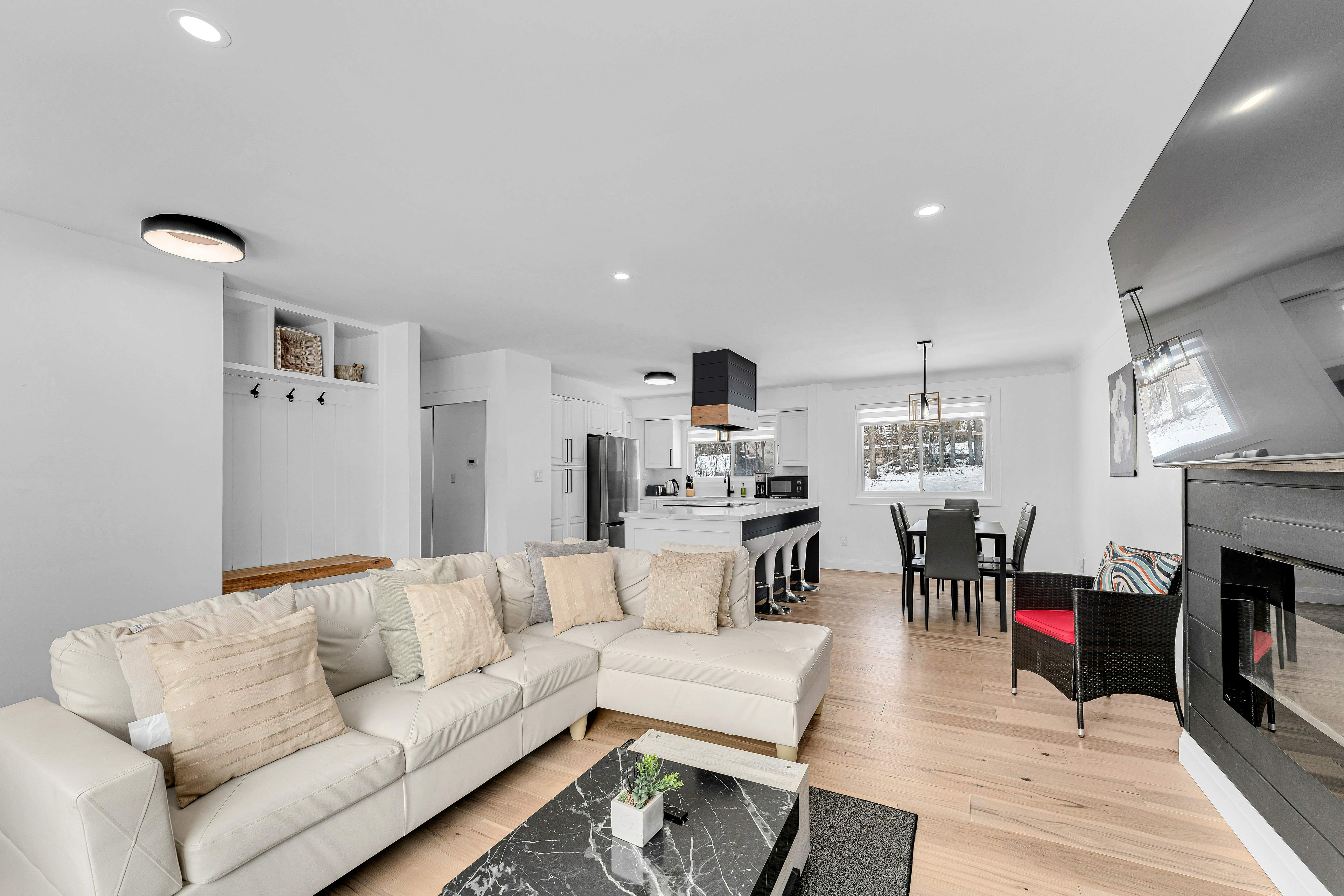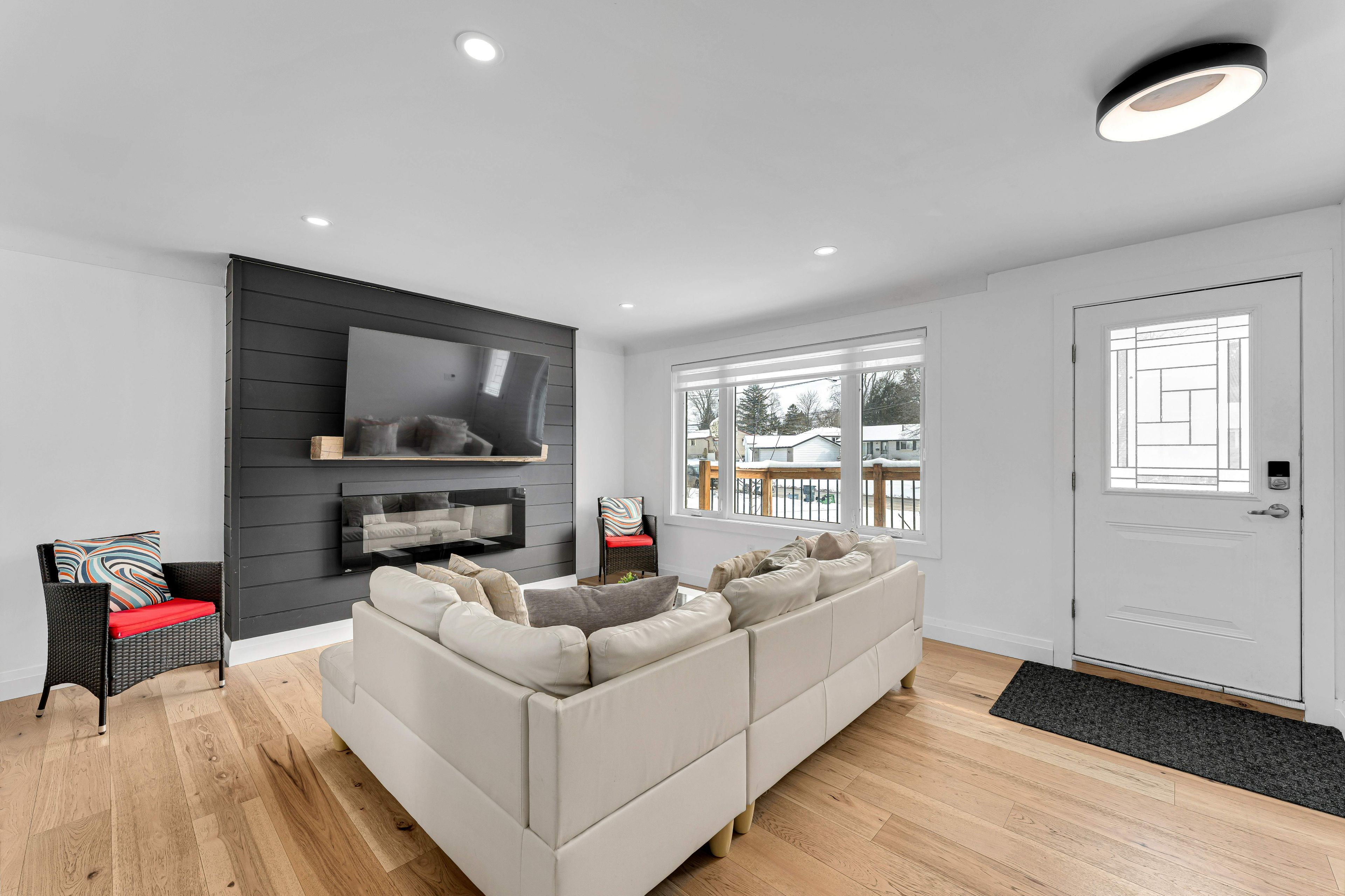 Welcome to 1209 lincoln drive - a turnkey treasure in kingston's west end - currently operating as an airbnb! Stylish, spacious, and smartly updated, this west-end bungalow is more than just move-in ready, it's made for modern living. Whether you're a first-time buyer, investor, or looking to downsize without compromise, this home checks all the boxes. Step into the open concept main floor, where an expanded foyer leads to a stunning living space with custom built-ins, a cozy fireplace wrapped in shiplap, and wide plank engineered hardwood. The kitchen is a true showpiece with gleaming quartz counters, crisp white cabinetry, an oversized island with seating, and a designer range hood that commands attention. Three generously sized bedrooms each feature unique accent walls and ample storage, while the sleek main bath impresses with stylish tile work and a polished finish. Downstairs, discover a fully finished in-law or income suite with a private entrance. This level includes two bedrooms, a modern 3-piece bath with a walk-in shower, its own full kitchen with quartz countertops, exclusive laundry, and plenty of bright, comfortable living space. Outside, summer awaits! Host friends on the back deck, gather around the new fire pit, and enjoy a thoughtfully landscaped yard complete with a custom outdoor feature wall. Bonus: new roof in 2023 and an oversized double garage for all your storage or hobby needs.