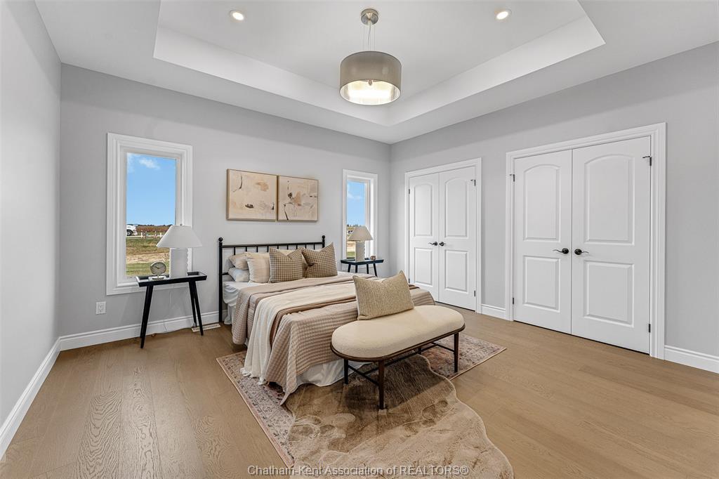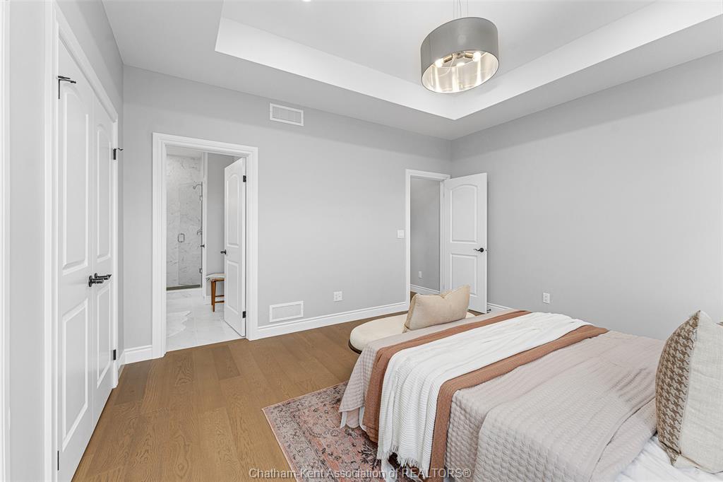 • Primary bedroom has ensuite with roman glass shower for added comfort.