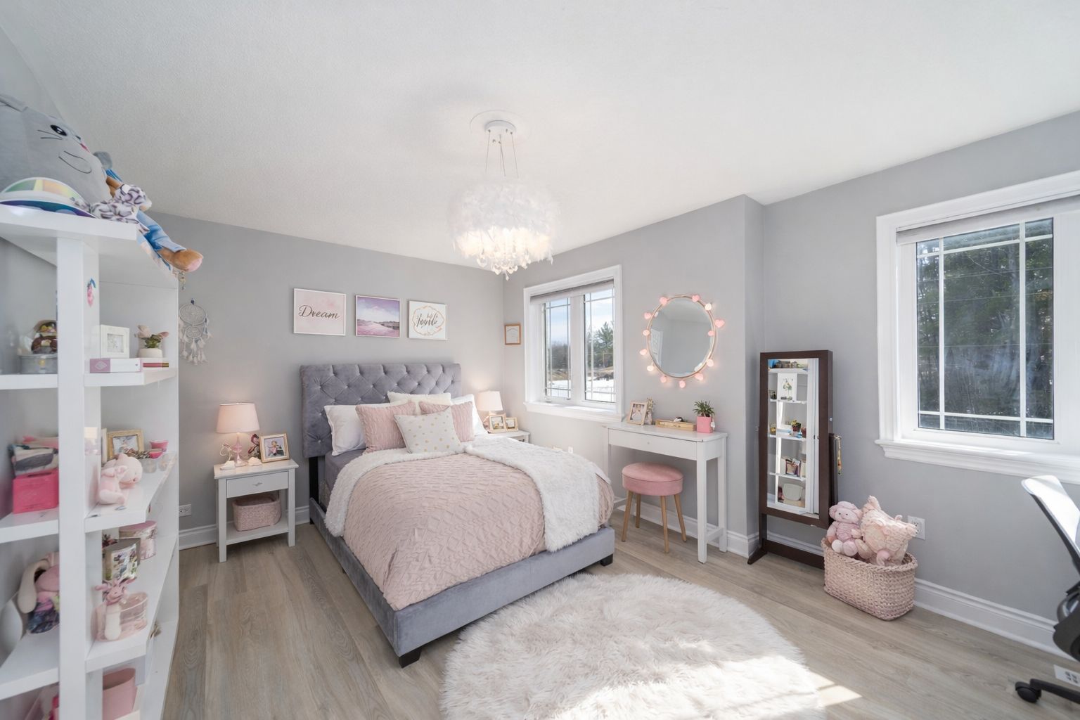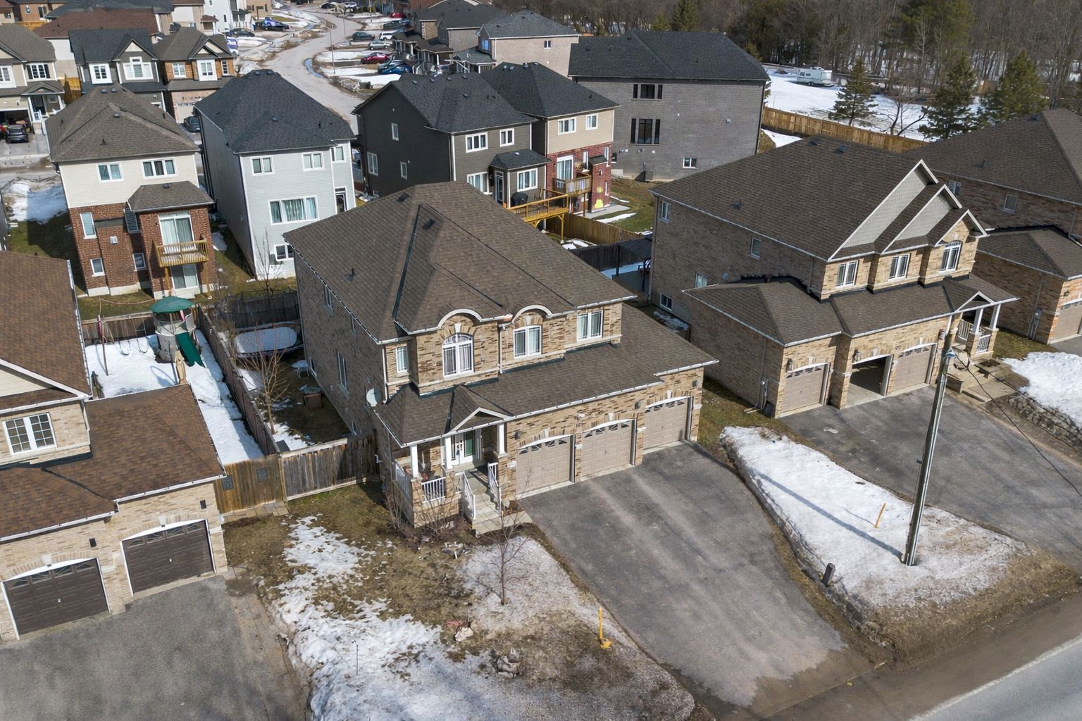 *** open house saturday march 14 1-3pm. Fabulous fully finished 2-storey all-brick home with a triple-car garage set on an impressive 60' wide lot. This beautifully maintained 5 bedroom and 5 bathroom home features pristine hardwood floors throughout and a stunning hardwood staircase, showcasing pride of ownership from top to bottom. Designed for family living, the spacious eat-in kitchen offers a large island and overlooks the open-concept family room complete with a cozy gas fireplace. The fully finished lower level features enlarged egress windows, a wet bar with extensive cabinetry, a large recreation room, an additional bedroom, and a 4-piece bathroom-perfect for guests or extended family. Ideally located in a fantastic family-friendly community close to parks, schools, and shopping, with convenient commuter access to base borden and highway 400. Approximately 3,415 finished sq. Ft.