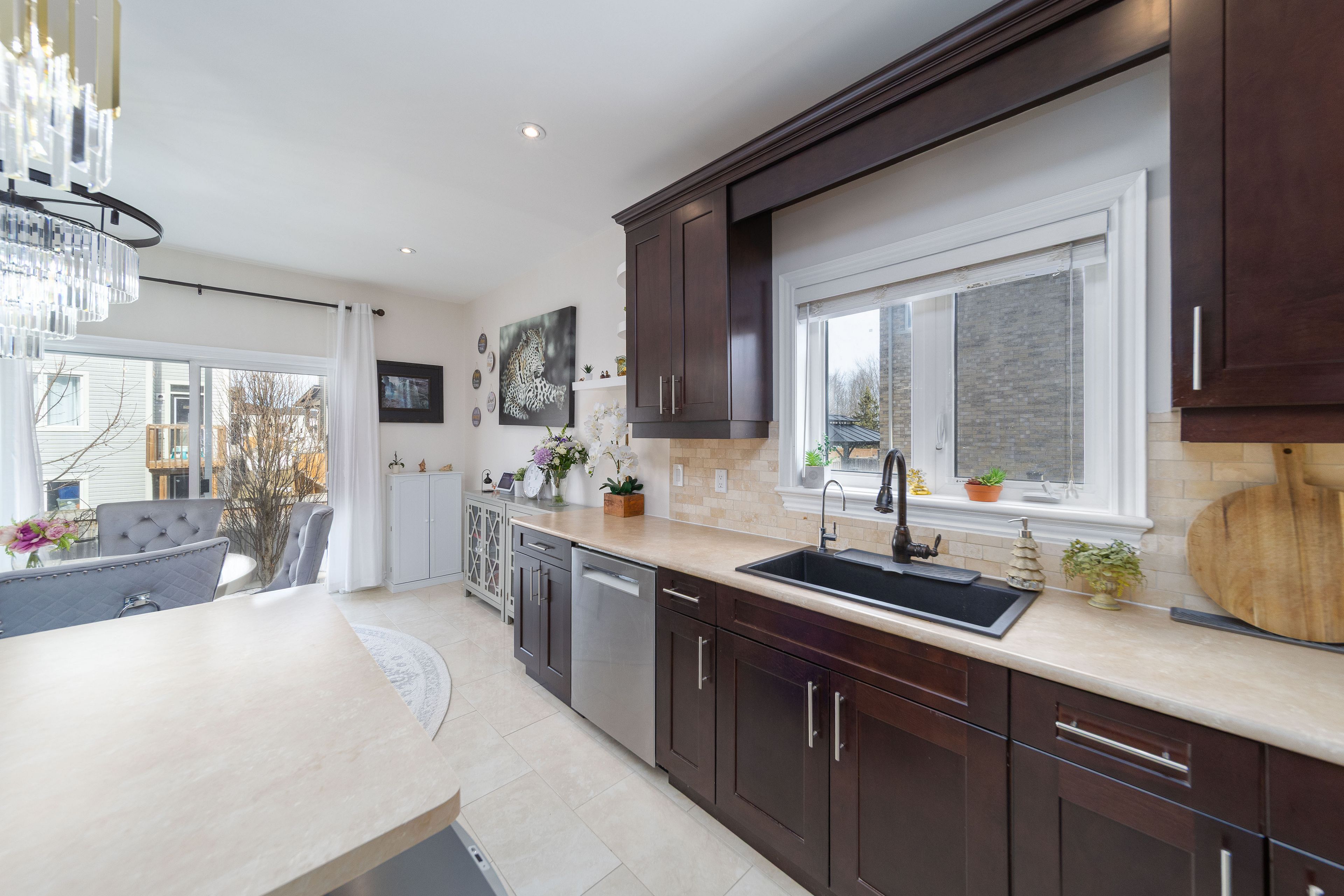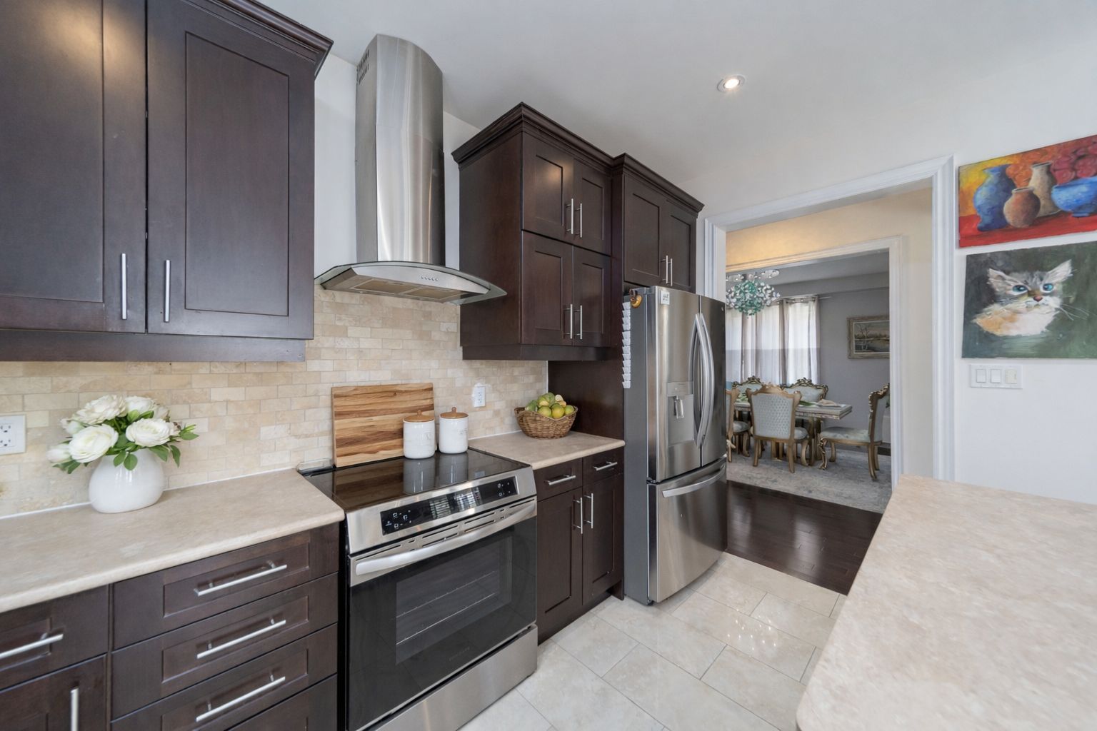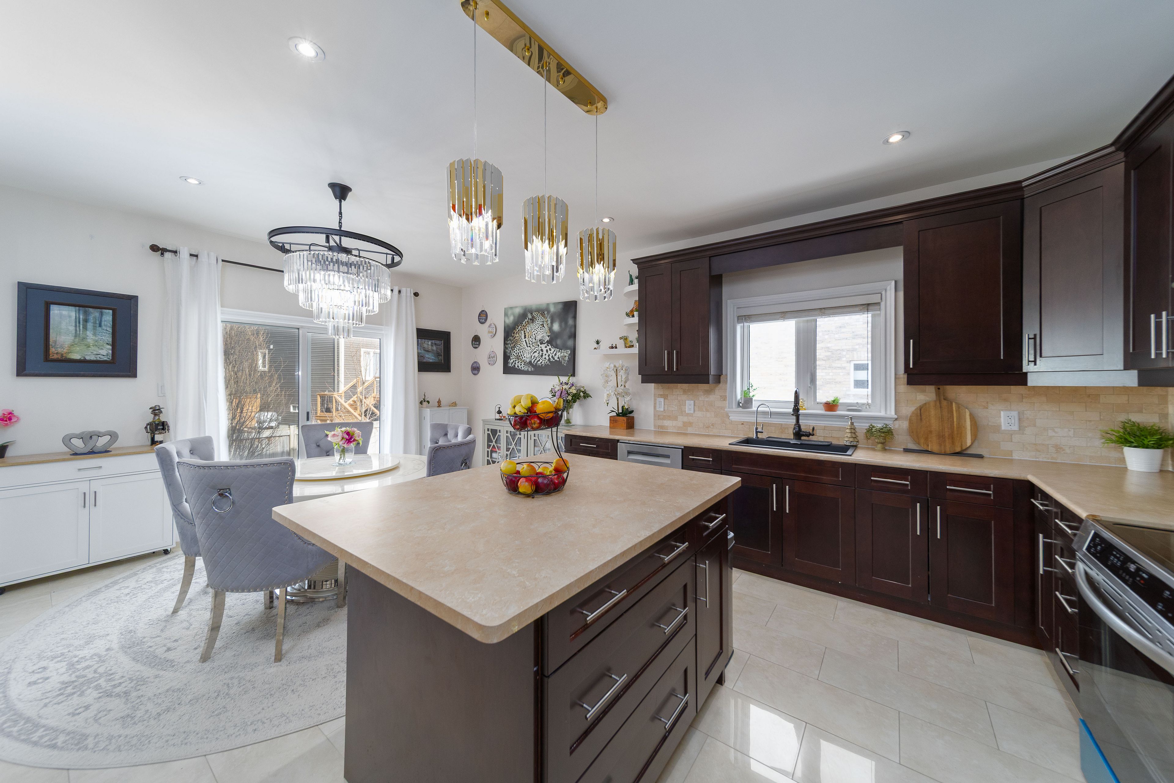 • Spacious eat-in kitchen with a large island and open-concept design.