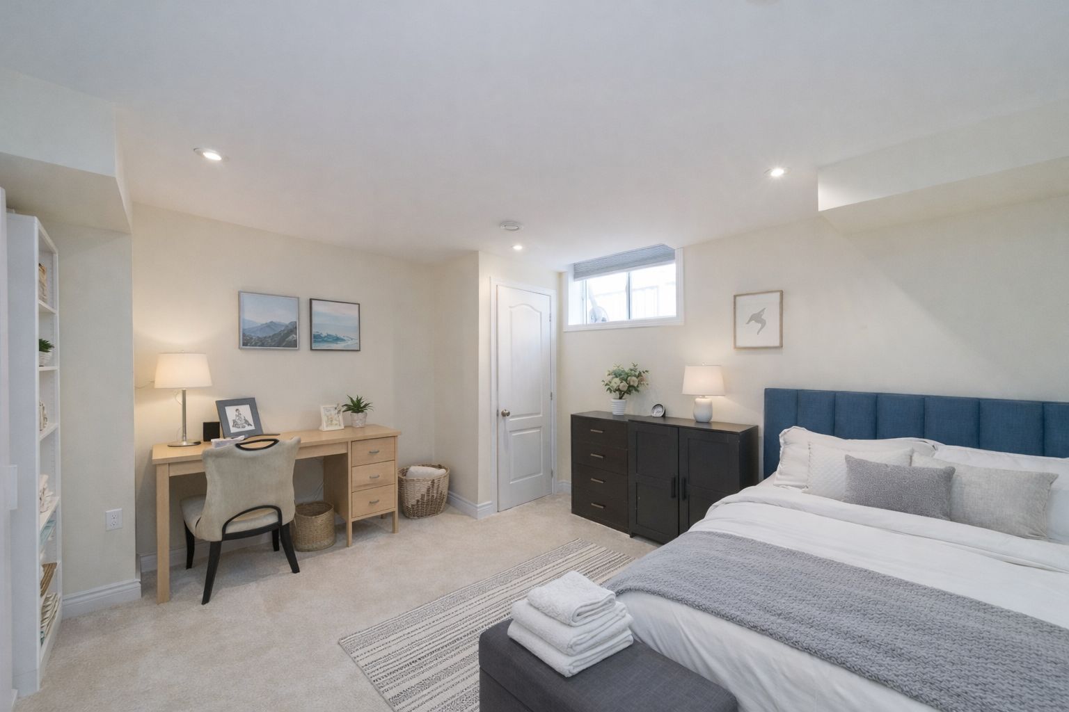 • Finished lower level offers extra bedroom, wet bar, and recreation room.