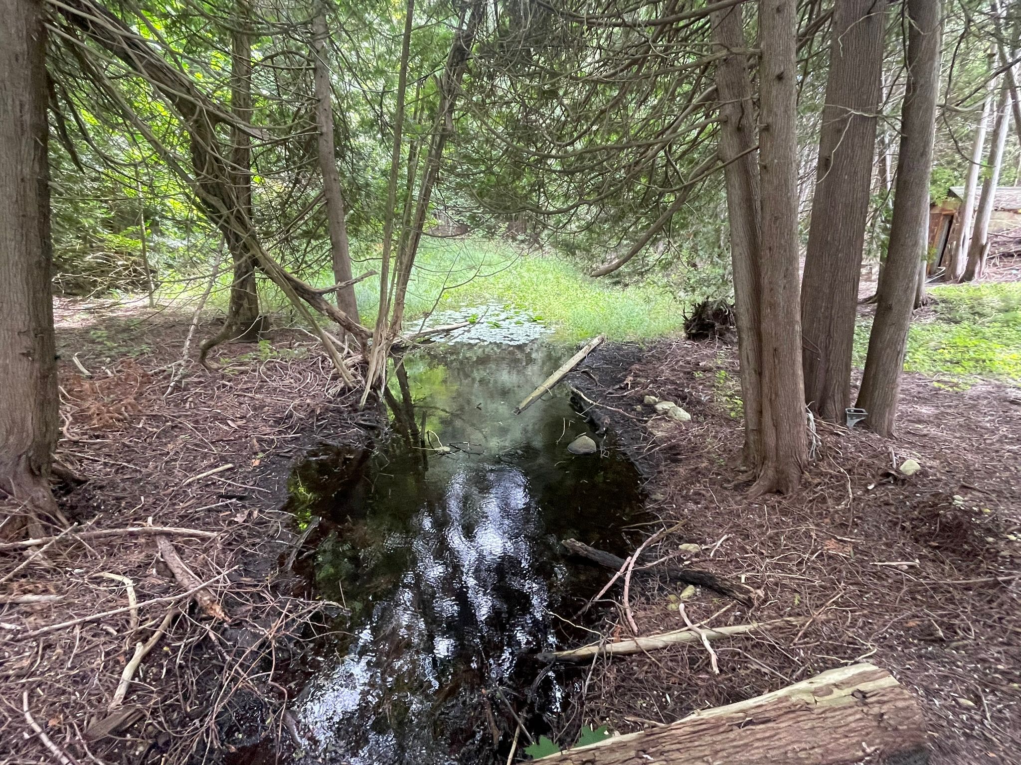 11 acres of bush with trails and a 2 acre pond on the edge of flesherton. Tucked in the trees with glimpses of the pond is a 1450 square foot home with good natural light, open living spaces and decorative exposed beams. There is one bedroom and a full bath on the main level. The open stairway leads to a bright loft area suitable for an office or sleeping space, as well as 2 more bedrooms, one with a 2 piece ensuite. The basement has lots of storage, the natural gas furnace, water system and laundry area. There is a fenced in yard between the home and the 18x25 shed. Good, wide trails through the cedar and hardwood bush provide endless recreational activities on the property. Walking distance to flesherton for schools and unique shops. Centrally located to enjoy all things grey county: skiing, beaches, beaver valley, lake eugenia, bruce trail and more.