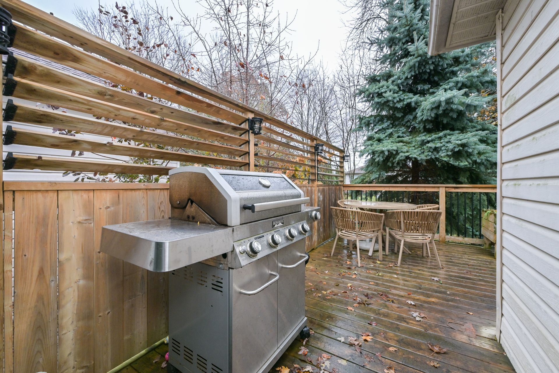 • Back deck surrounded by trees, great for outdoor dining and privacy.
