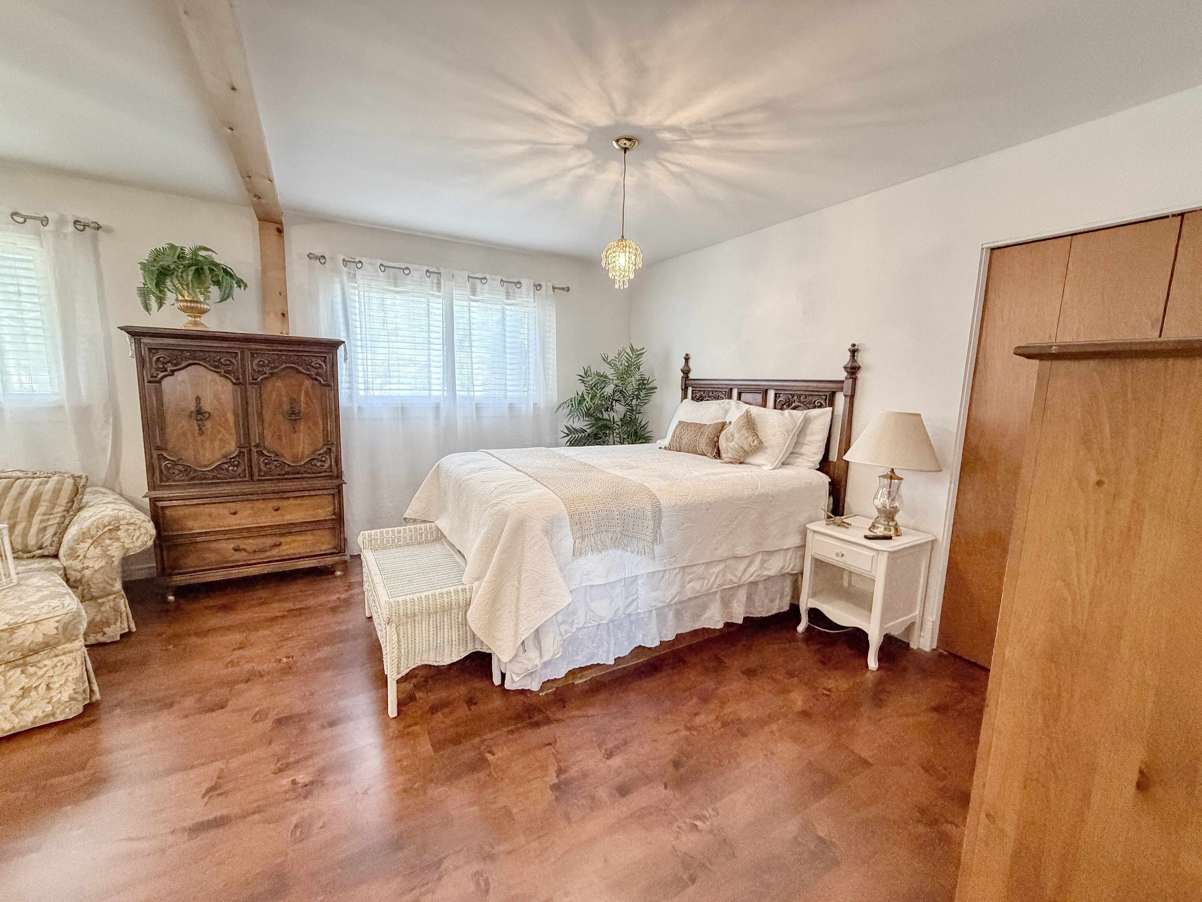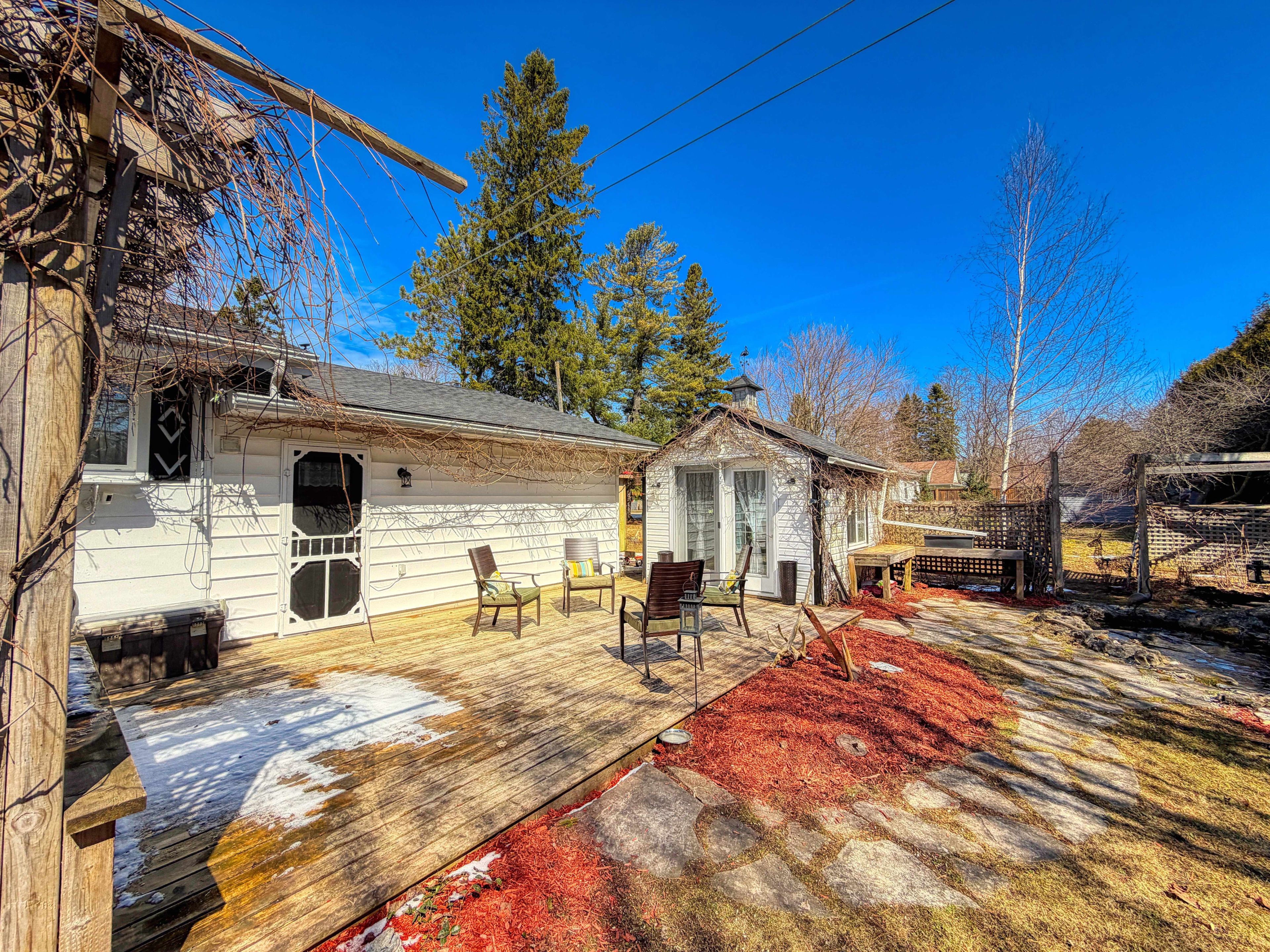 This lovely two-bedroom bungalow sits on an oversized 104-foot-wide lot in a quiet, desirable area of southampton. The home has been freshly updated and features forced-air natural gas heating and copper plumbing throughout. A bright walkout leads to a spacious, fully enclosed sun porch, perfect for relaxing and enjoying the outdoors. The backyard is beautifully landscaped with mature trees, lush bushes, perennial gardens, and a charming koi pond, creating a peaceful retreat. A garden shed provides convenient storage for tools and equipment, while a fully insulated backyard studio or bunkie with power offers additional versatile space. The home also includes an attached garage with direct entry into the house, and a double-wide concrete driveway with parking for up to four vehicles. This home is vacant and move in ready!