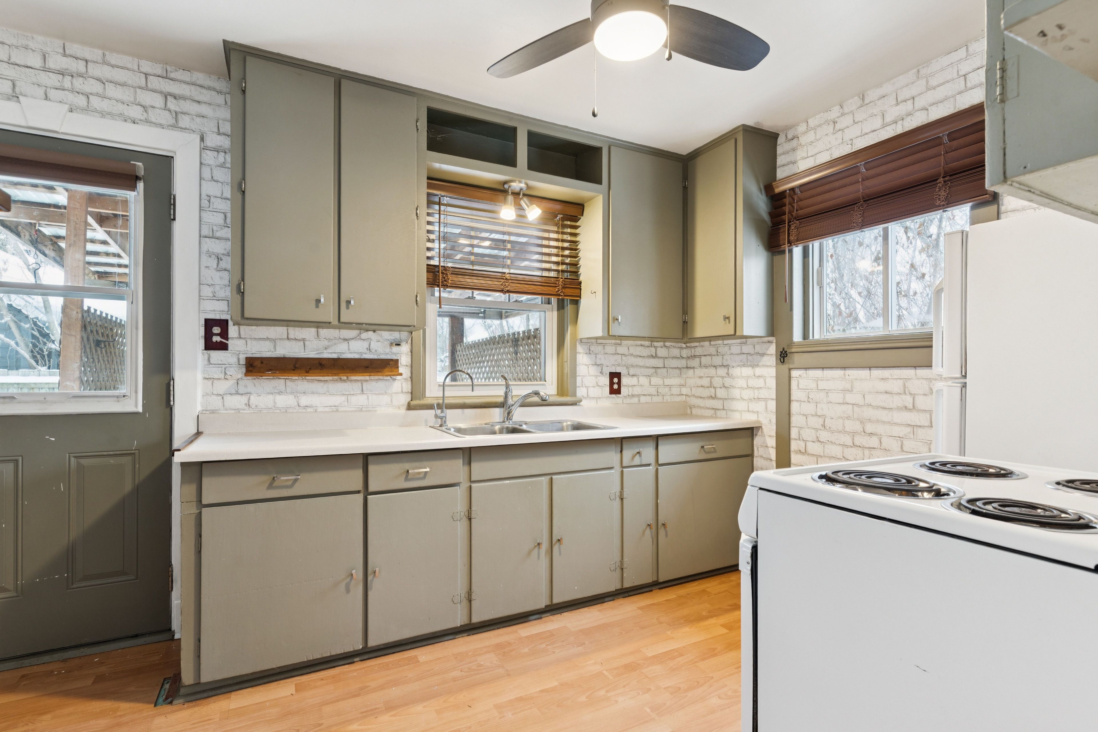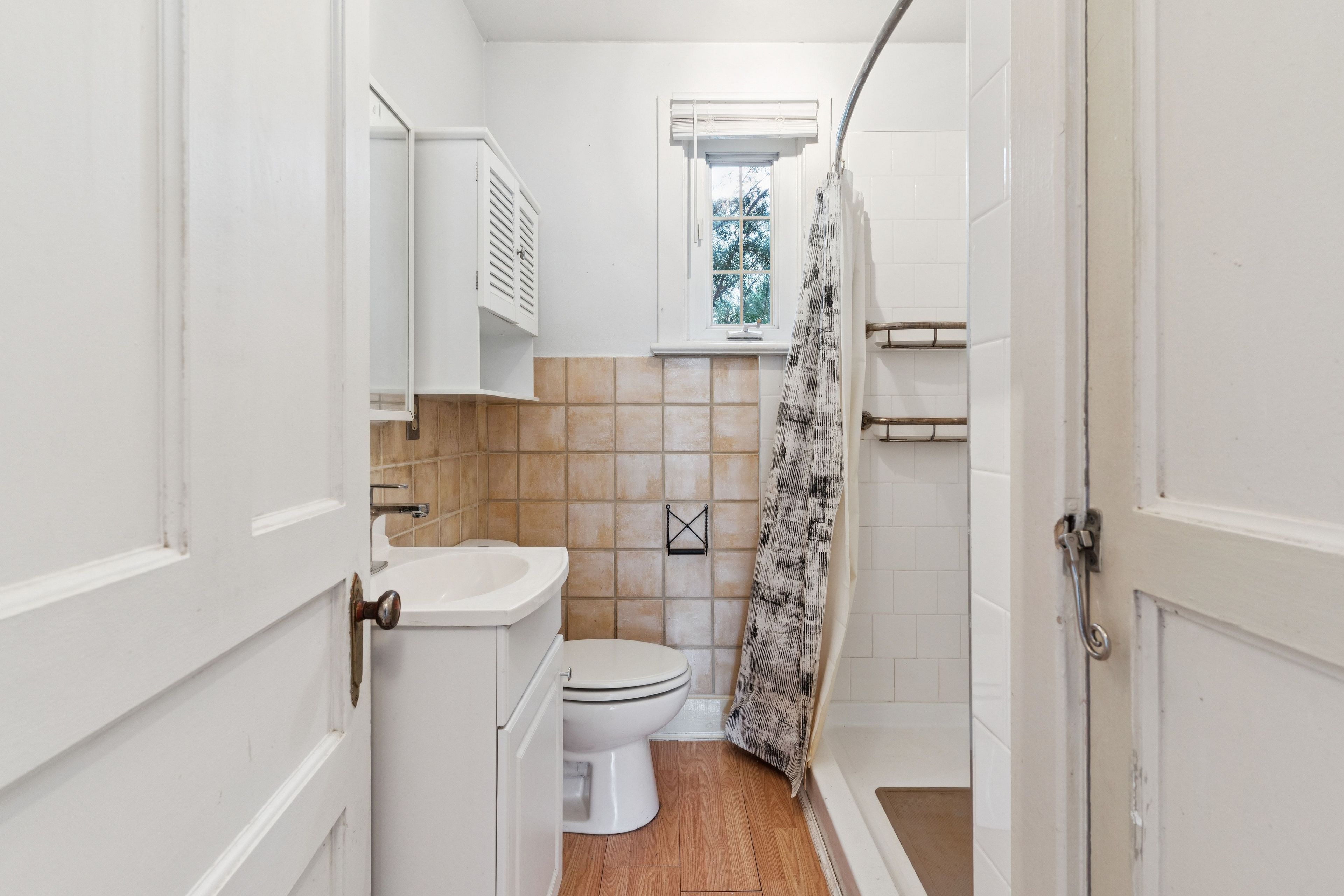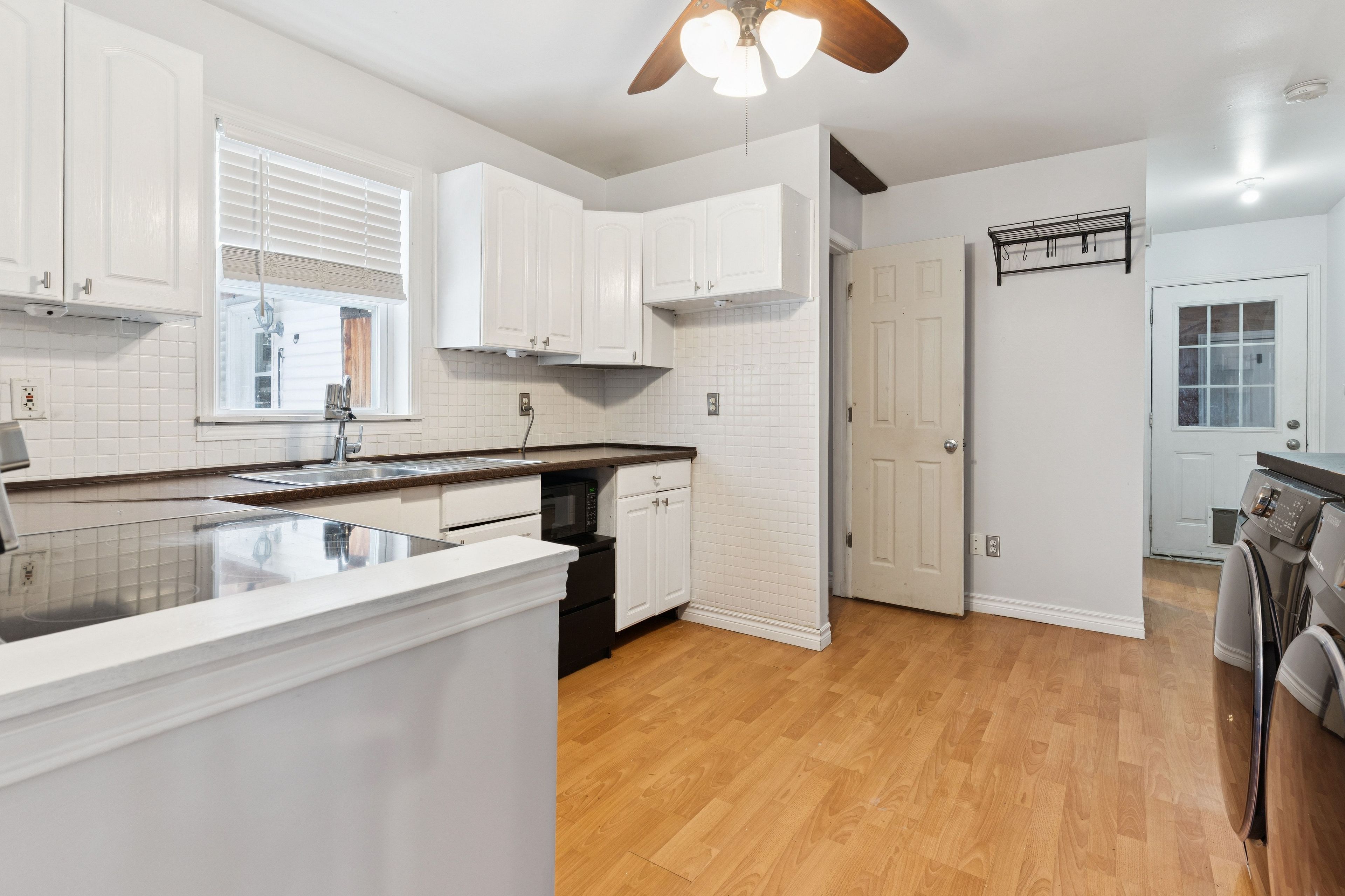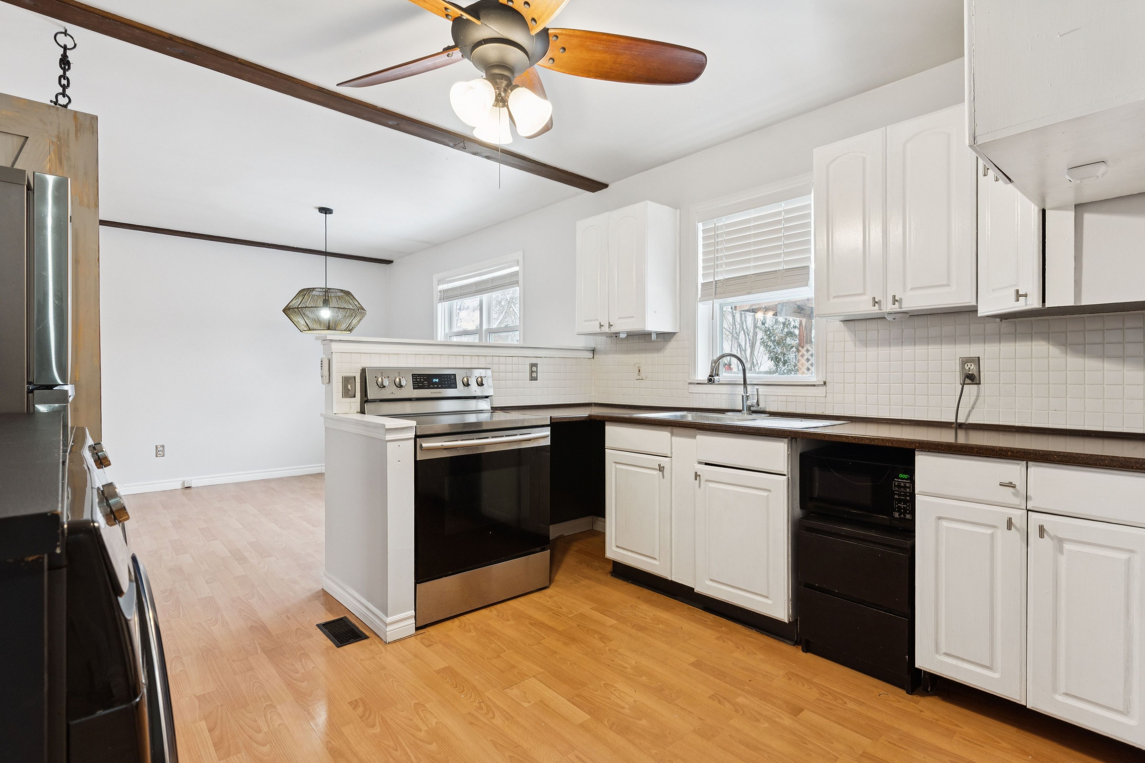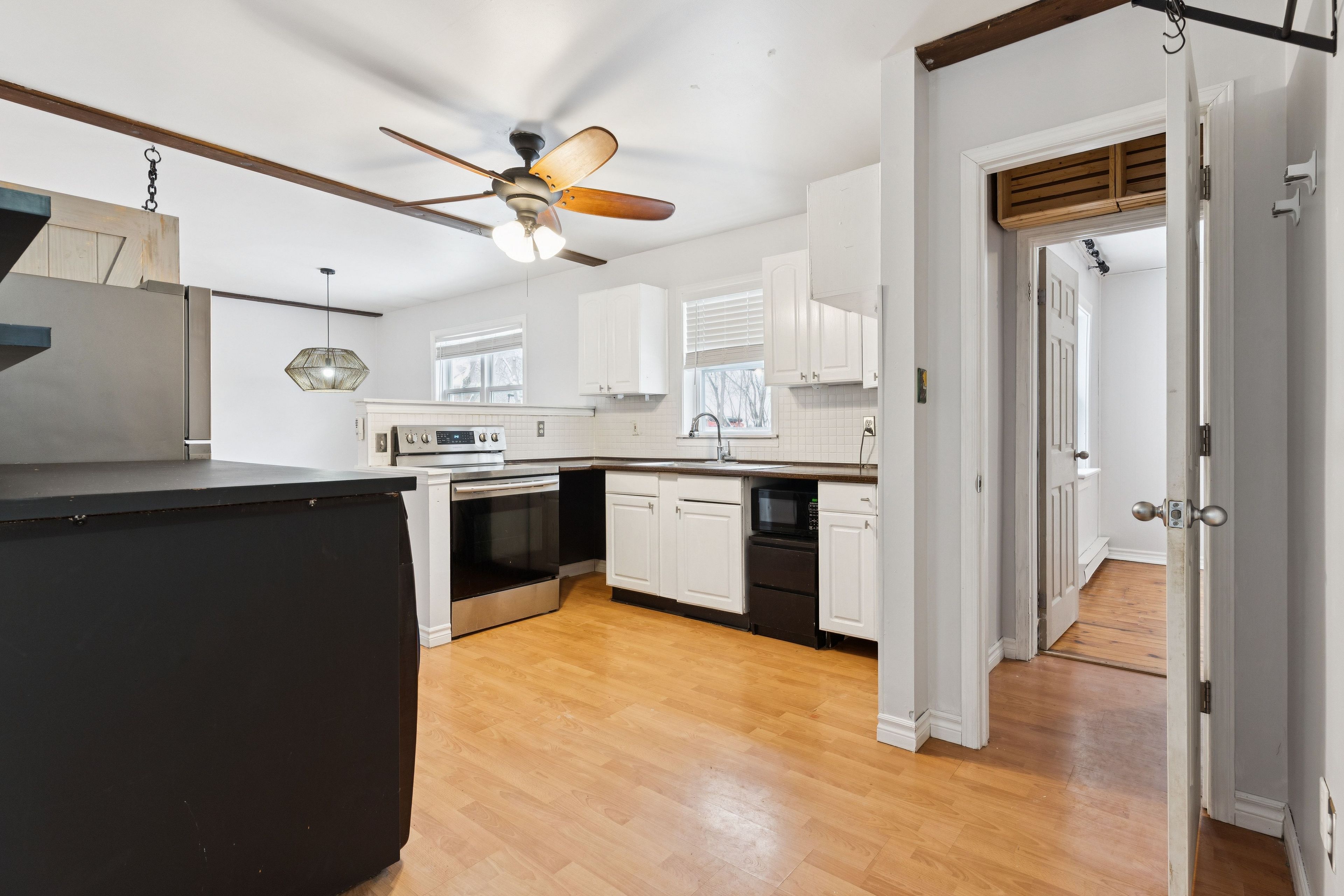 • Hardwood floors and natural light create a practical, comfortable interior.