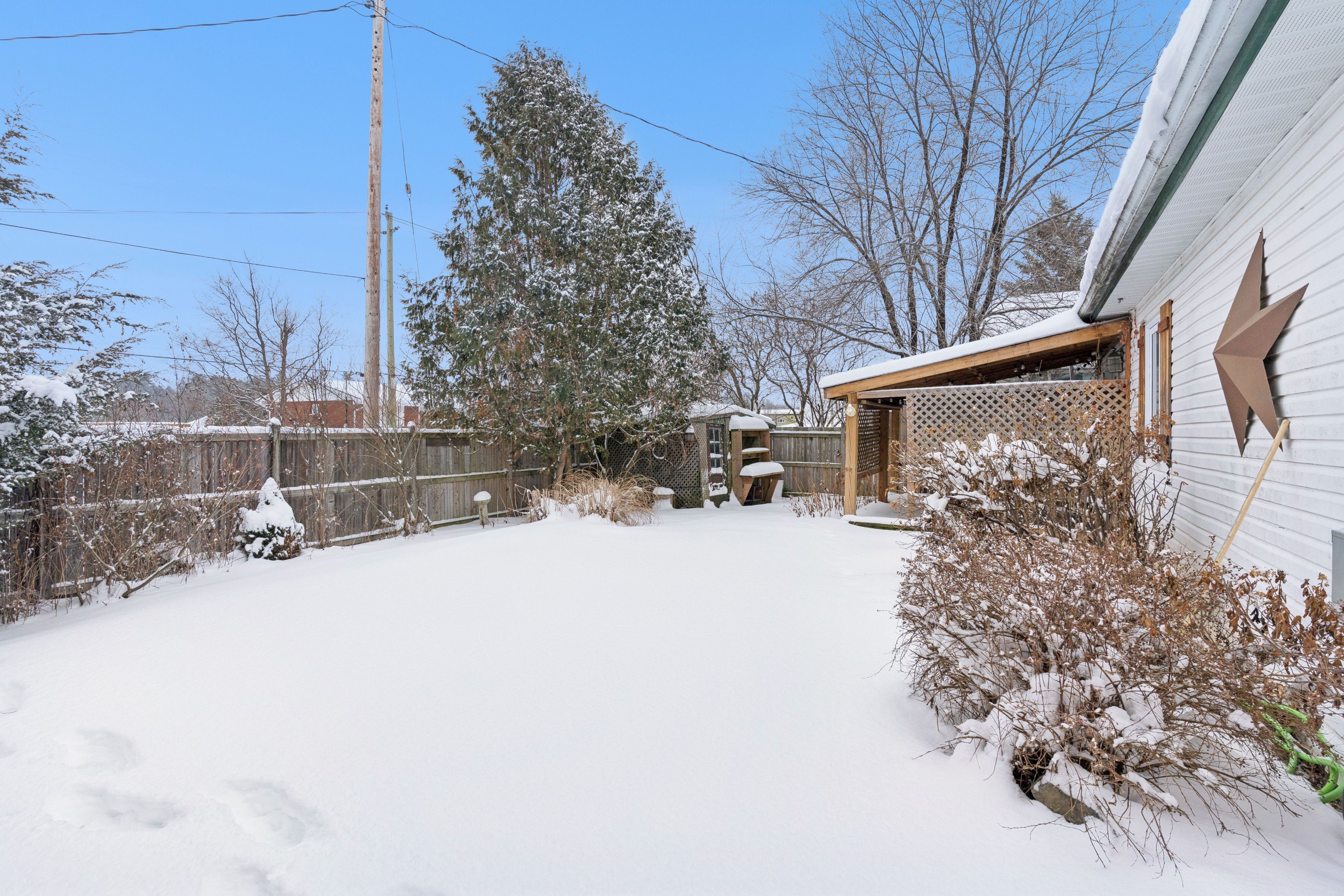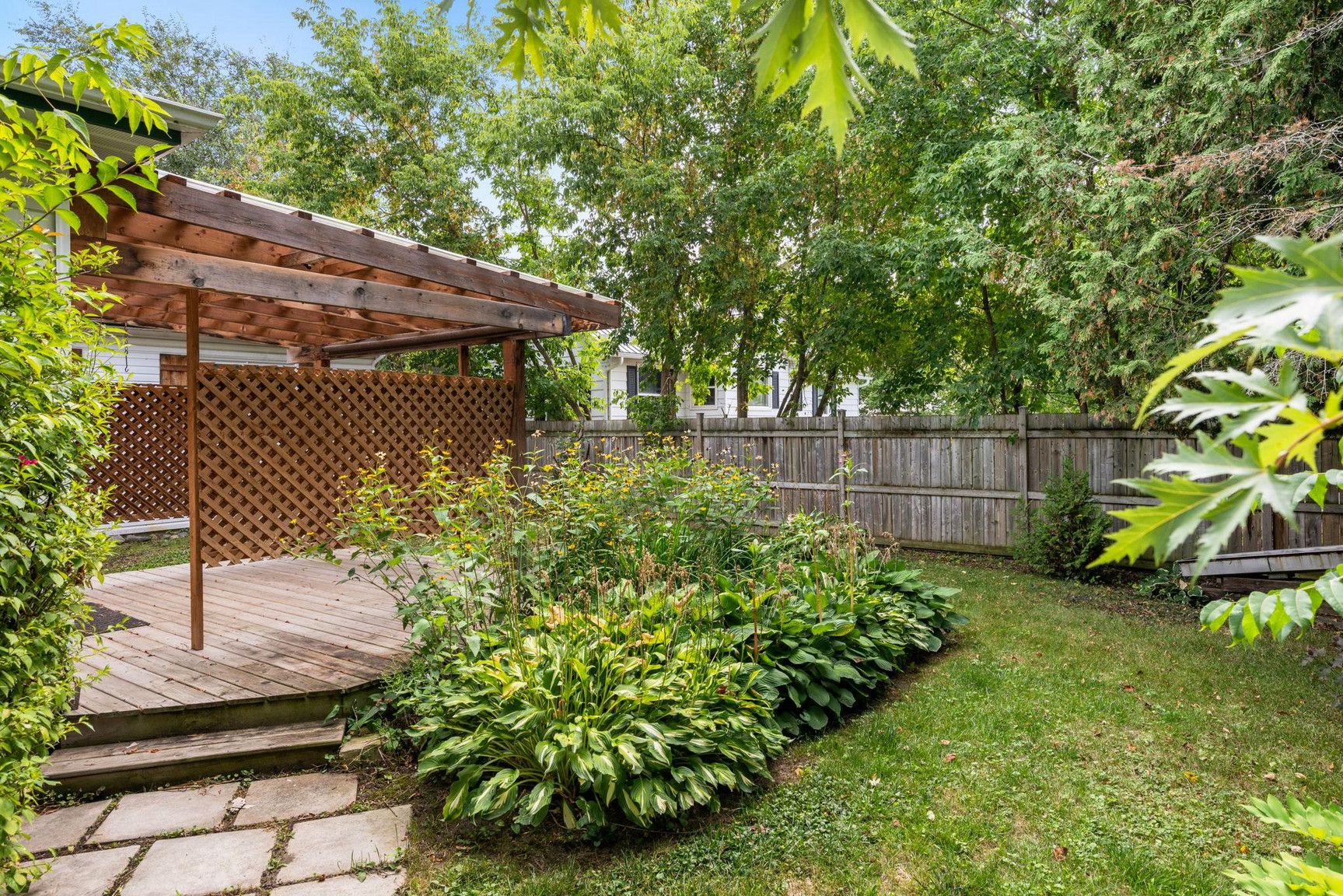 • Large backyard and covered deck perfect for gatherings and relaxation.