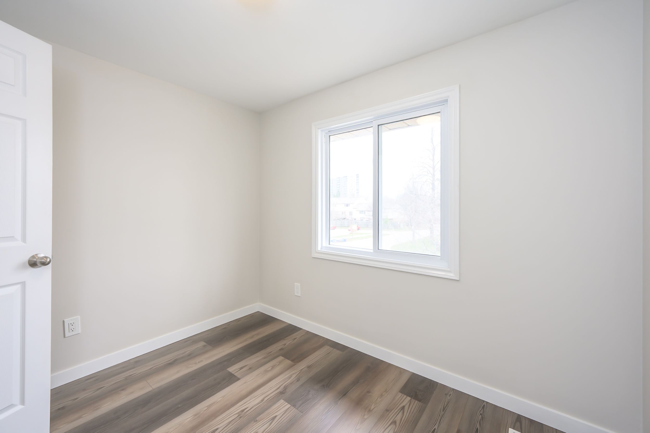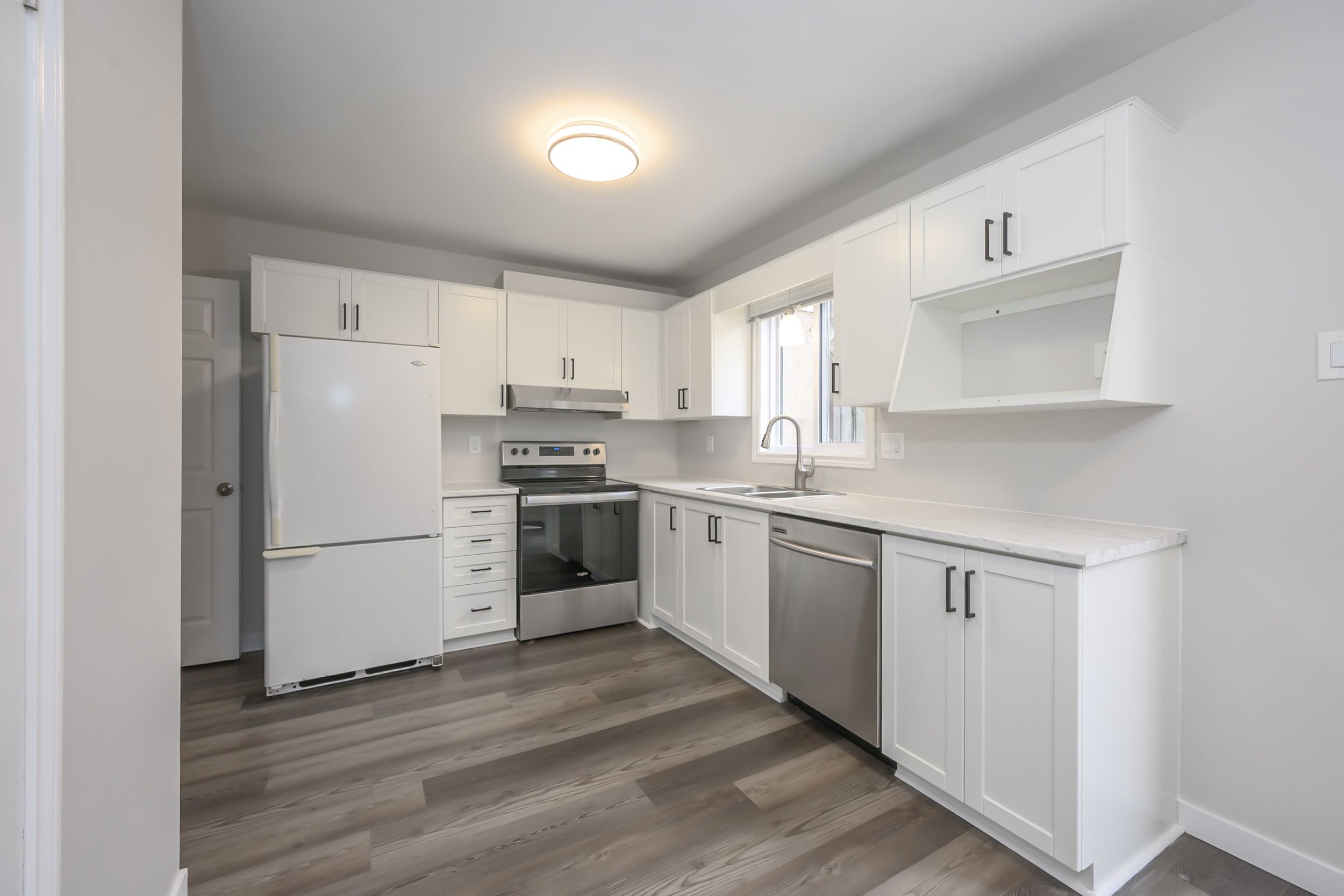 A turnkey opportunity for first-time buyers or those looking to add a solid property to their investment portfolio. This well-maintained home offers great value, functional space and updates throughout. The inviting front porch is the perfect spot to sit and relax. Inside, you'll find updated flooring and a bright living room with a large window that fills the space with natural light. The kitchen has been refreshed with crisp white cabinetry and opens to a spacious eating area with direct access to the updated deck, ideal for everyday living and entertaining. A convenient side entrance to the driveway and a main floor powder room complete this level. Upstairs features three spacious bedrooms, all with good closet space, along with a fully updated, on-trend bathroom. The finished lower level adds additional living space with a comfortable rec room and plenty of storage. Additional highlights include five appliances, a concrete driveway with parking for four cars, and extensive updates to flooring and lighting throughout. The backyard offers a generous lot with room for kids to play, complemented by some mature trees for added privacy and charm. Located in a great family-friendly area with easy access to the 400-series highways and major shopping. Just move in and enjoy.