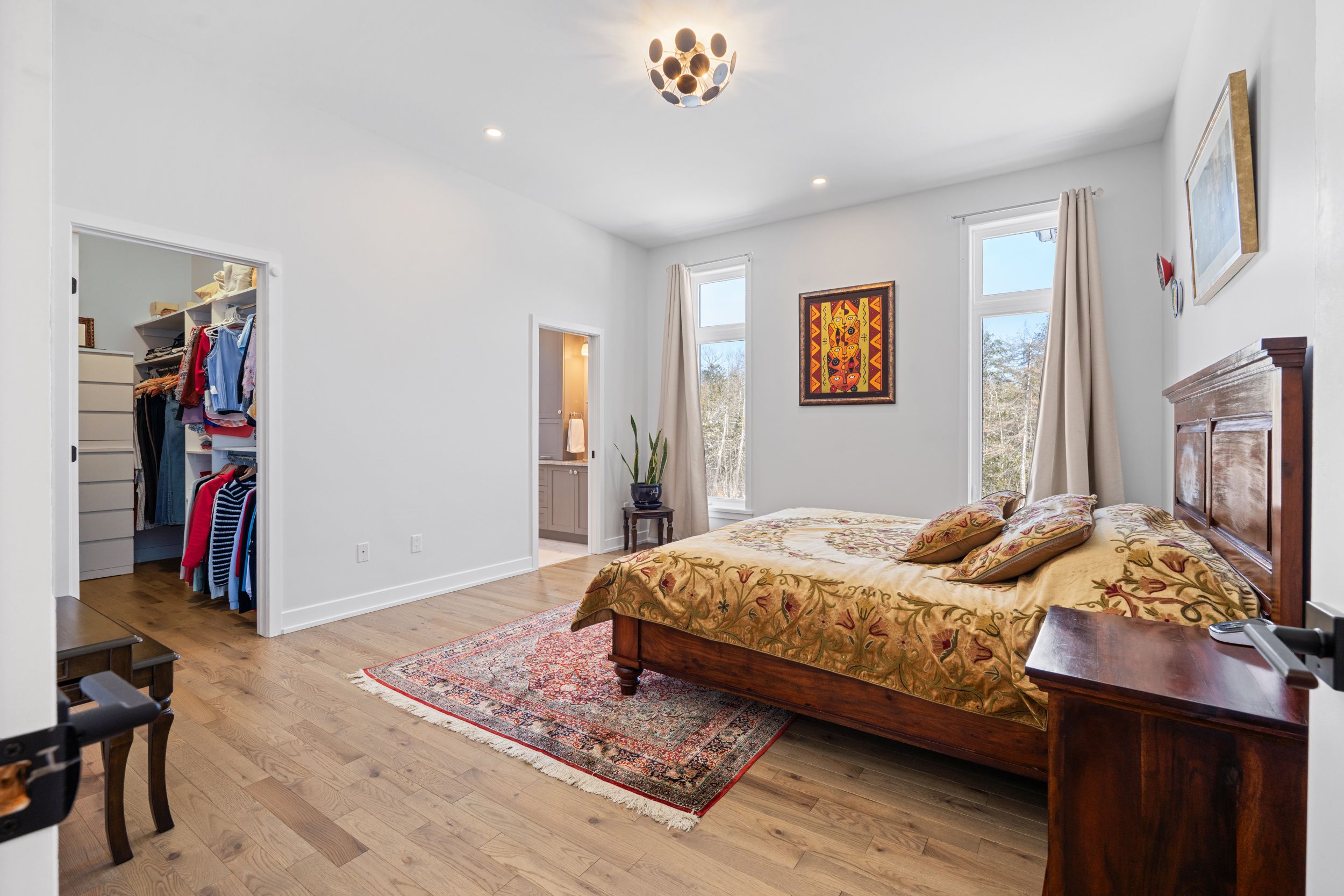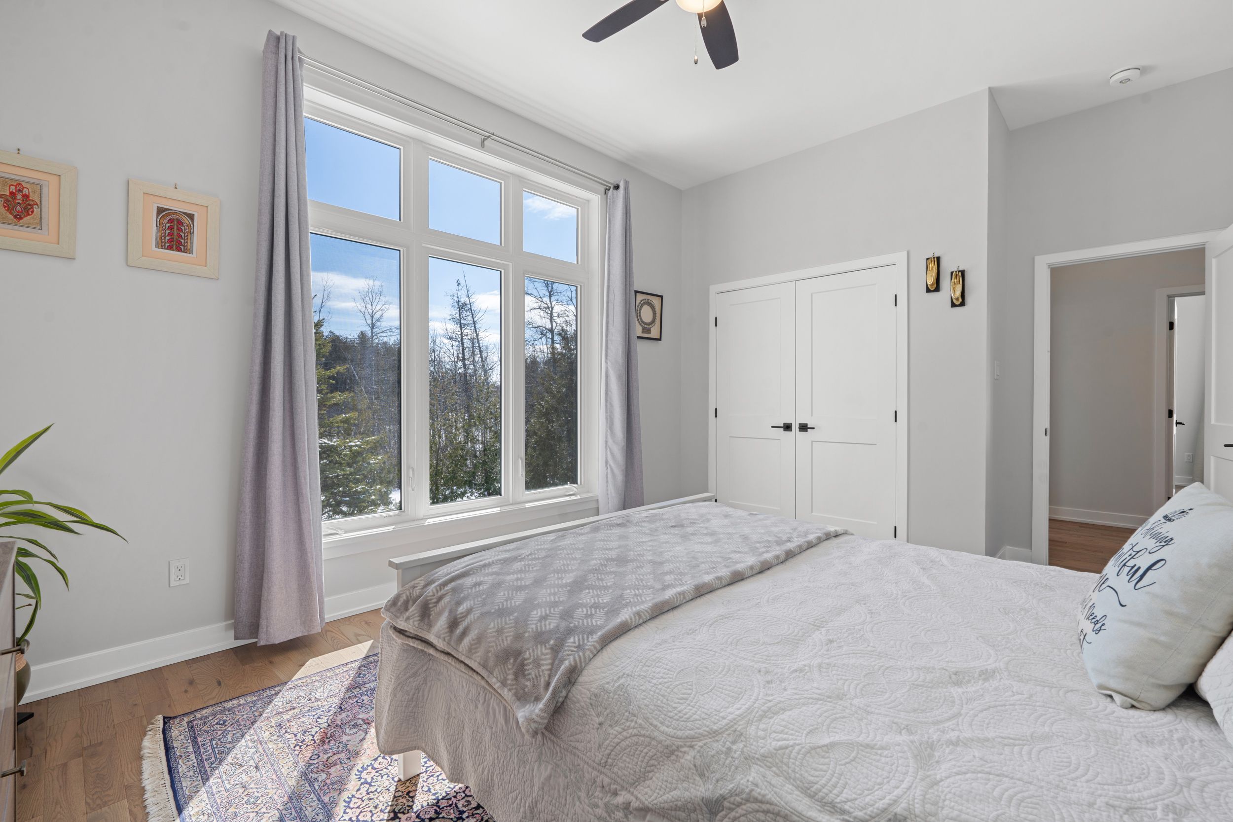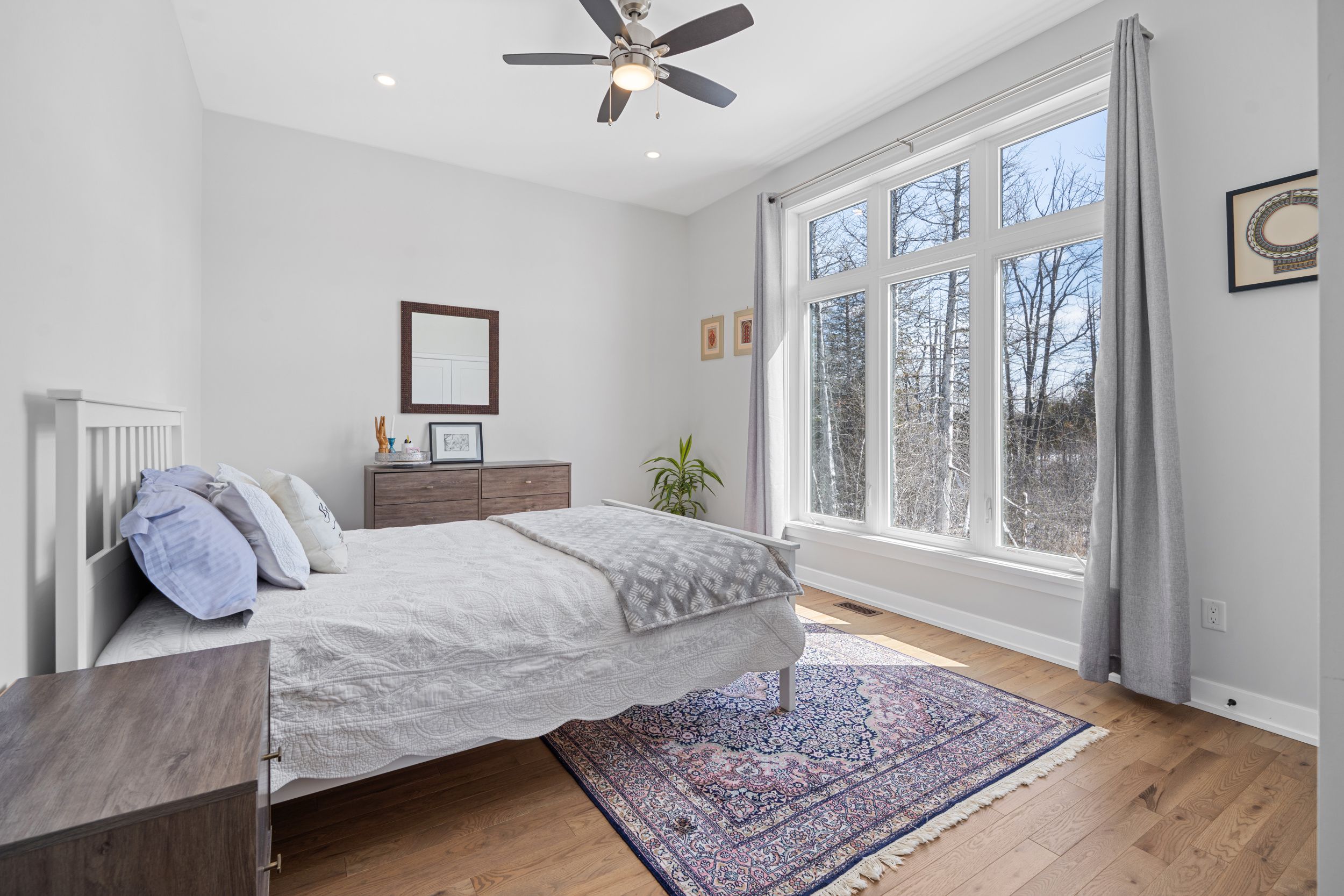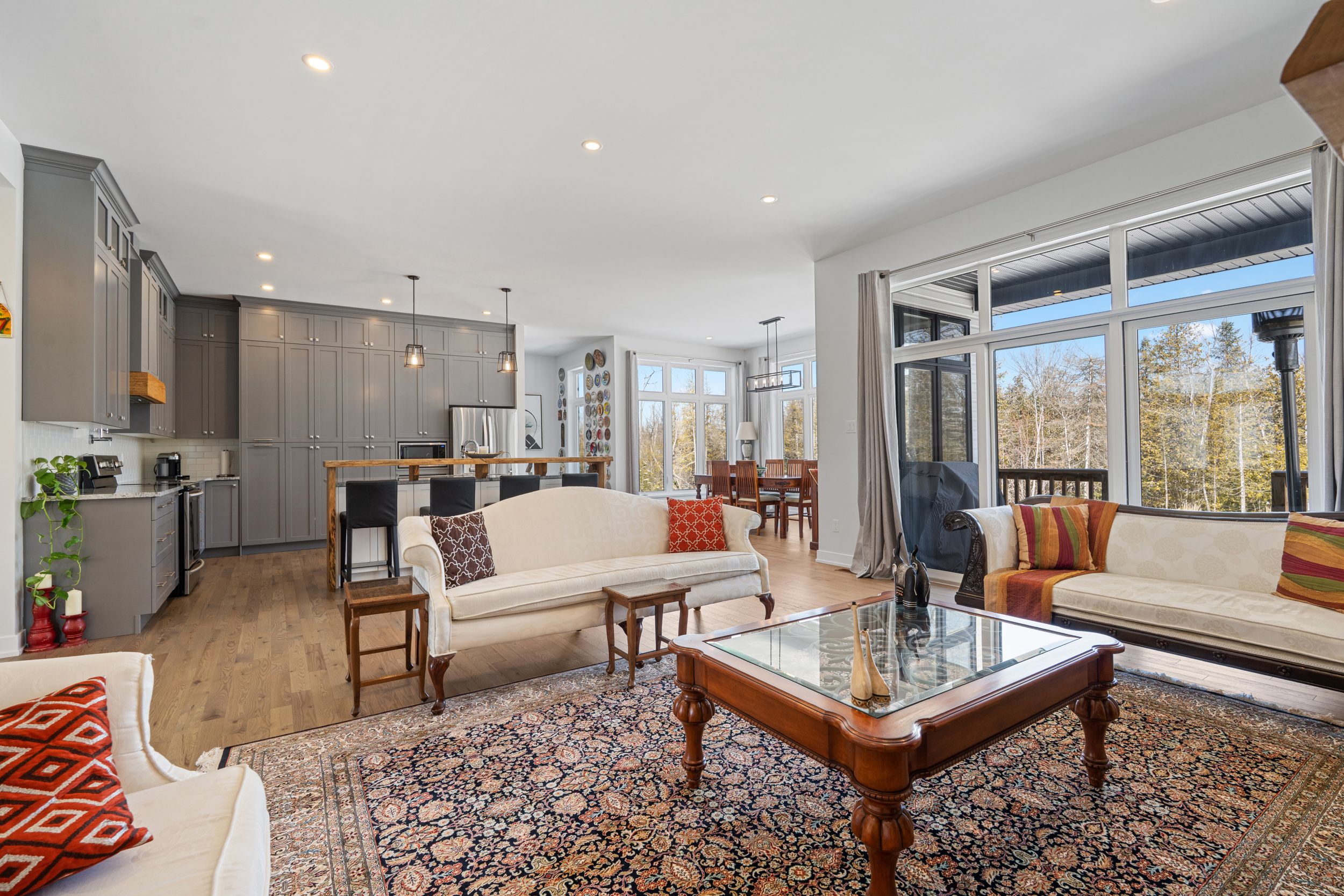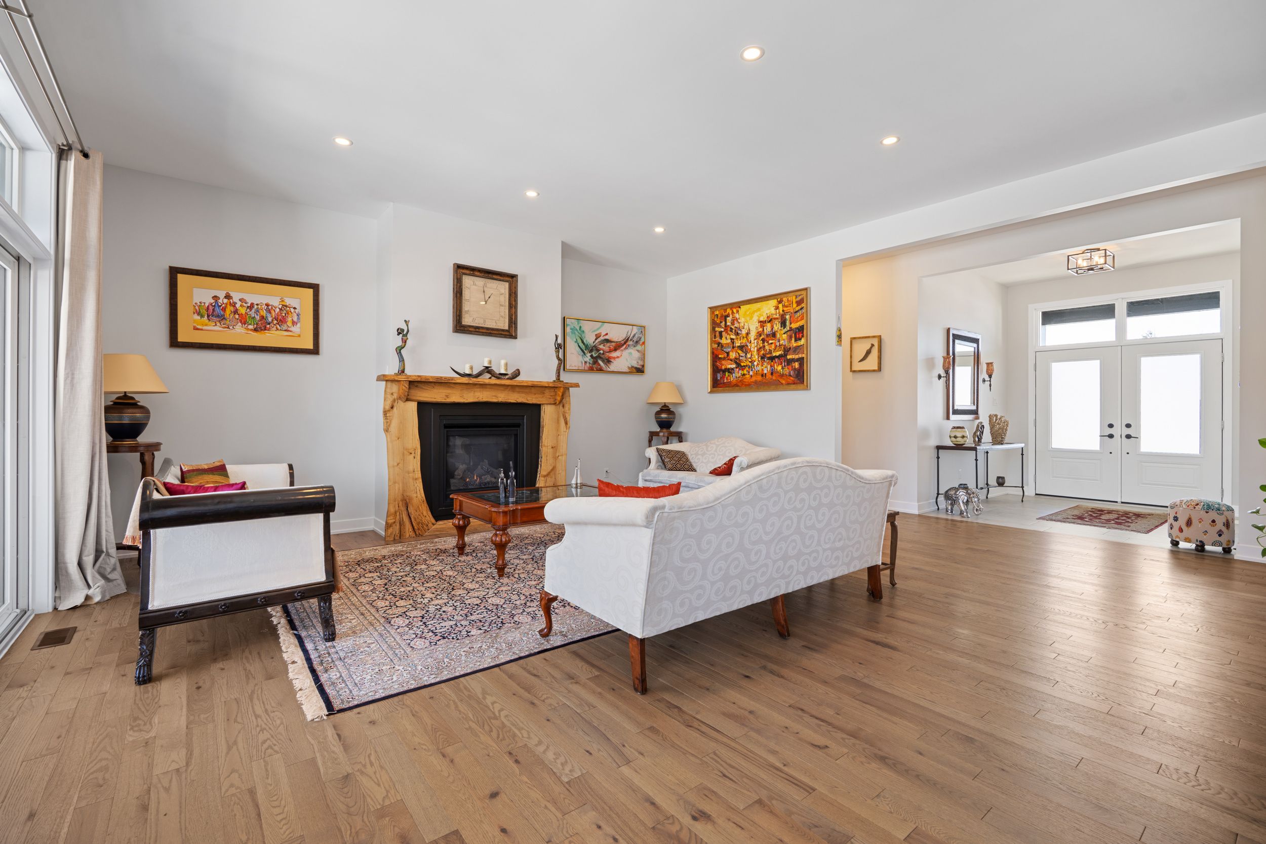 • Bright great room features a cozy fireplace and large windows for natural light.