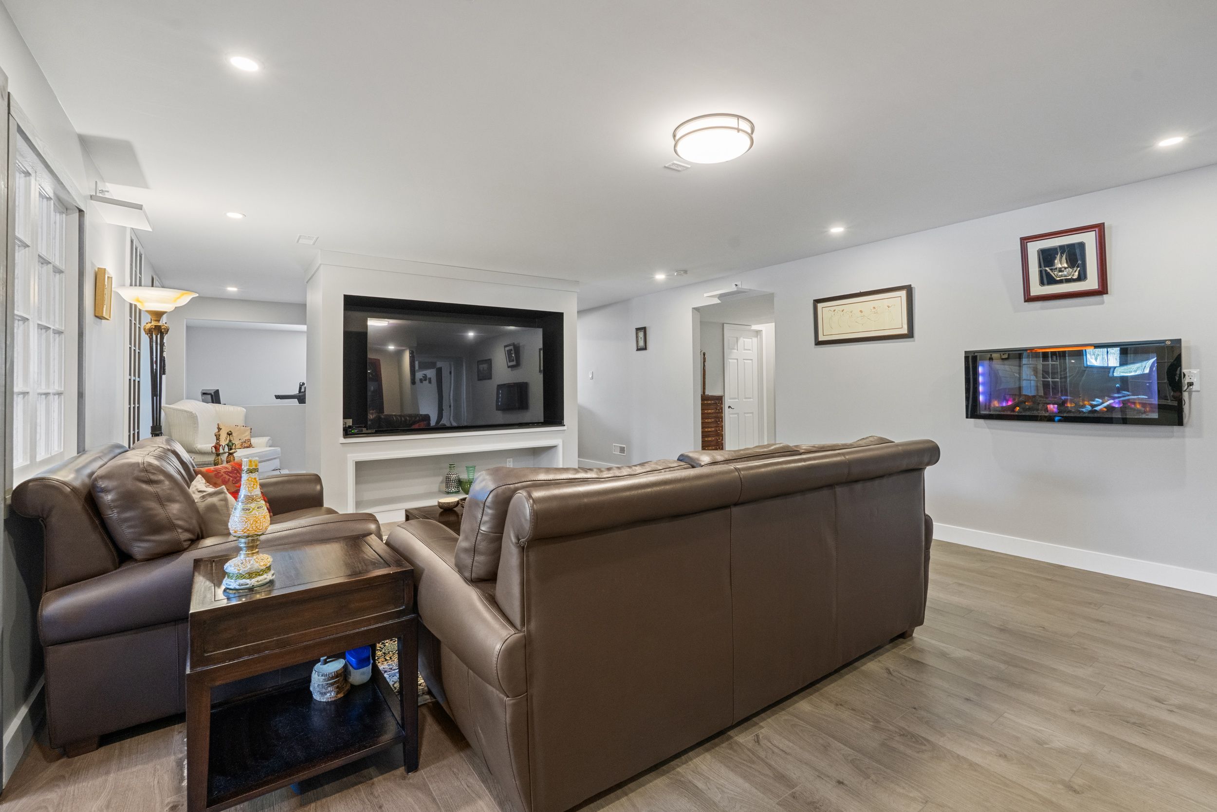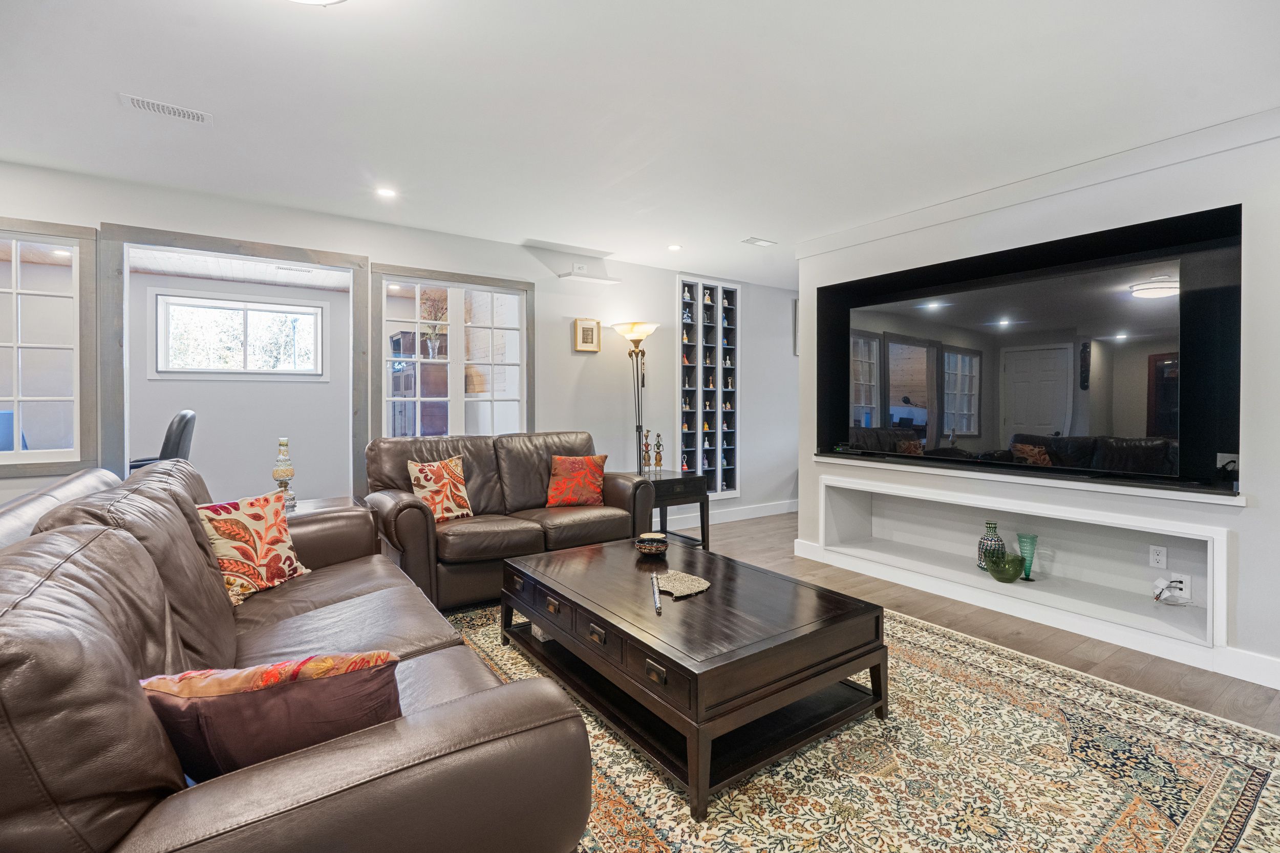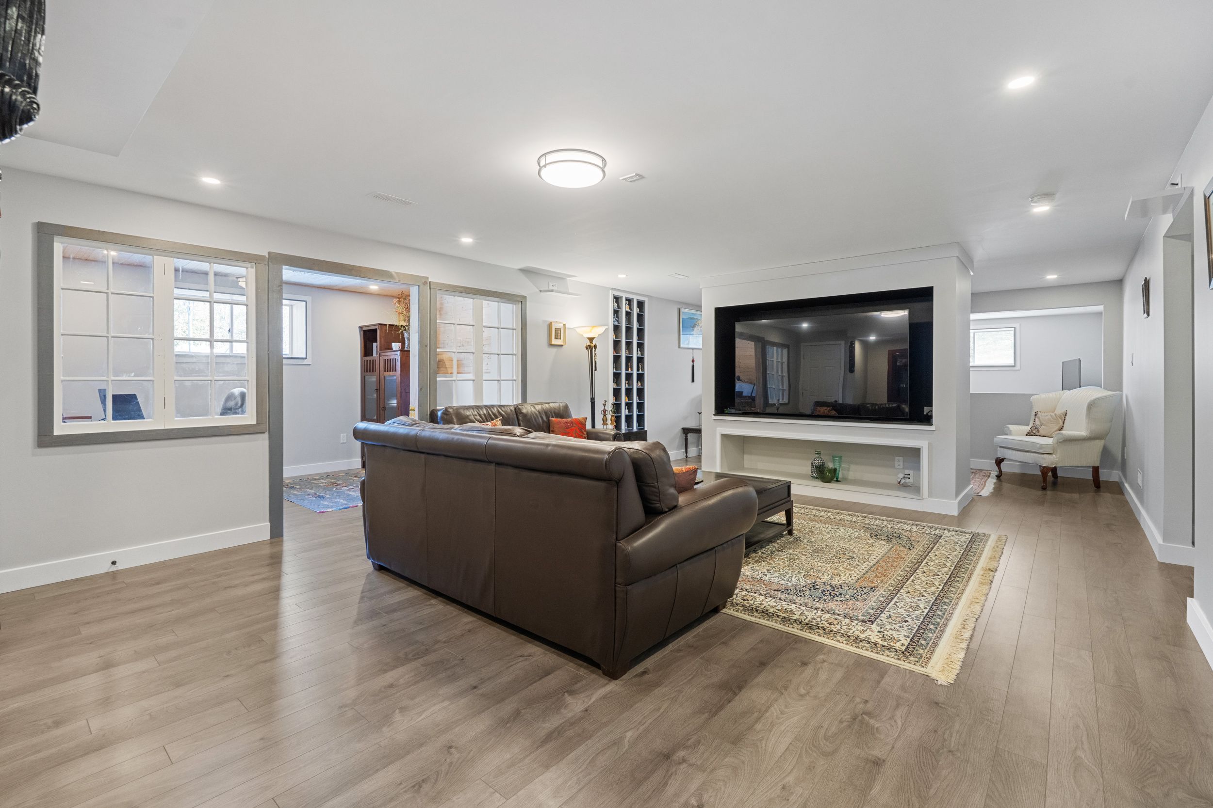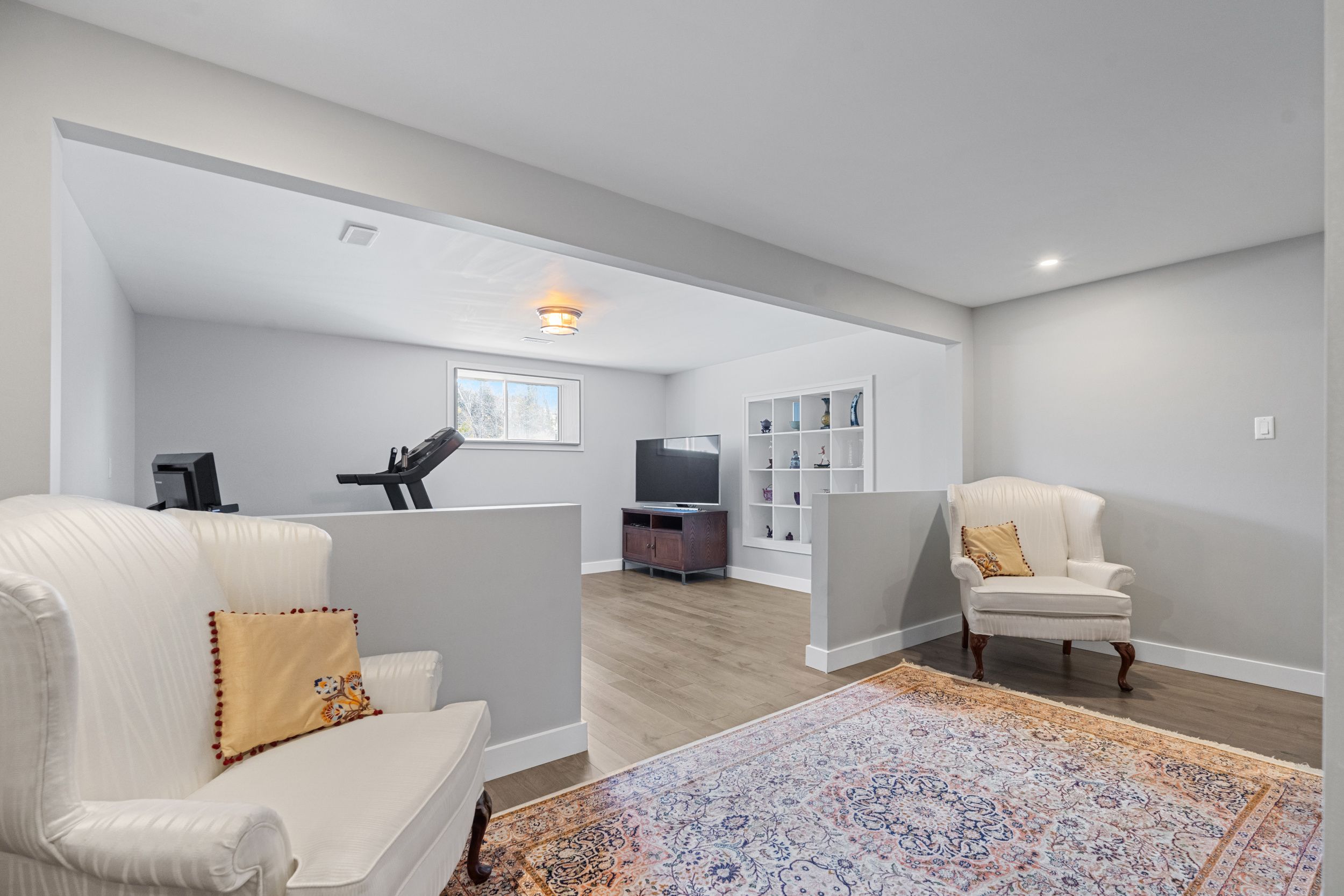 • Finished lower level offers versatile spaces for family, office, gym, and storage.