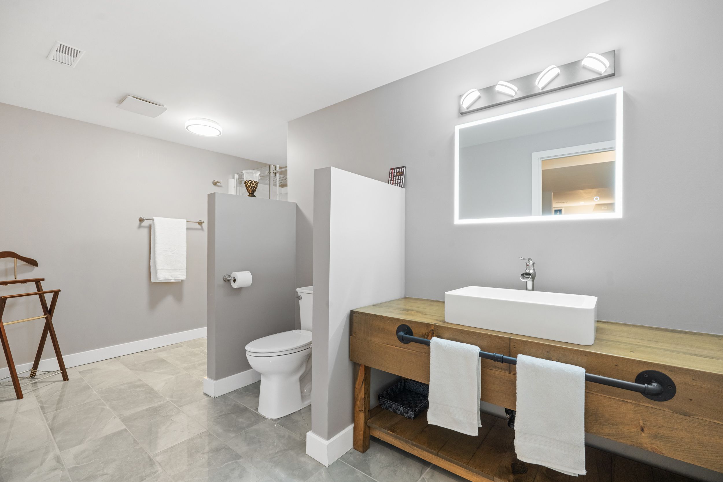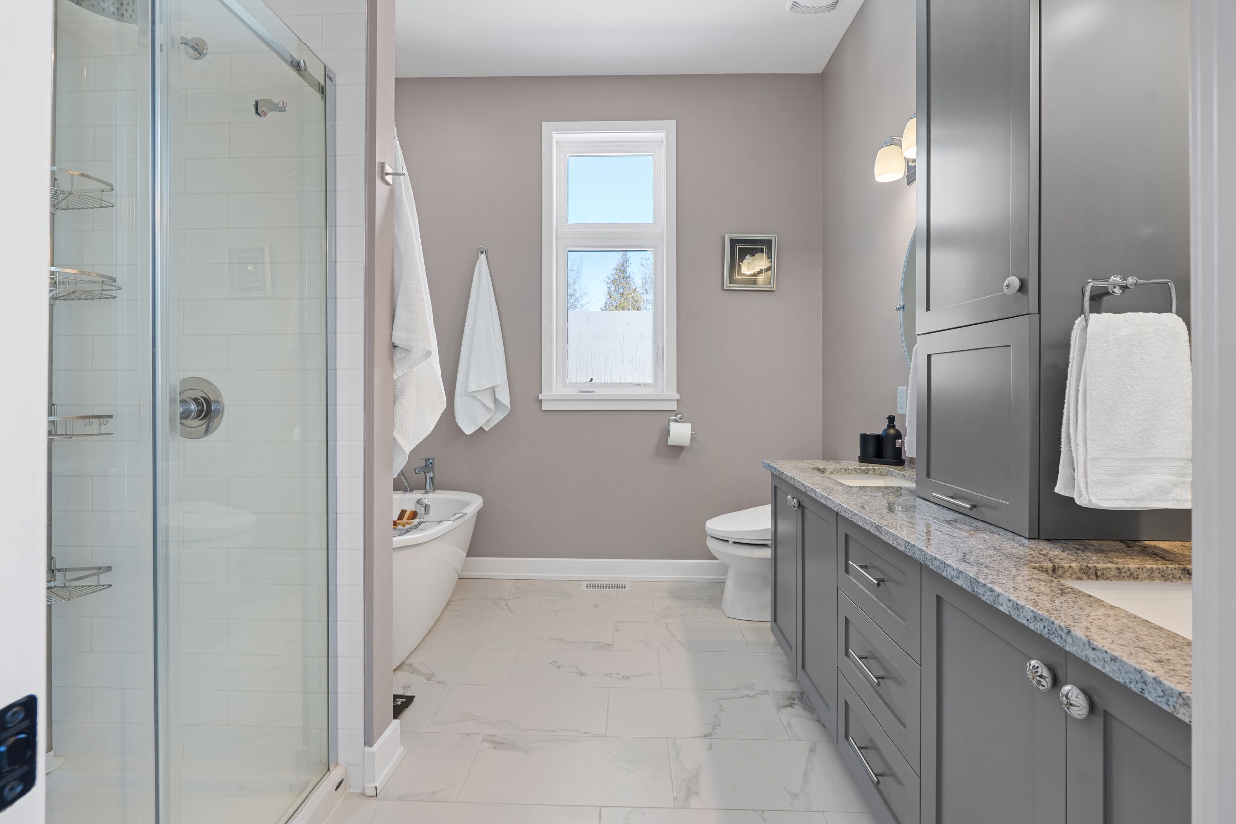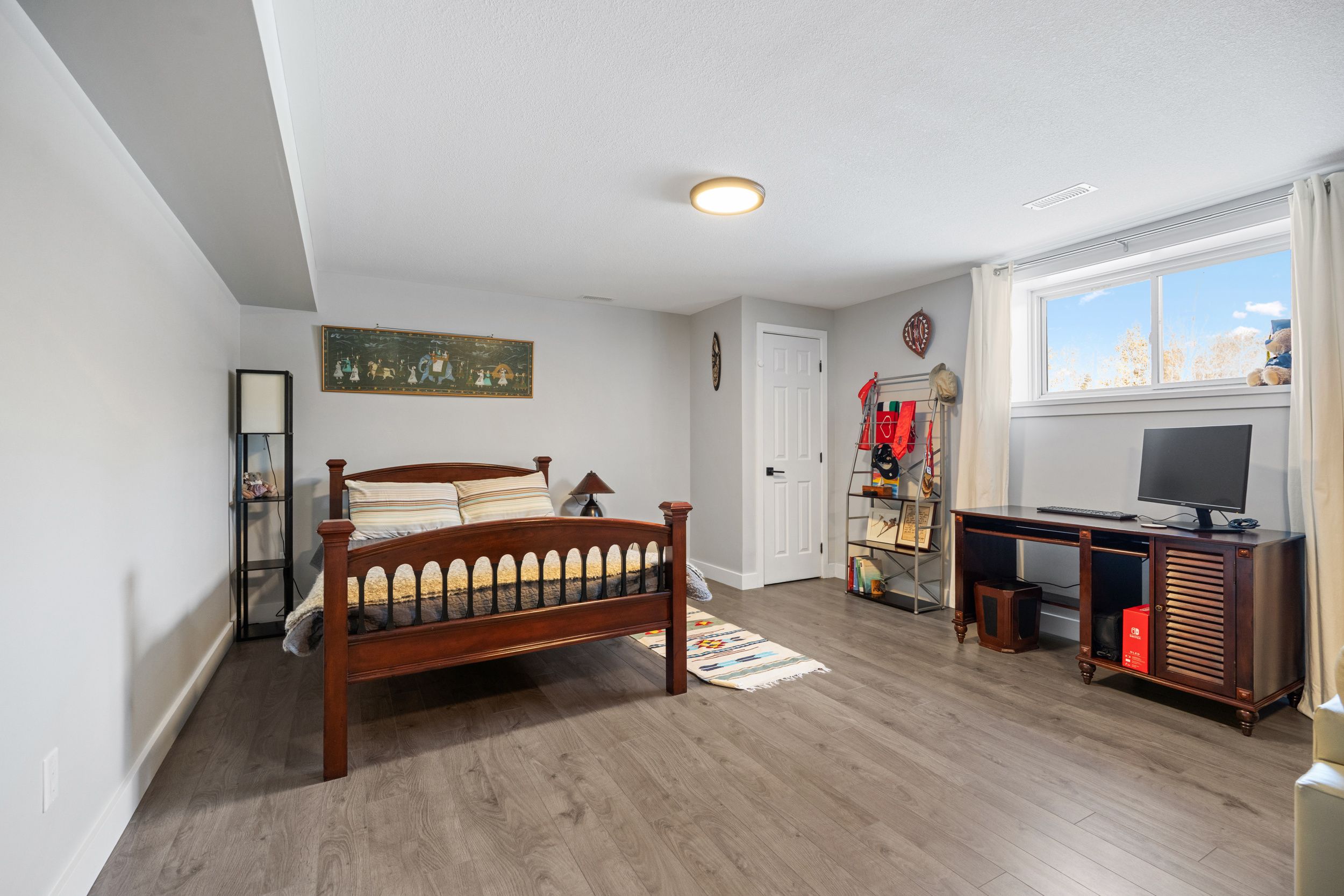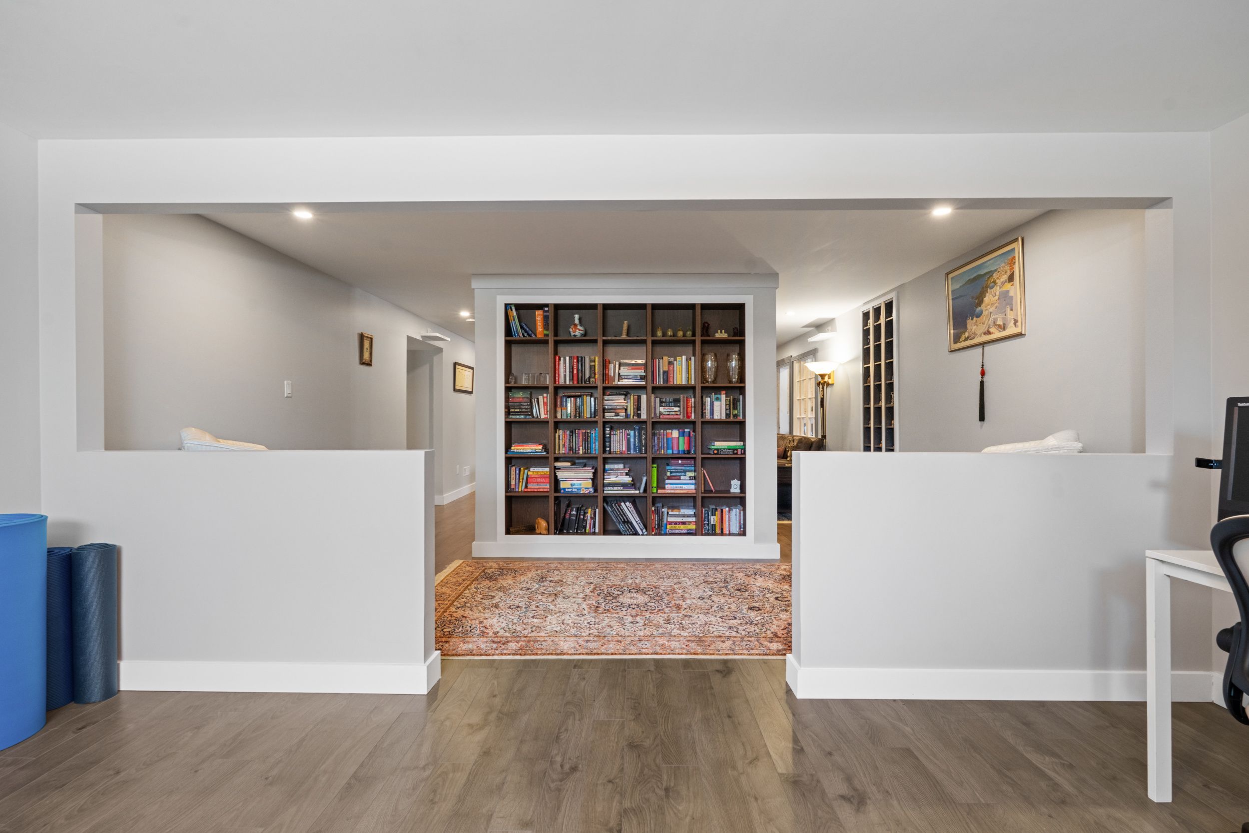 • Finished lower level offers versatile spaces for family, office, gym, and storage.