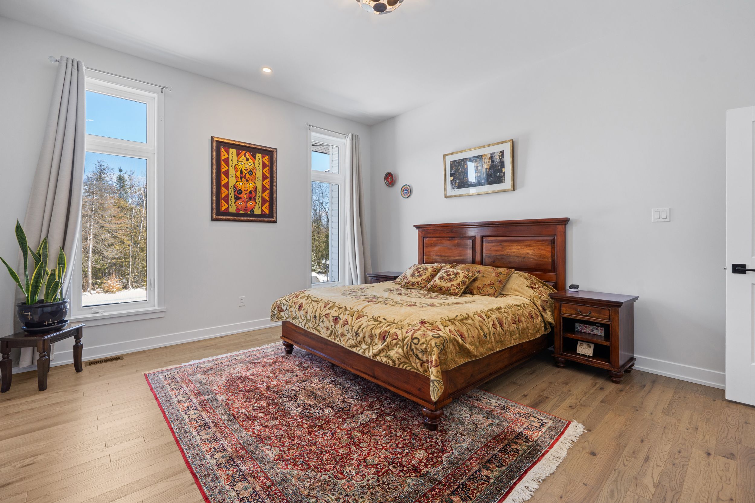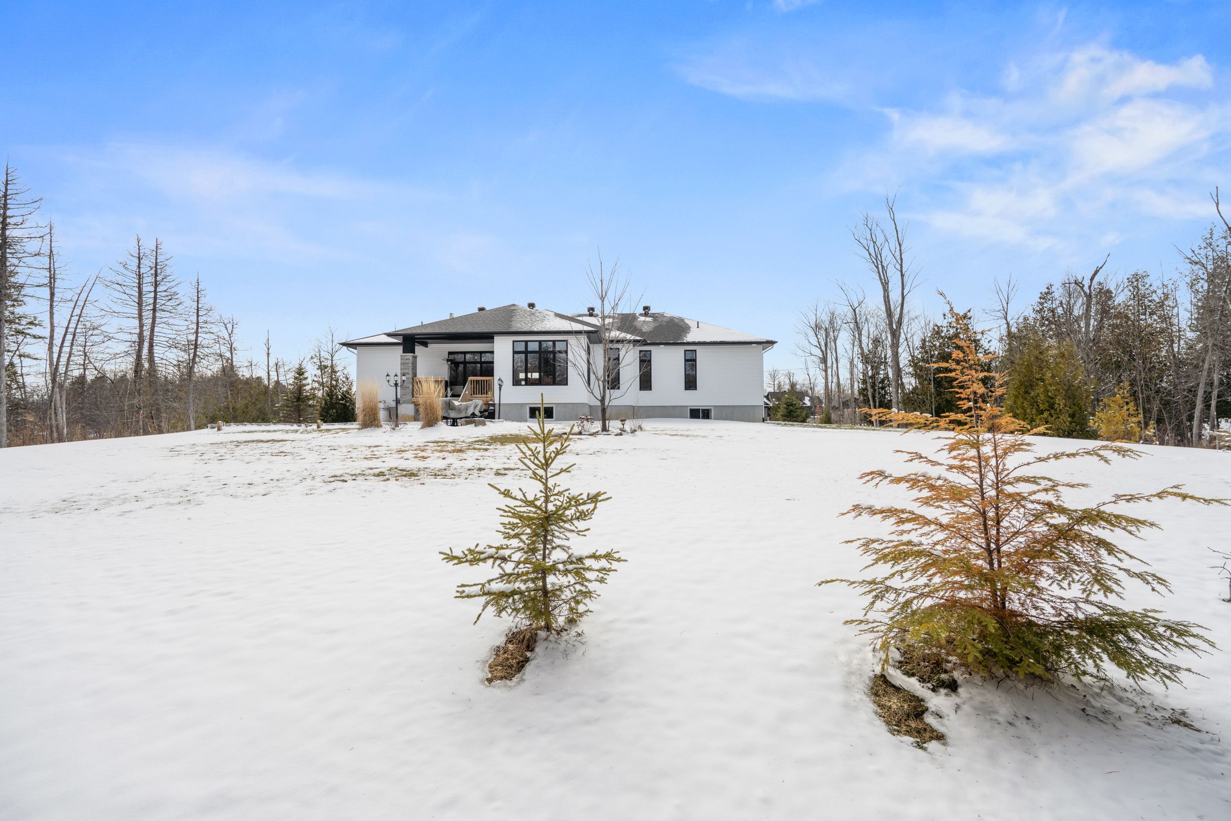 Welcome to this stunning mackie home set on a private 1. 4 acre corner lot, feat. 3+1 bedrms, 3. 5 bathrms, w/an expansive 2320sqft main flr. This quality built bungalow welcomes you w/an extended driveway, interlock entry & spacious 3 car garage, all surrounded by beautiful landscaping. Step inside to an expansive tiled front foyer & experience elegant living w/oak hardwood floors & 10ft ceilings. As you move into the heart of the home, the bright great room invites you in w/a cozy fireplace feat. A custom wood mantel & large transom windows that fill the space w/natural light. The kitchen is thoughtfully designed offering expanded cabinets, granite counters, ss appl., pot filler, valence lighting, dual zone oven & large island w/custom wood detail. The dining area sits alongside, surrounded by windows, creating a picturesque space to gather. The primary bedrm serves as a peaceful retreat w/a spa-inspired 5pc ensuite, complete w/double sinks, an expanded vanity, stand alone tub, glass shower w/rainfall showerhead, & large w. I. C. 2 additional well-sized bedrms nearby share a 4pc bathrm. Down the hall, a combined mud & laundry room offers additional storage, a convenient laundry sink, & direct access to the 3 car garage. Head downstairs to a fully finished lower level where space & versatility come together. A large family room w/electric fireplace creates the perfect setting to relax, along w/an additional bedrm, office space, home gym area & a built-in library wall. 4pc bathrm w/custom wood vanity & glass shower, plus a huge storage room adds more functionality. Outside, enjoy the serene outdoors on the covered back porch & step onto the beautifully landscaped patio. This property feat. A premier irrigation system & hydro provision ready for a future hot tub. Additional features include a uv water filter, ro drinking water system, 2 sump pumps, & a whole house generator w/ats, offering comfort & peace of mind throughout. Schedule your private viewing today!