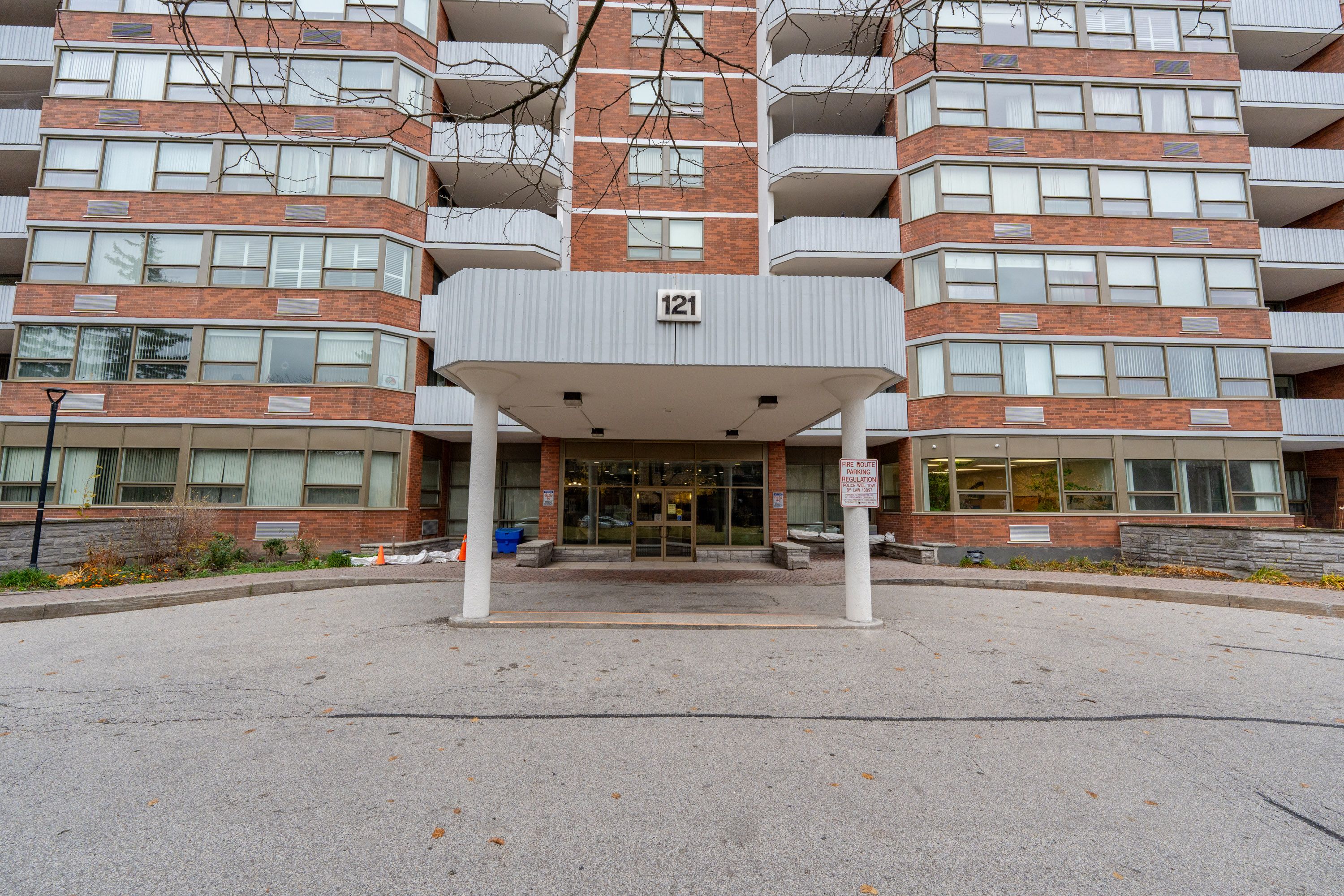 Step into 121 ling rd & relish the vibrant sunrise peeking over the tree line from your unit facing south east. This residence boats two bedrooms & two bathrooms. The primary bedroom features a spacious 3-piece ensuite with a generous walk in shower & ample closet space. Enjoy seamless flow of the open concept living/dining room & eat-in kitchen with ensuite laundry. Residents can take advantage of top-notch amenities including state of the art work out facilities, tennis courts, a library, pool tables, an outdoor pool & visitor parking. This building is senior friendly and very quiet and secure with 24 hrs. Concierge.