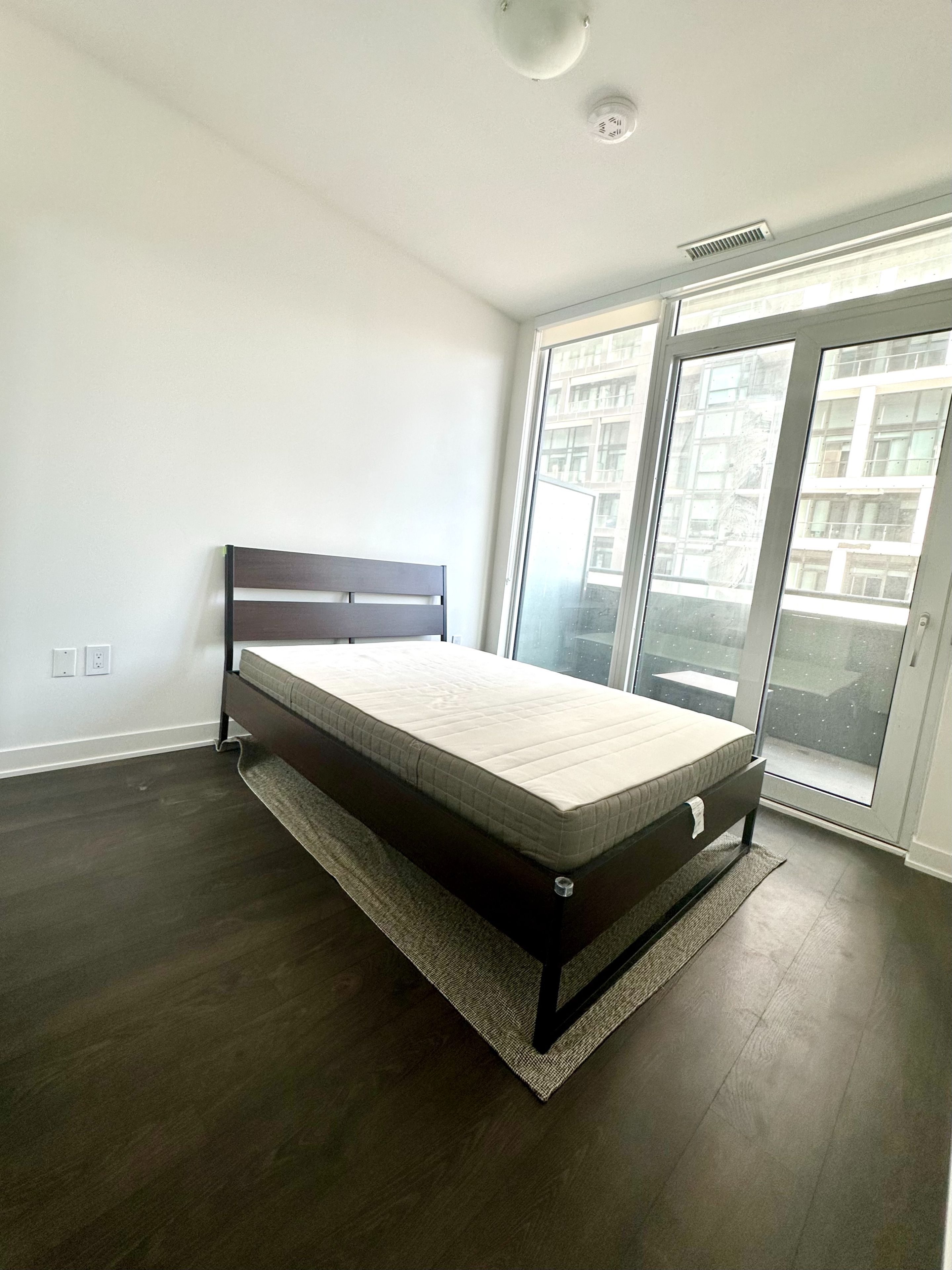 • Floor-to-ceiling windows with a private balcony and courtyard views.