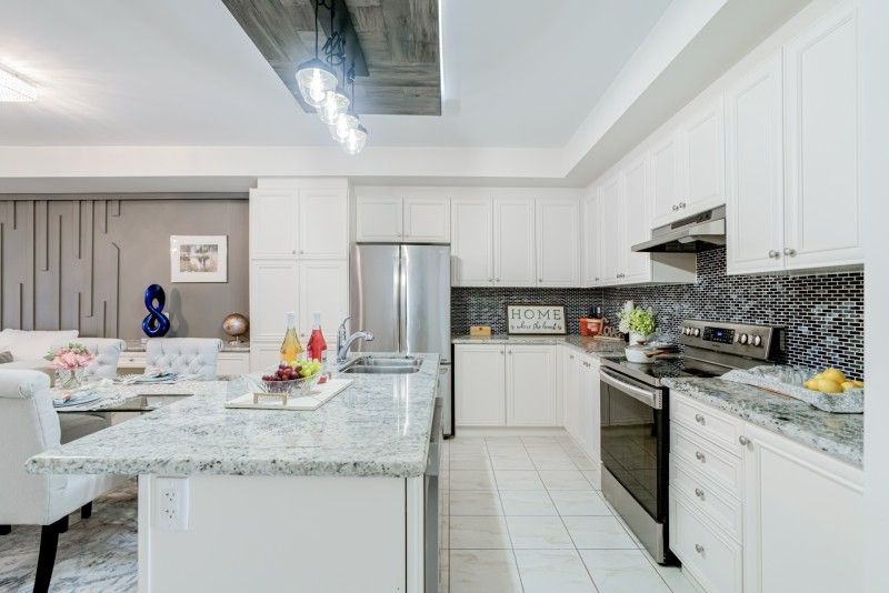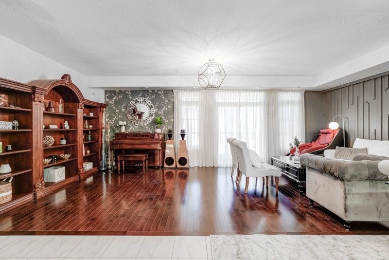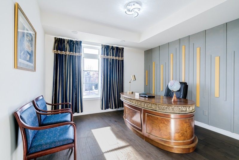 Welcome to this luxury 3,492 sq. Ft. Arista baywood model in prestigious boxgrove village, featuring a rare 890 sq. Ft. Ground-floor commercial flex space-ideal for retail, office, studio, medical, or professional use. The storefront faces copper creek drive with large display windows and strong exposure. Enjoy exceptional parking with an attached 2-car garage plus a 4-car driveway (up to 6 total). The main level offers a bright open-concept great room with hardwood floors, elegant wall trims, and a statement staircase with wrought-iron pickets. The upgraded chef's kitchen features granite countertops, stainless steel appliances, mosaic backsplash, a large island, and a stylish breakfast area. This level also includes 2 full bedrooms, laundry room, and a walkout to a balcony features motorized retractable screens that keep out mosquitoes and snow, allowing you to enjoy fresh air year-round while maintaining complete privacy (you can see out, but others can't see in). The upper level includes a bright media loft with a designer wood-accent wall, two generous bedrooms. The primary suite offers a custom geometric feature wall, a walk-in closet, and a luxury 5 piece ensuite with double vanities, glass shower, and deep soaker tub. A standout highlight is the expansive third-floor rooftop terrace, providing private outdoor living ideal for entertaining, dining, gardening, children's play, or creating a custom rooftop lounge. A large outdoor storage shed is included. This property follows layout: ground floor - 890 sq. Ft. Commercial unit flex space, 2-car garage (plus 4-car driveway); main floor - great room, kitchen, breakfast, bedroom, study/office, laundry, balcony; upper floor - media loft, 2 large bedrooms, 2 full baths (incl. Primary ensuite) and oversized private terrace with storage shed. Vtb may be considered for qualified buyers on a fast closing, terms to be negotiated. Furniture package available for purchase at buyer's option; pricing negotiable.